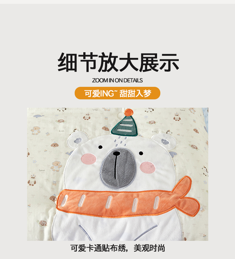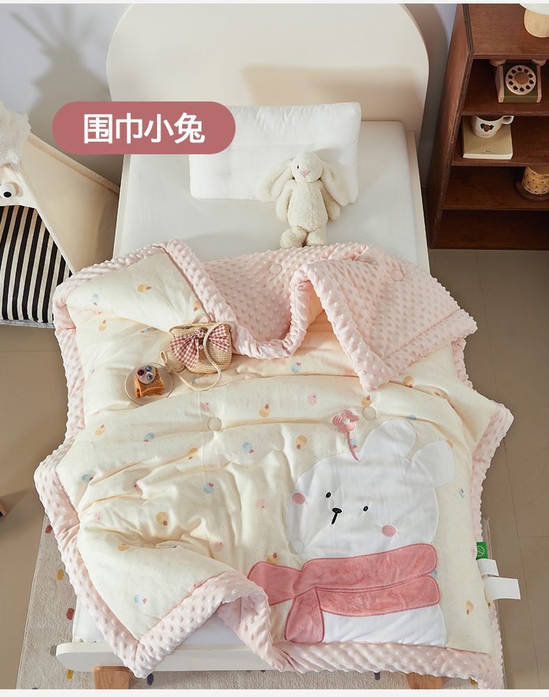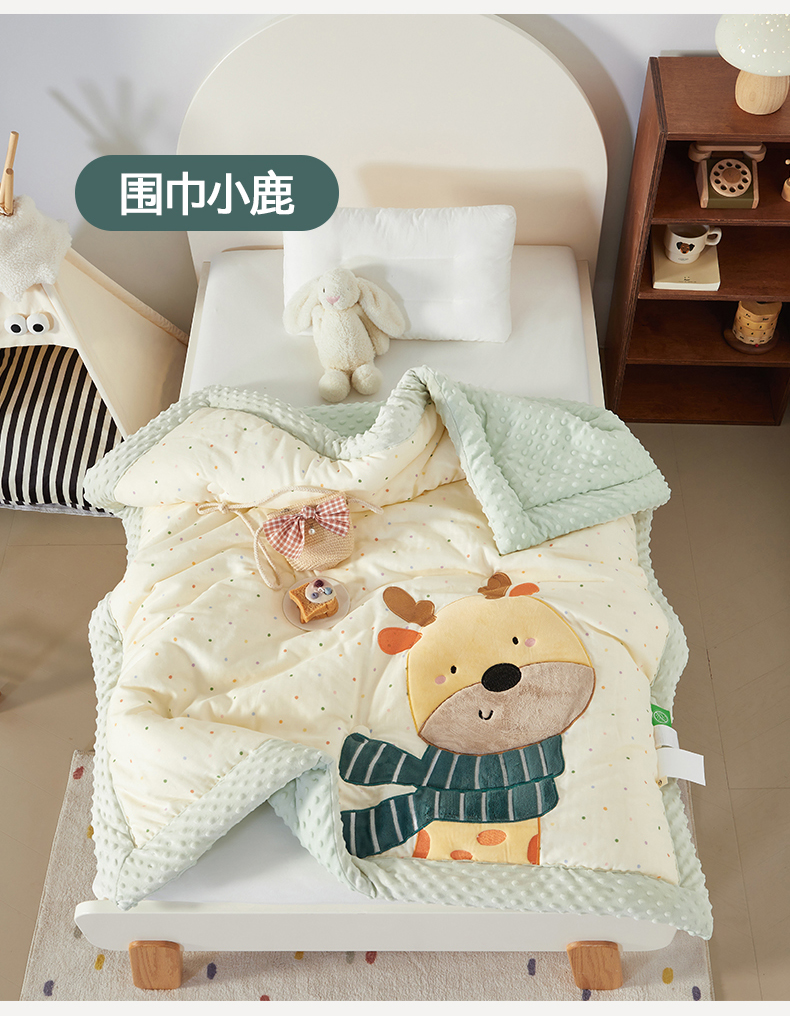 (总)荷马之梦 2025新款纯棉双层纱贴布绣卡通儿童被芯春秋被冬被被子被芯-围住可爱系列,围巾北极熊,围巾小鹿,围巾小兔,围巾小熊,围巾小鸭