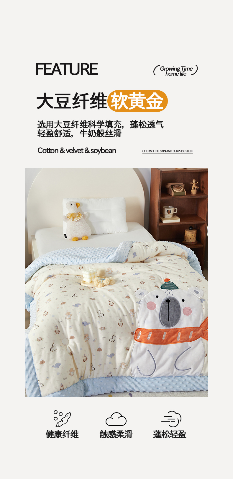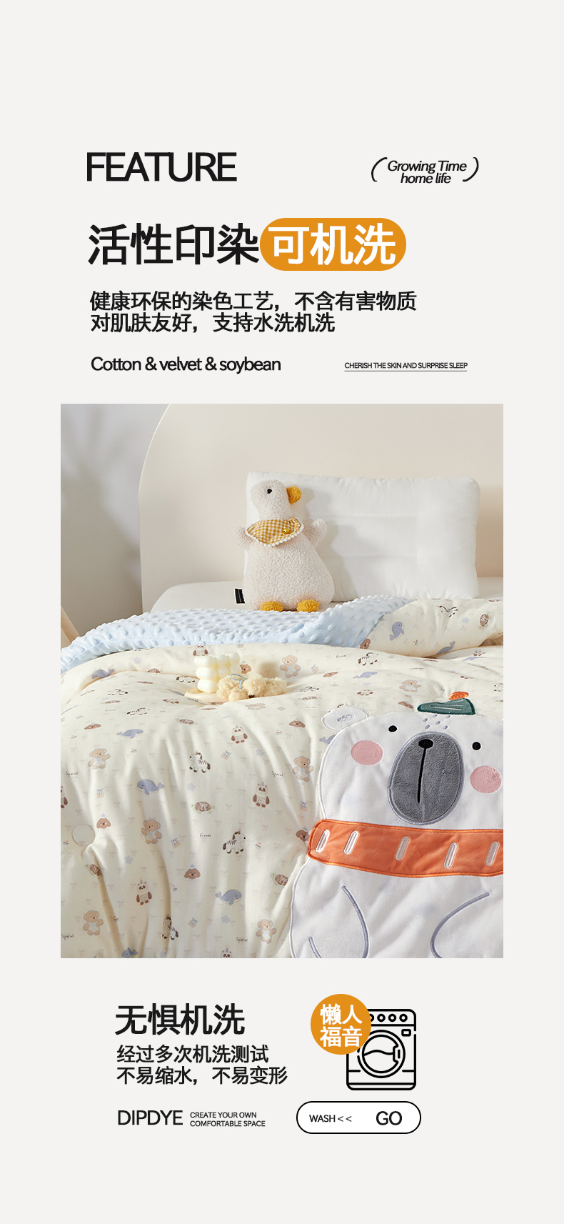 (总)荷马之梦 2025新款轻芯系列-A类双层纱纯棉印花贴布绣卡通被子春秋被冬被儿童安抚被,乖小兔,酷小熊,快乐熊猫,音乐小象