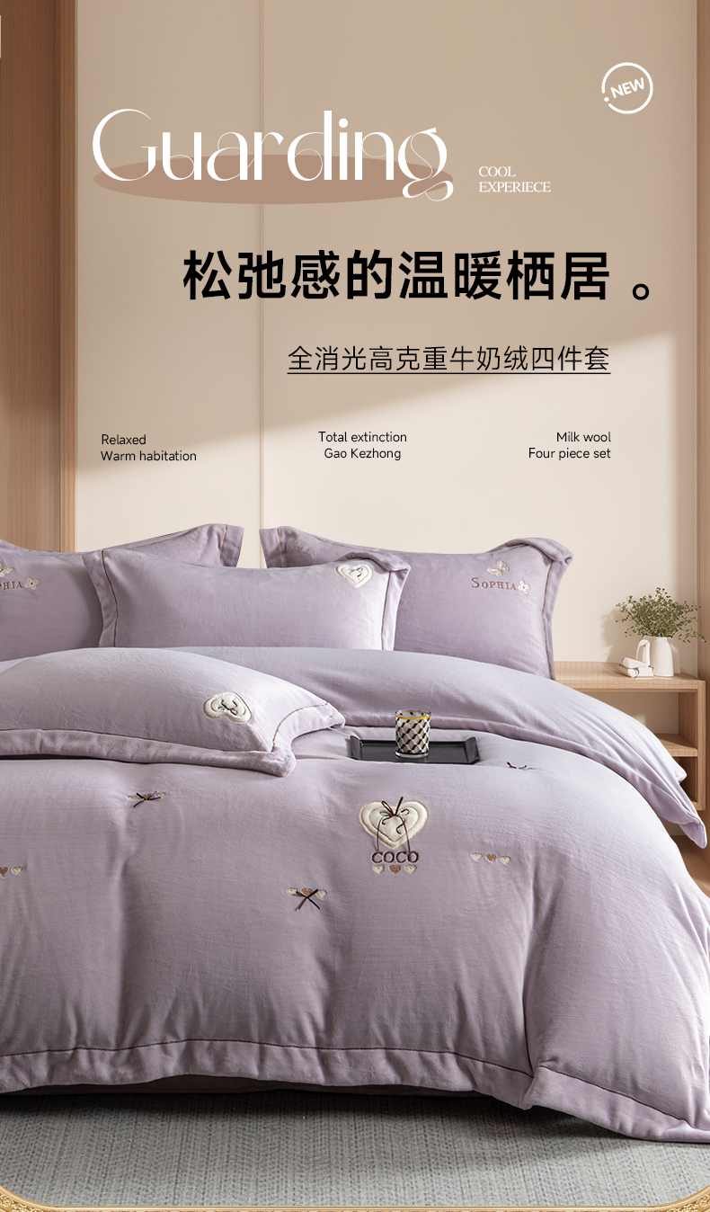 (总)魅都 2025新款冬季全消光超柔高克重牛奶绒四件套-COCO,COCO-浅米咖,COCO-幸运粉,COCO-幸运紫