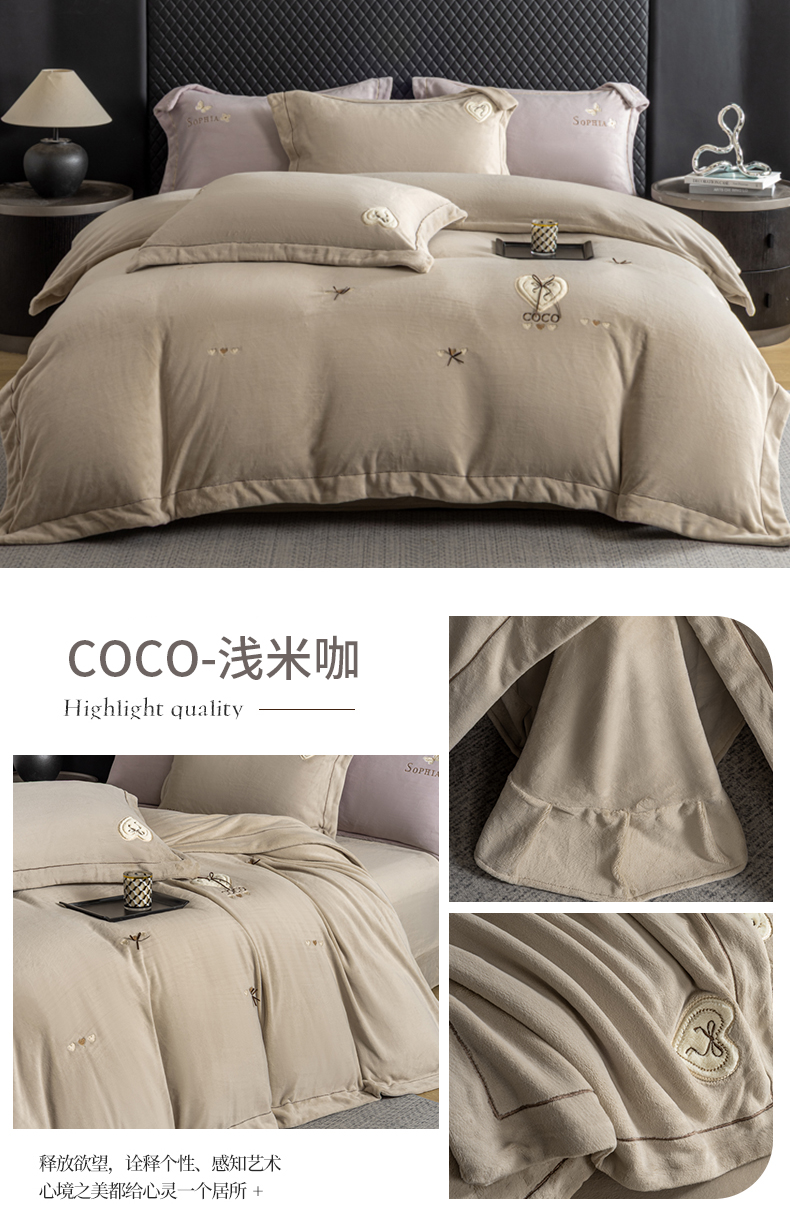 商品名称:魅都 2025新款冬季全消光超柔高克重牛奶绒四件套-COCO COCO-浅米咖