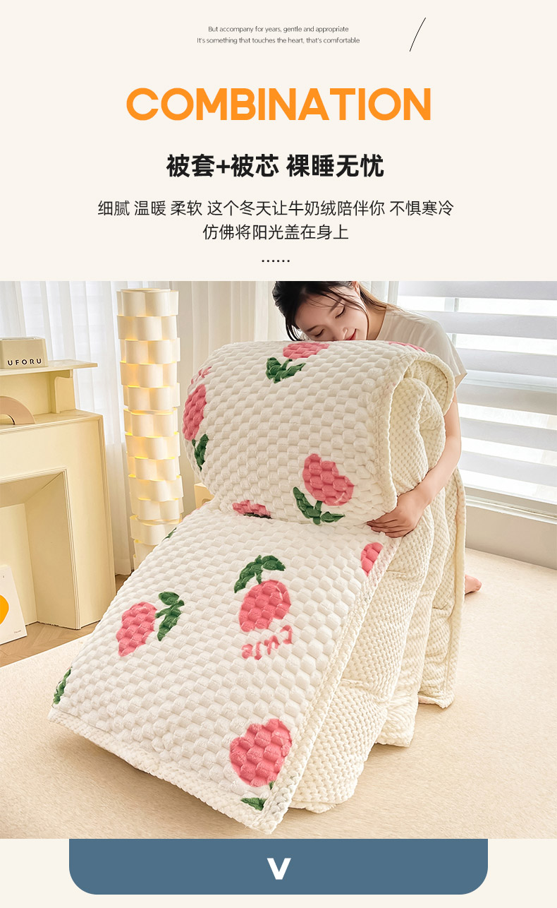 (总)熙宴家纺 2025新款可拆卸冬被被套+被芯二合一可拆洗豆豆绒棉花被子被芯,爱心兔,草绿,大脚熊,粉朵朵花,粉色,欢乐兔,卡其,奶昔白,幸运花,紫花瓣