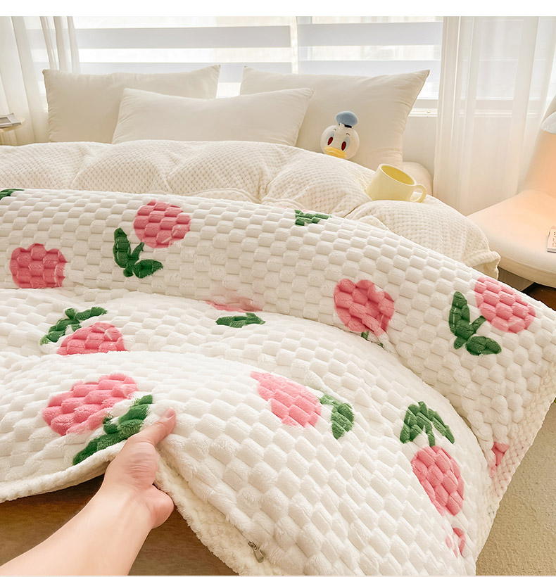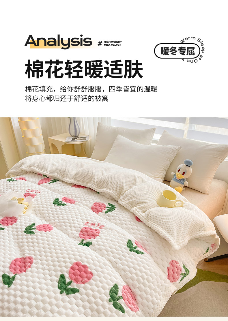 • 91家纺网 家纺一手货源 找家纺 熙宴家纺 2025新款可拆卸冬被被套+被芯二合一可拆洗豆豆绒棉花被子被芯 粉朵朵花
