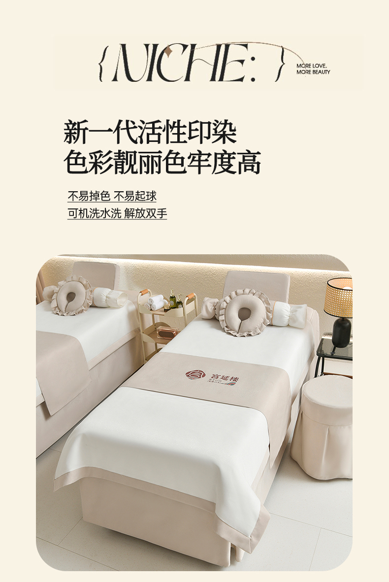 莉人坊美容床罩批发 2025新款高精密美容床罩四件套-春妍 春妍米色