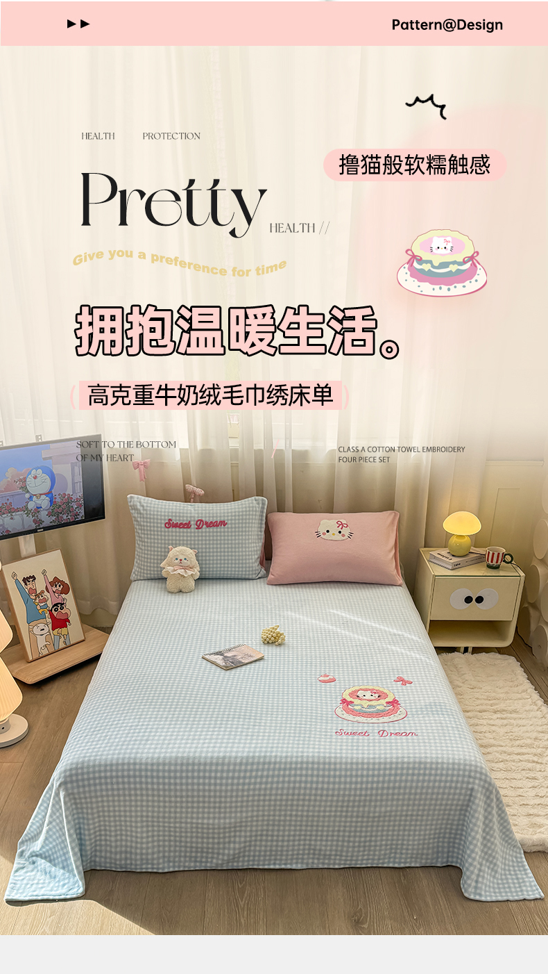 当前位置: 91家纺网 > 商品网购 > 床上用品 > 床单 > 灰鲸 2025新款高克重牛奶绒毛巾绣单床单 蓝格蛋糕喵