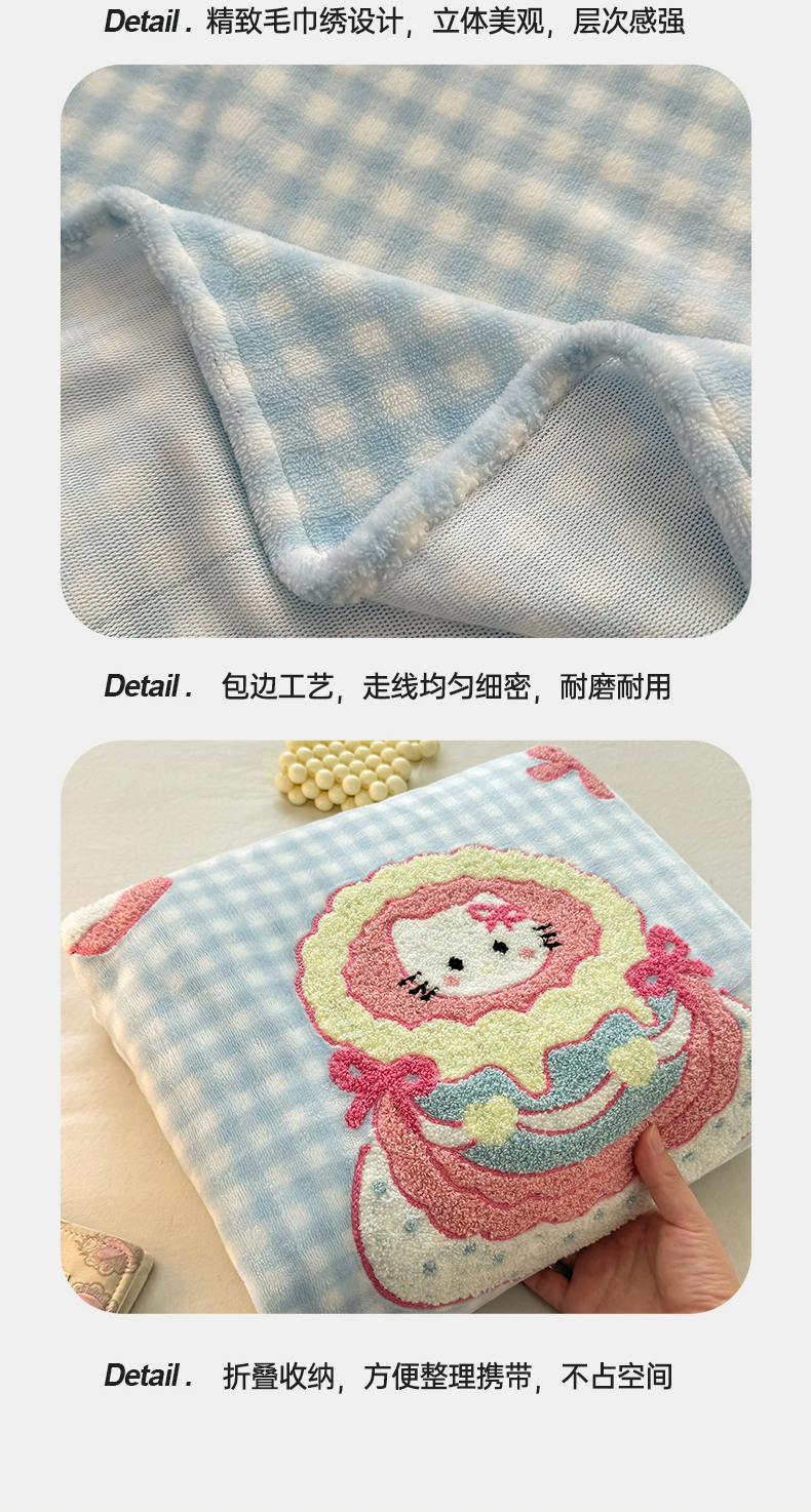 • 91家纺网 家纺一手货源 找家纺 灰鲸 2025新款高克重牛奶绒毛巾绣单床单 蓝格蛋糕喵