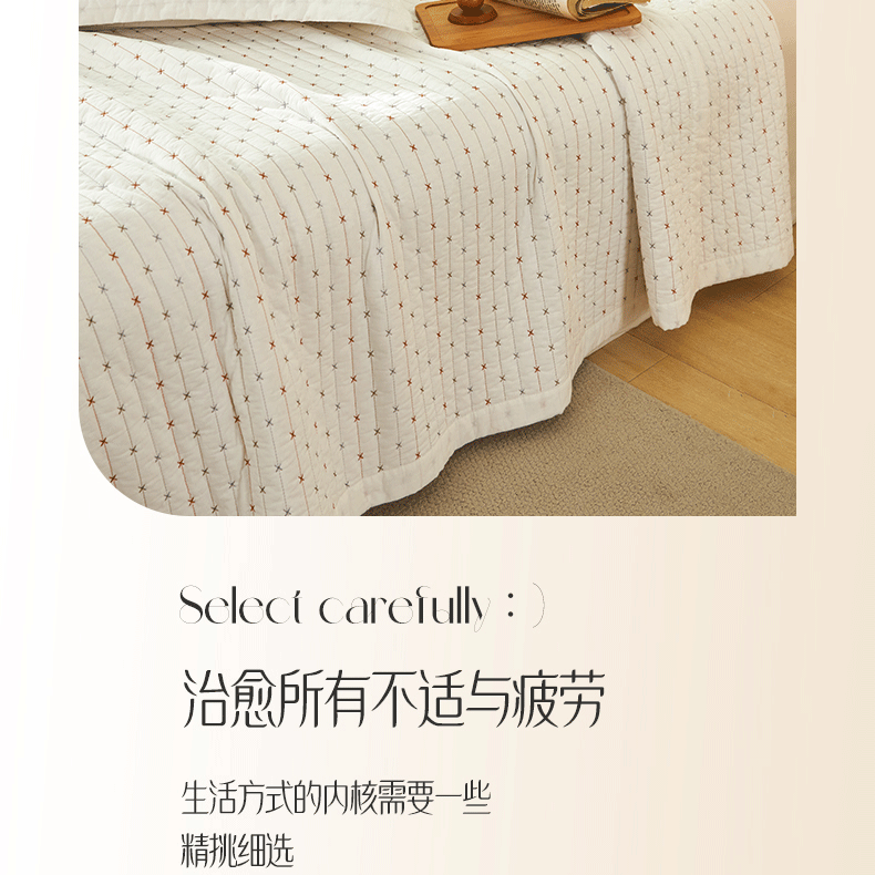 莎果家纺 2025新款米粒绣系列双面纯棉60支平纹床盖(上架此商品联系莎果) 小米粒-卡其