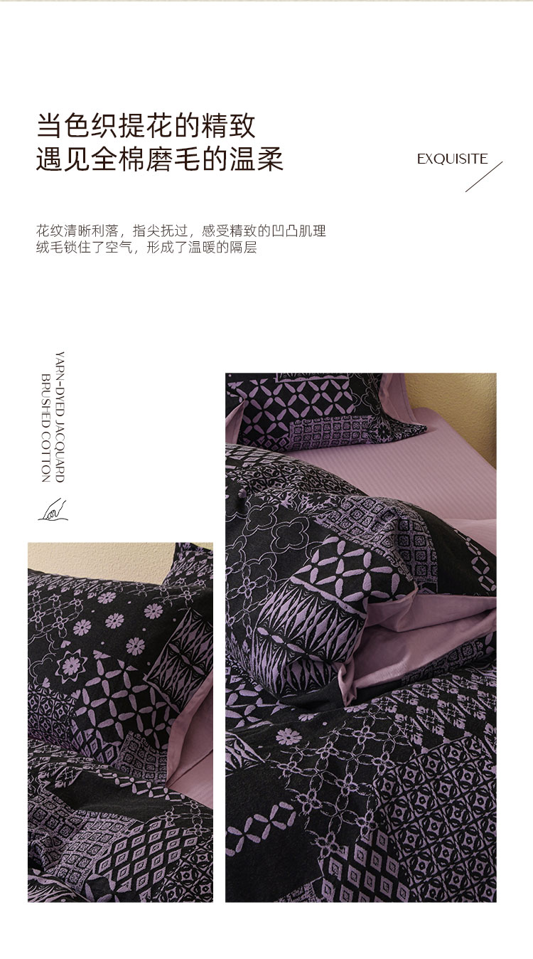 山舍家居 2025新款全棉色织提花磨毛四件套-霍德华庄园(提供买家秀) 霍德华庄园-紫