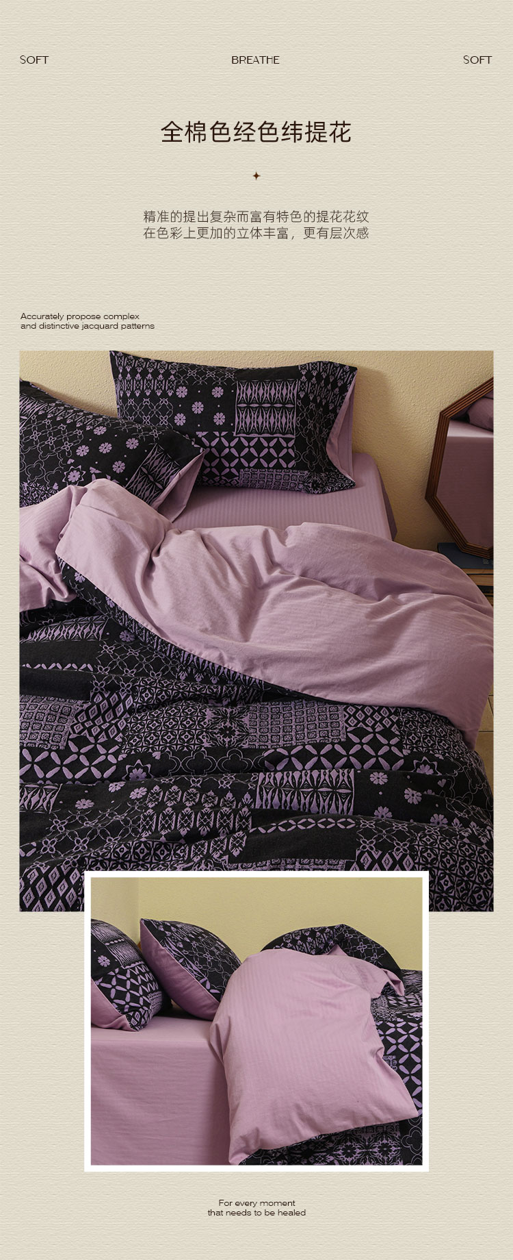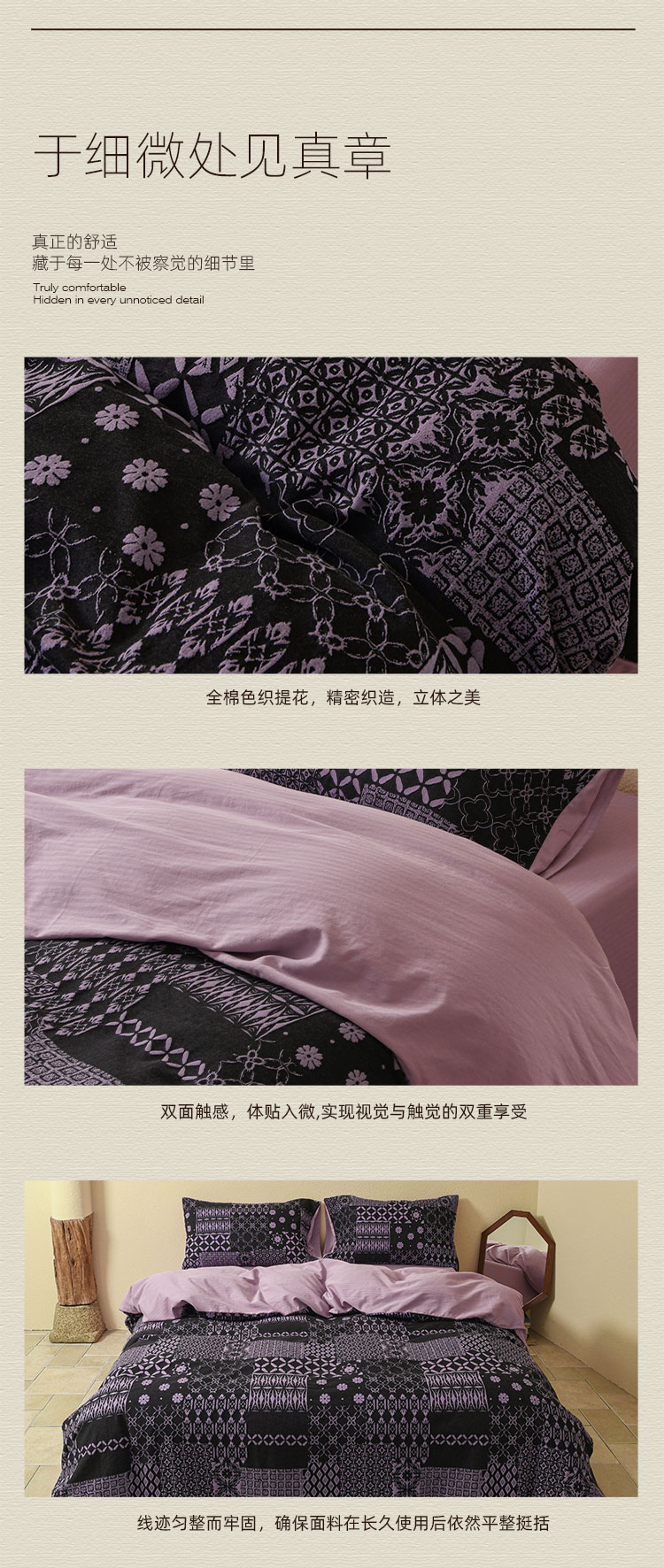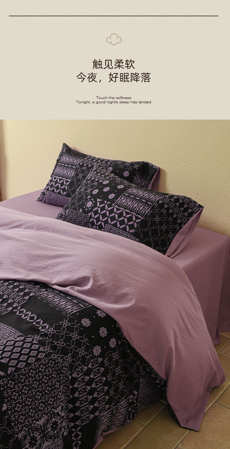 商品名称:山舍家居 2025新款全棉色织提花磨毛四件套-霍德华庄园(提供买家秀) 霍德华庄园-紫