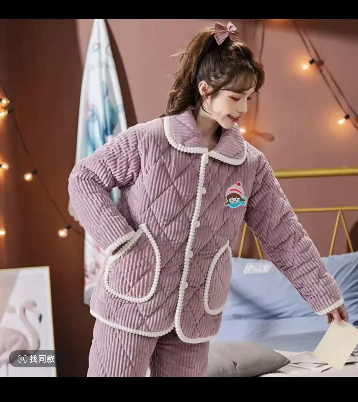 (总)洛兰沙家居馆 2024新款公主风女秋冬季三层夹棉珊瑚绒加厚保暖两件套女士可外穿加绒家居服,L01,L02,L03,L04,L05,L06,L07,L08,L09,L10,L11,L12,L13,L14,L15,L16,L17,L18