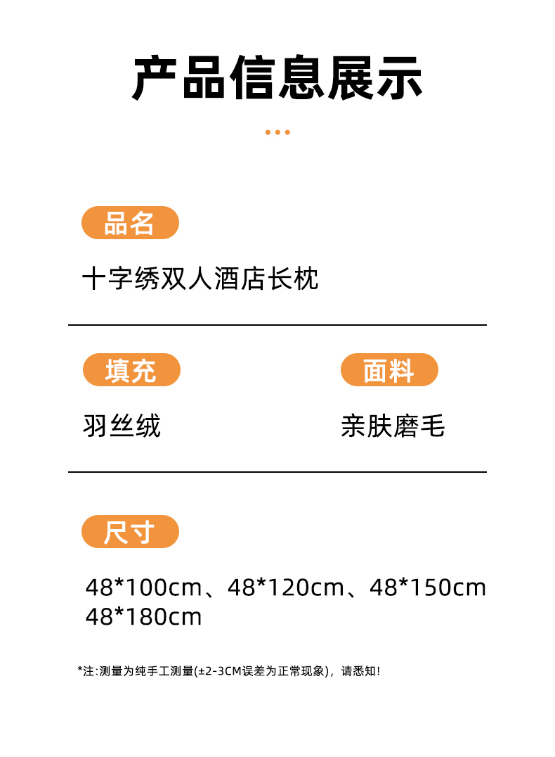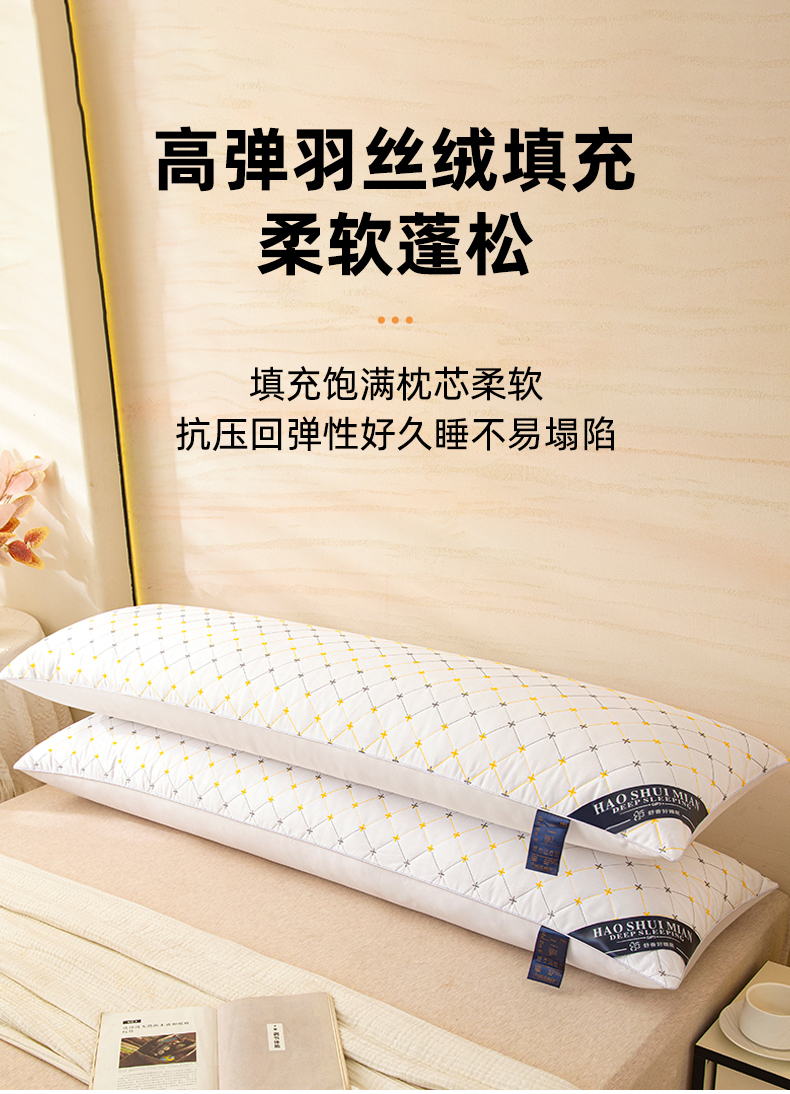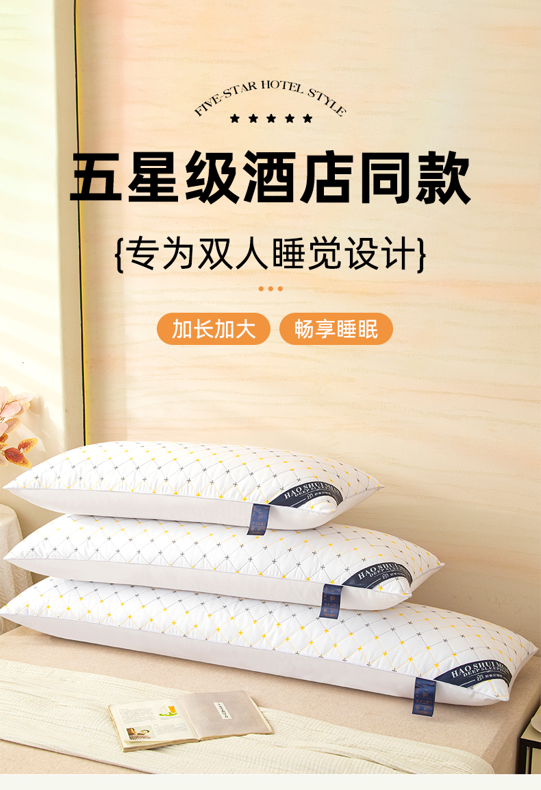 商品名称:(总)织布人 2025新款枕芯绗绣十字星双人枕头亲子枕酒店情侣家用护颈长枕芯