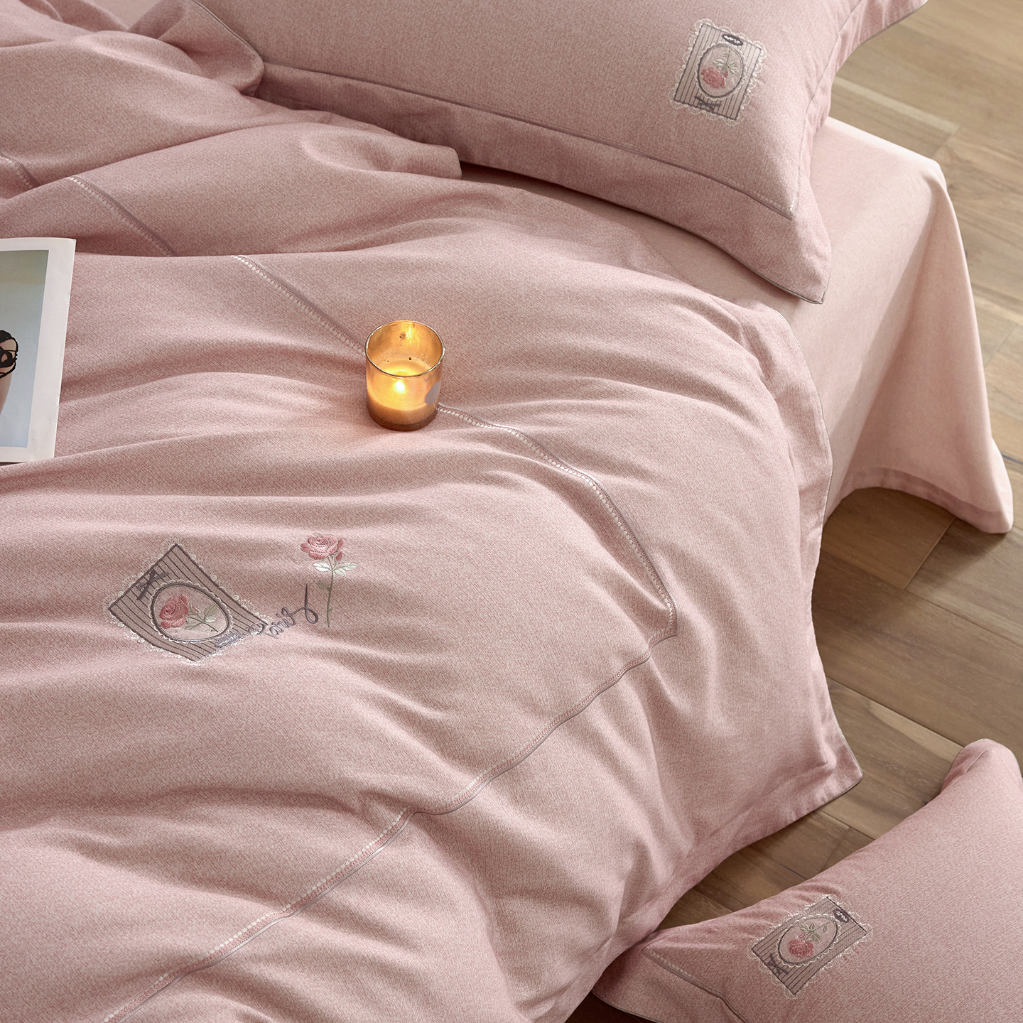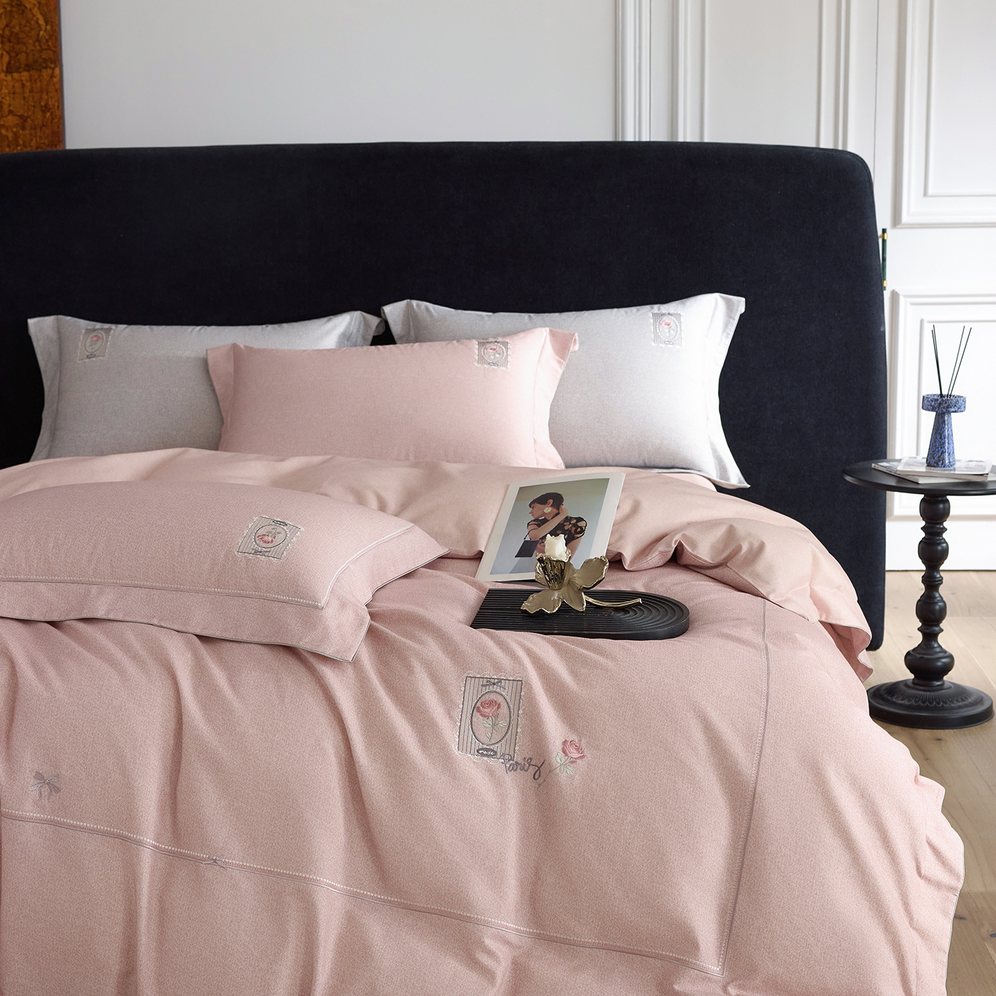 (总)榻尚家居 2025秋冬新品纯棉贡缎磨毛绣花工艺款四件套-盛夏玫瑰 (控价:398),盛夏玫瑰 粉色,盛夏玫瑰 灰,盛夏玫瑰 杏紫色