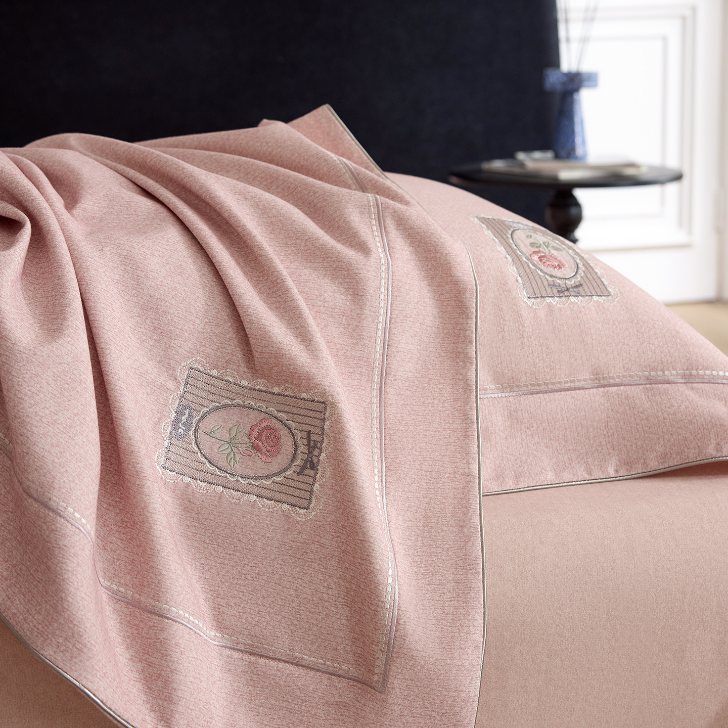 (总)榻尚家居 2023新款纯棉贡缎提花四件套(会员-10),缤兰,烟粉
