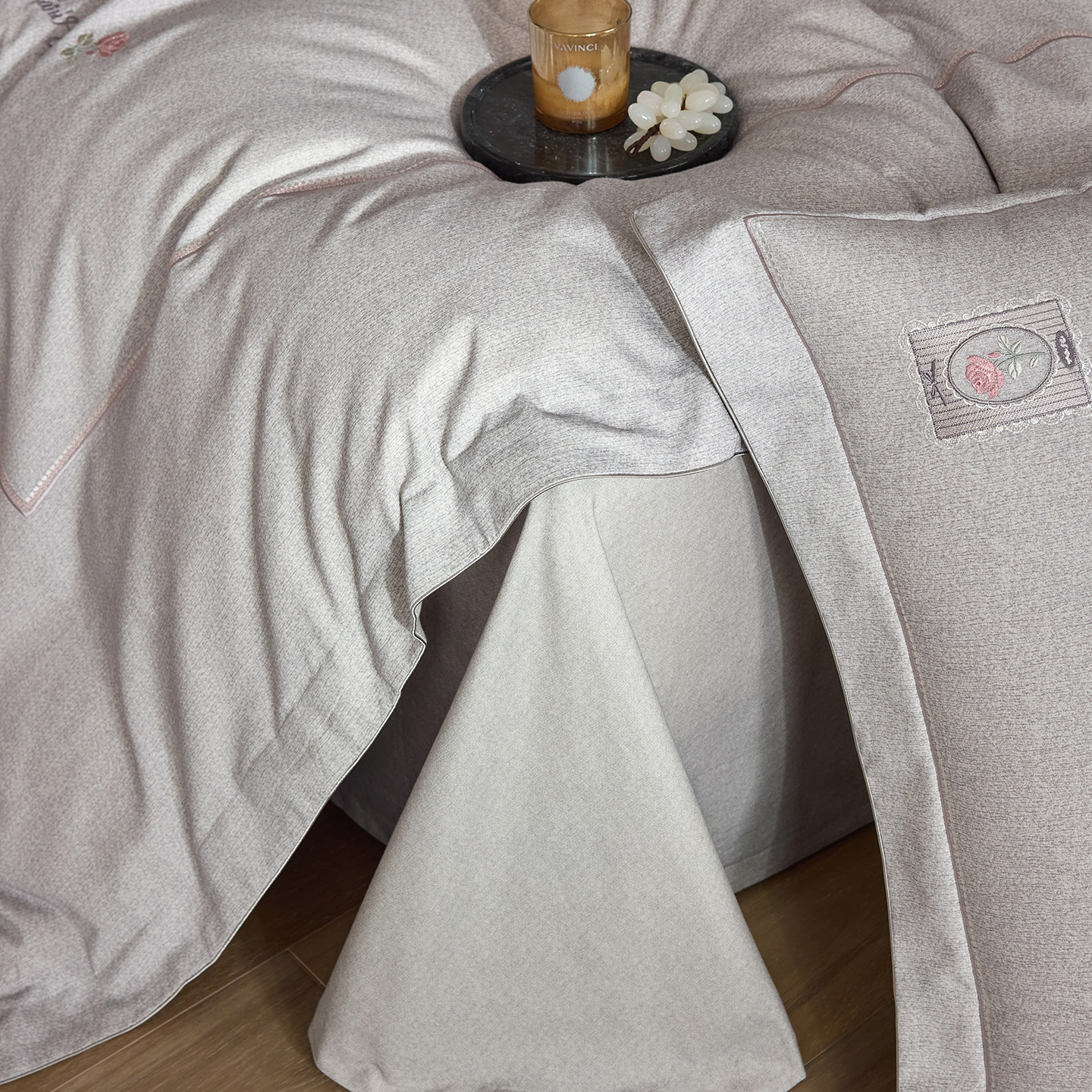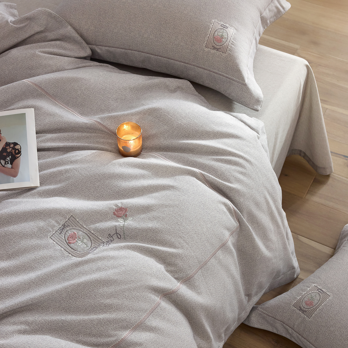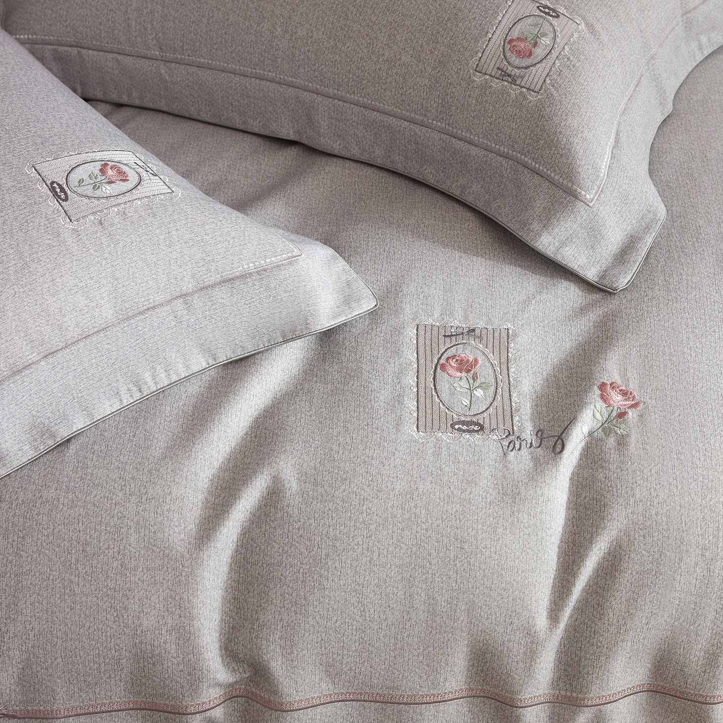 榻尚家居 2025秋冬新品纯棉贡缎磨毛绣花工艺款四件套-盛夏玫瑰(控价:398) 盛夏玫瑰 灰