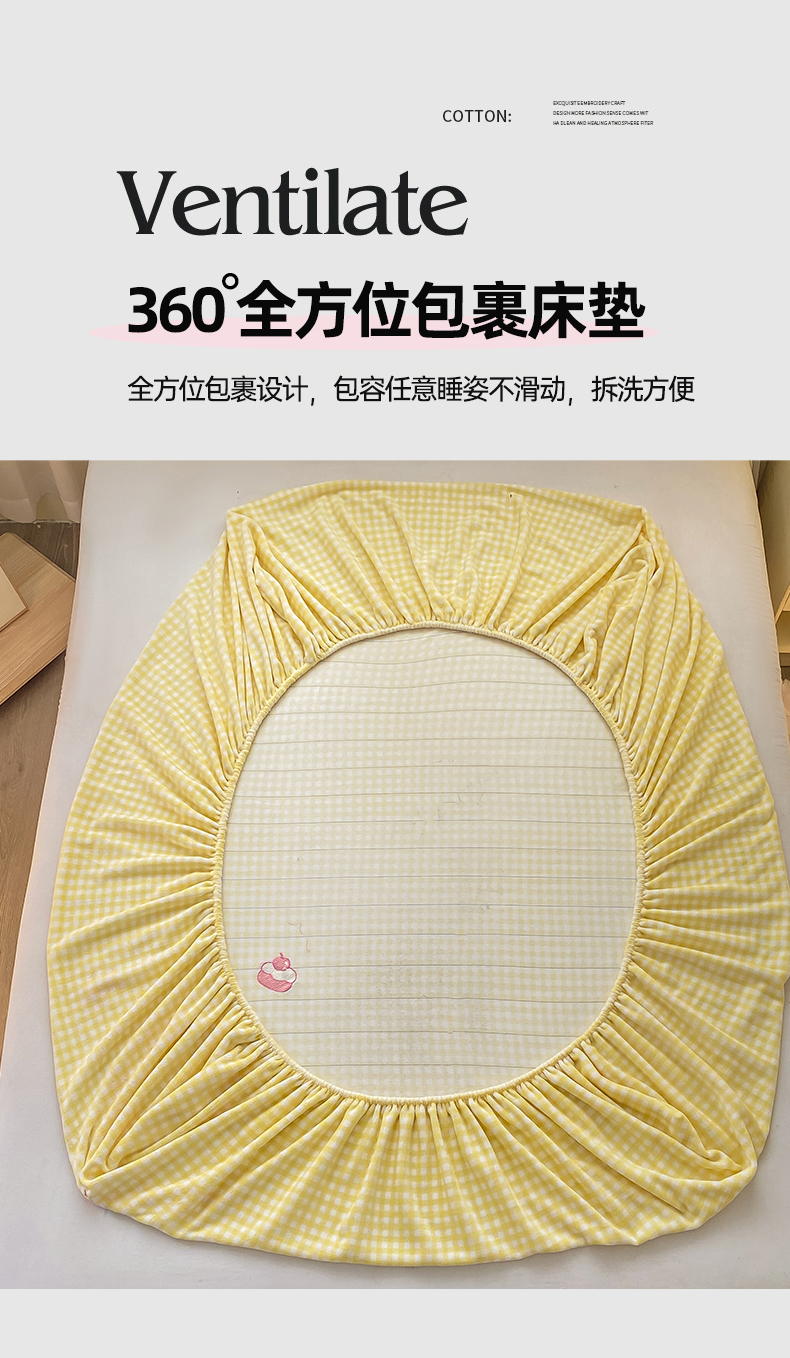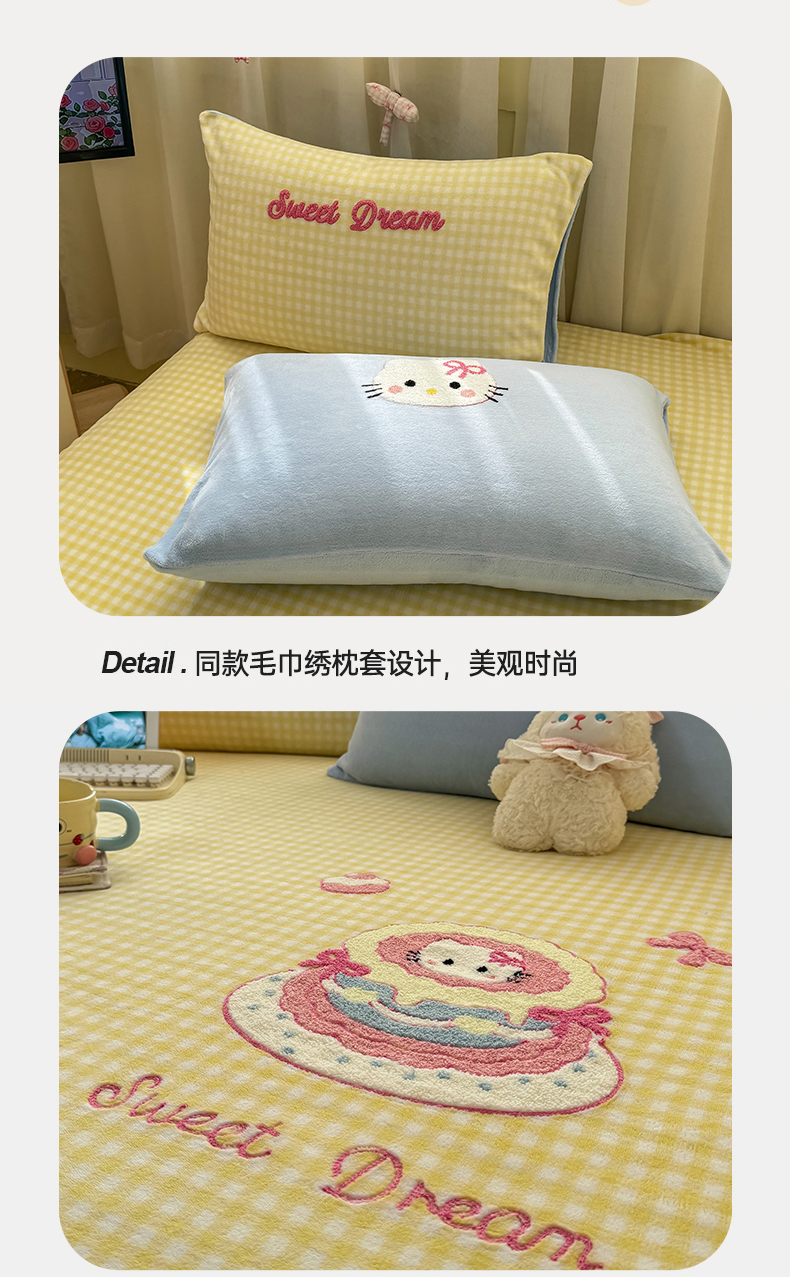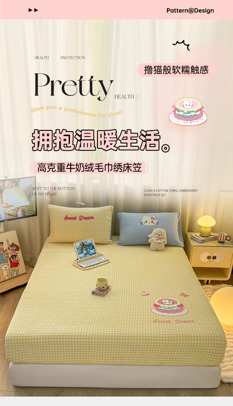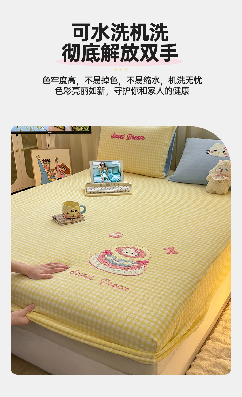• 91家纺网 家纺一手货源 找家纺 灰鲸 2025新款高克重牛奶绒毛巾绣床笠单床笠单品床笠床笠单件 黄格蛋糕喵