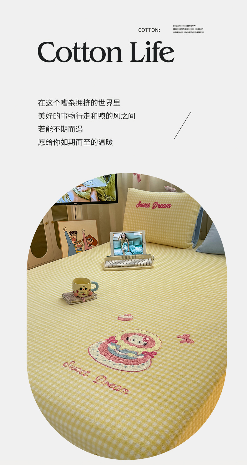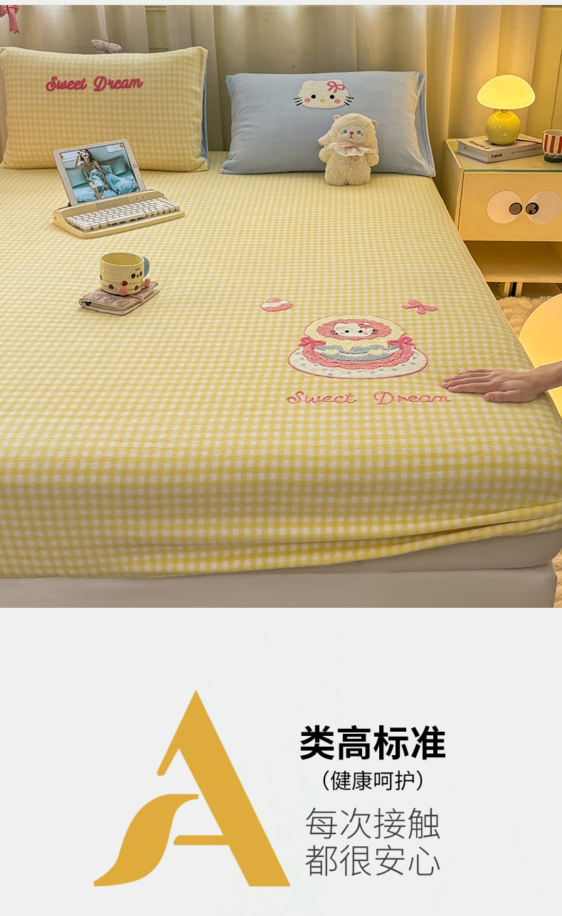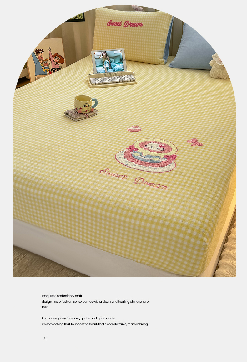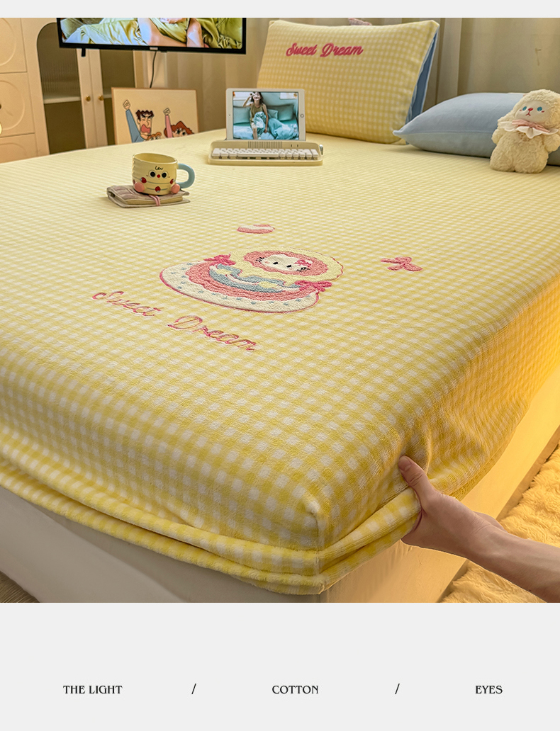 灰鲸 2025新款高克重牛奶绒毛巾绣床笠单床笠单品床笠床笠单件 黄格蛋糕喵