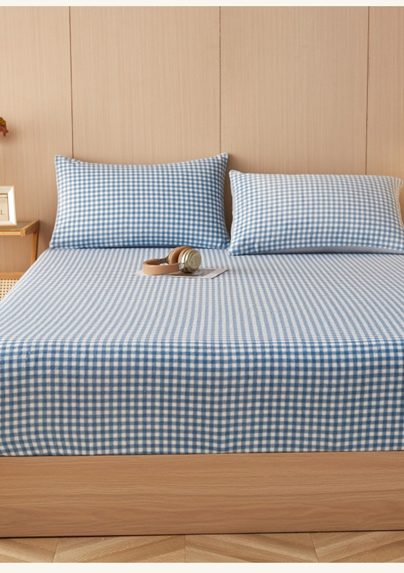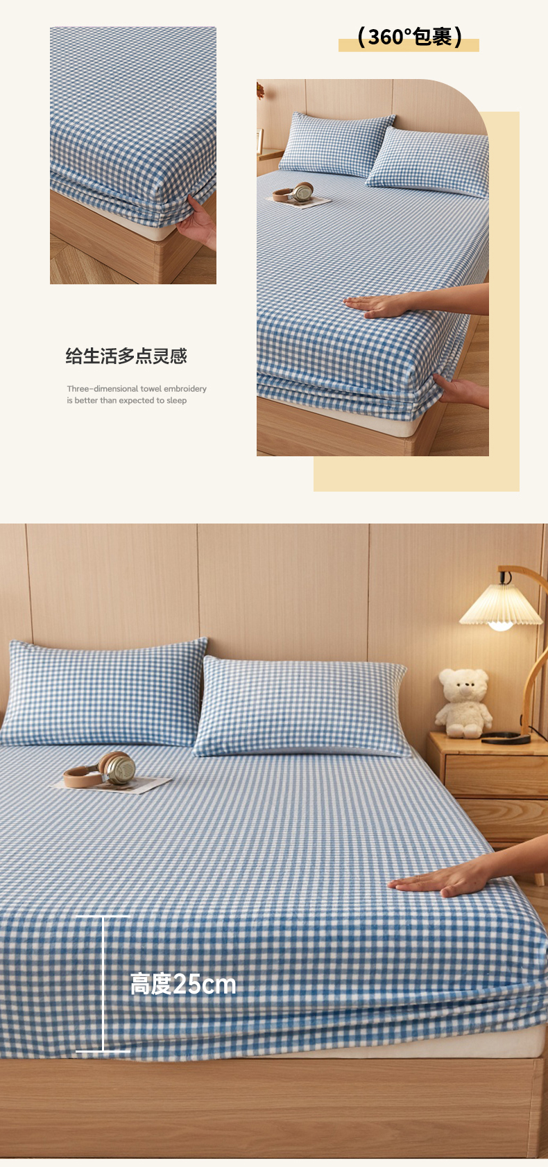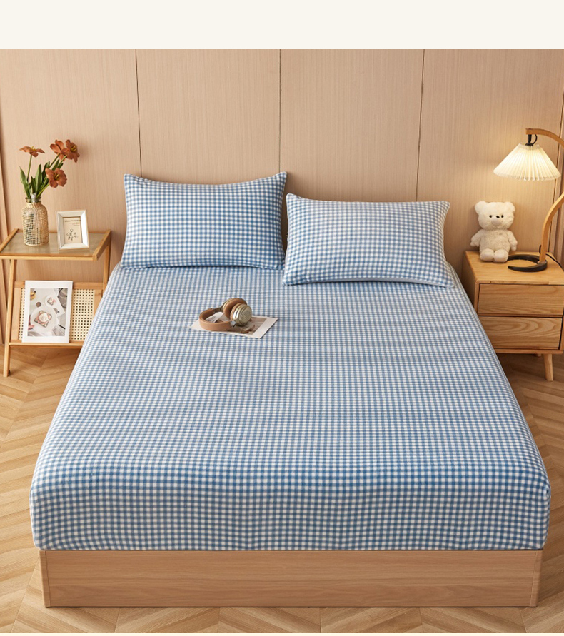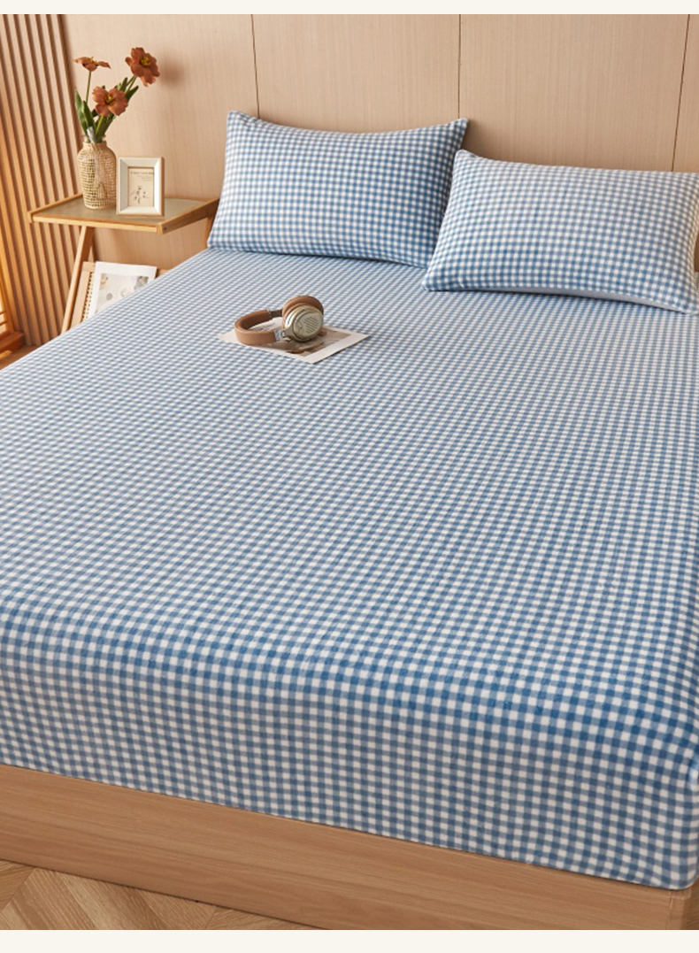 一禾 2025新款简约印花高克重牛奶绒床笠 蓝小格