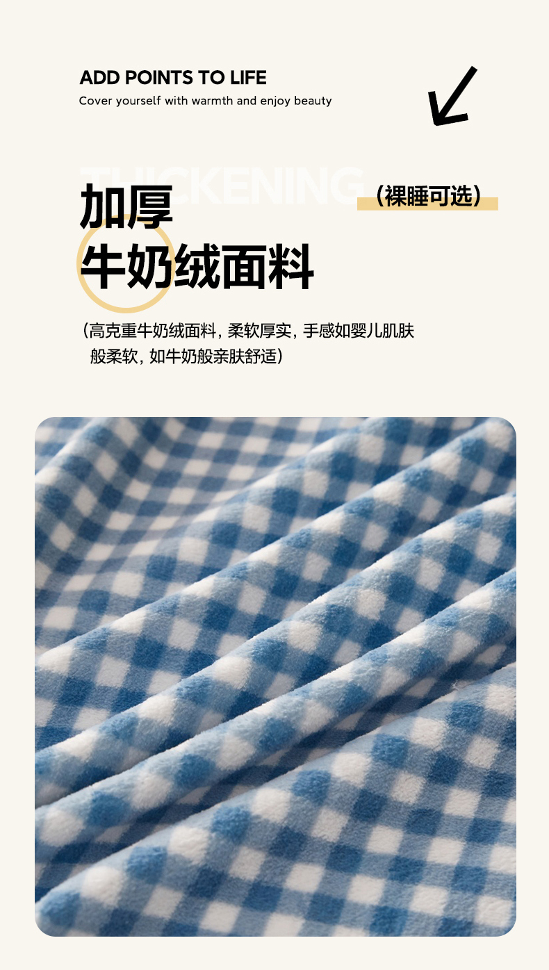 商品名称:一禾 2025新款简约印花高克重牛奶绒床笠 蓝小格