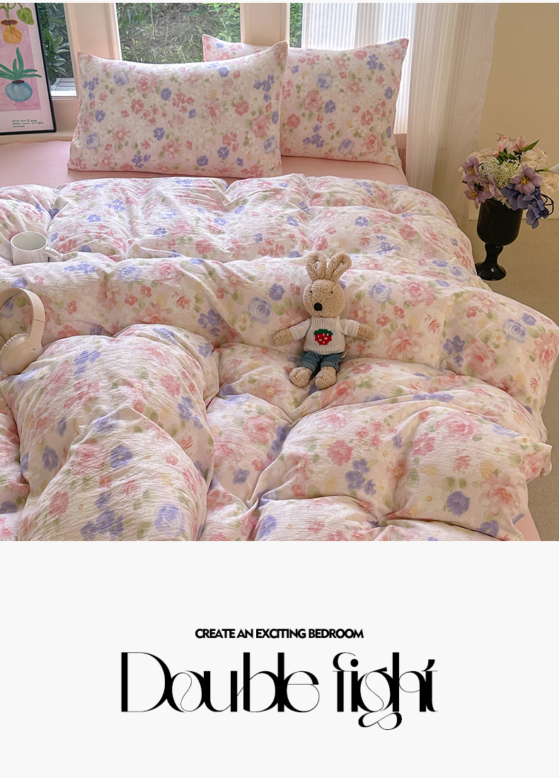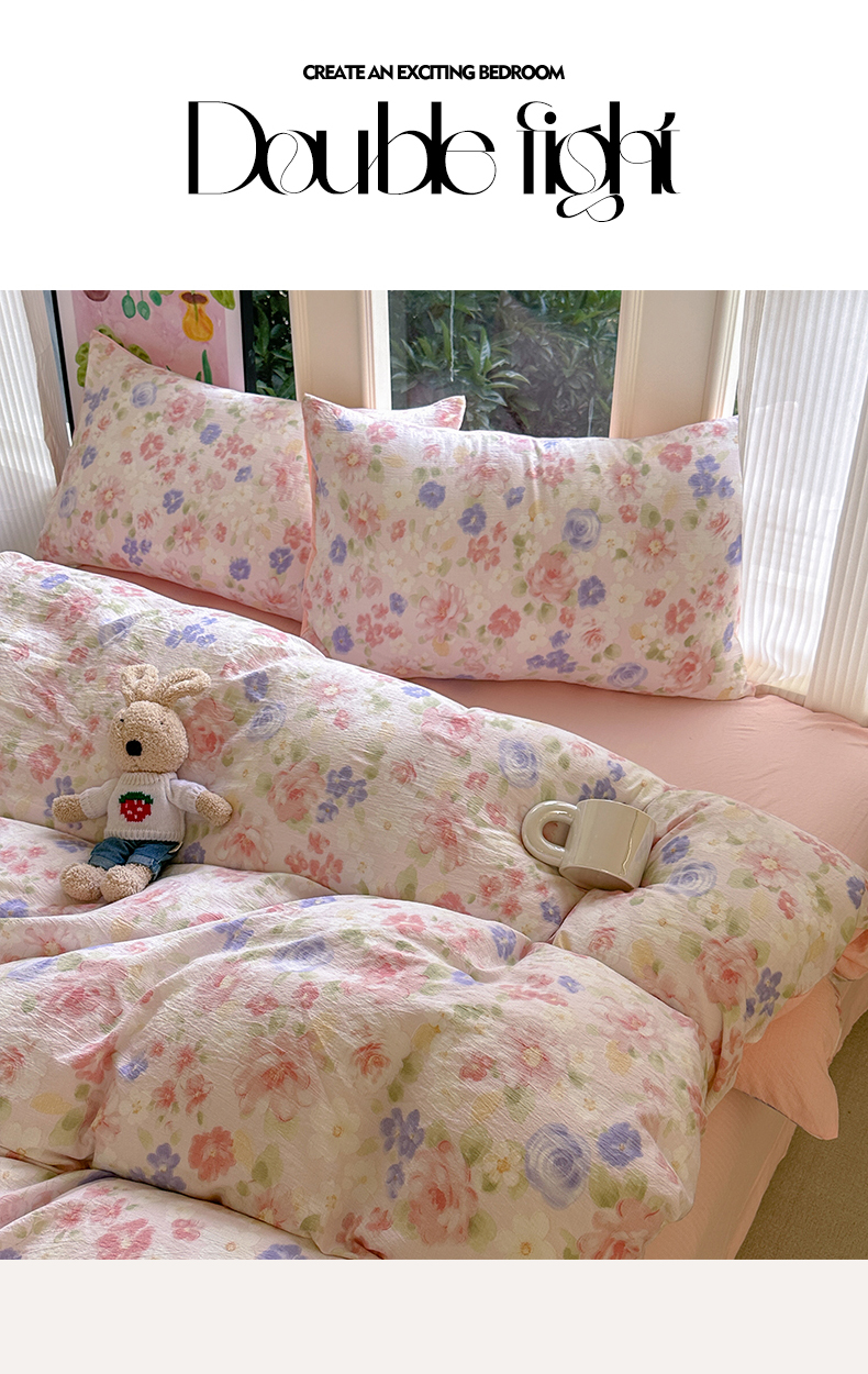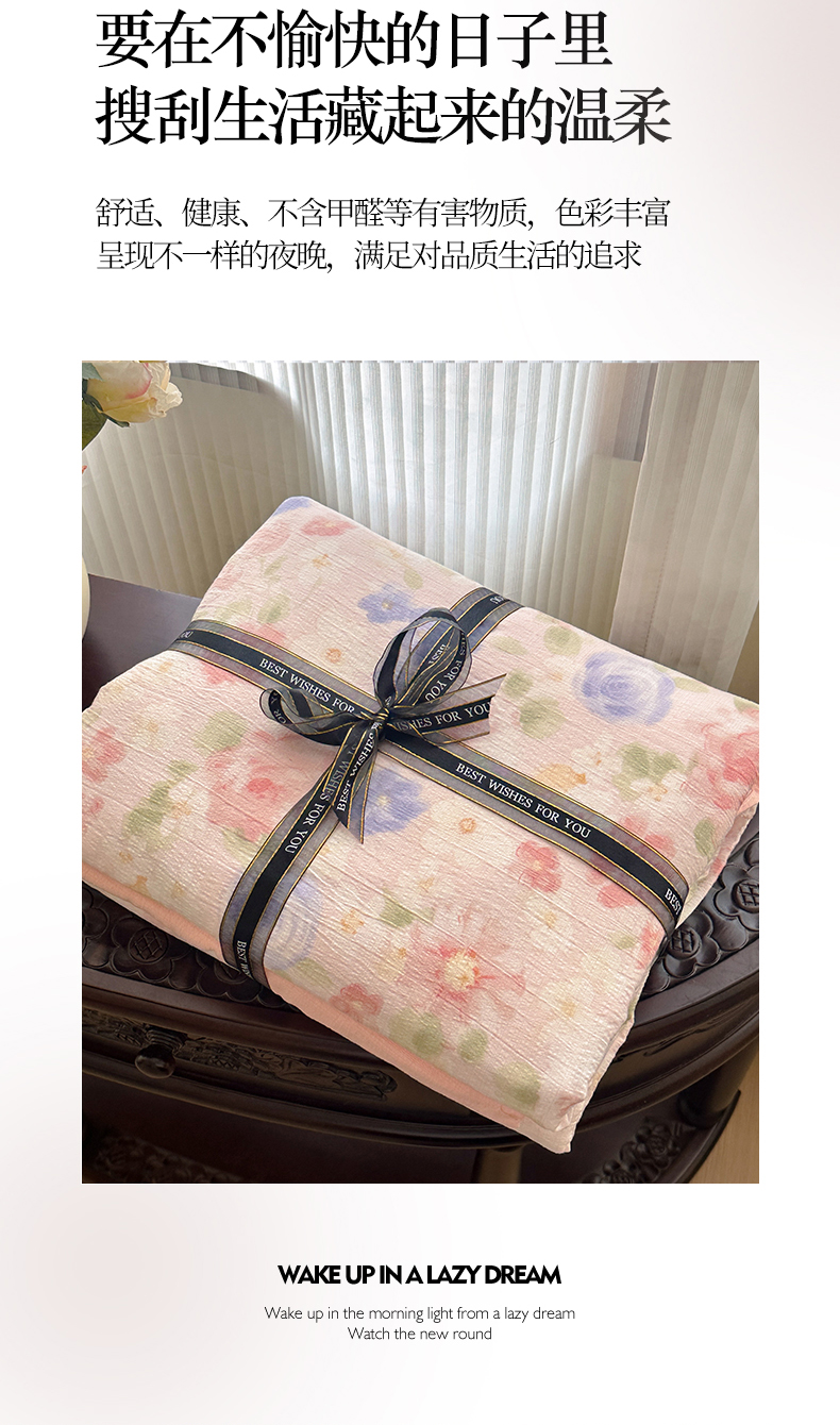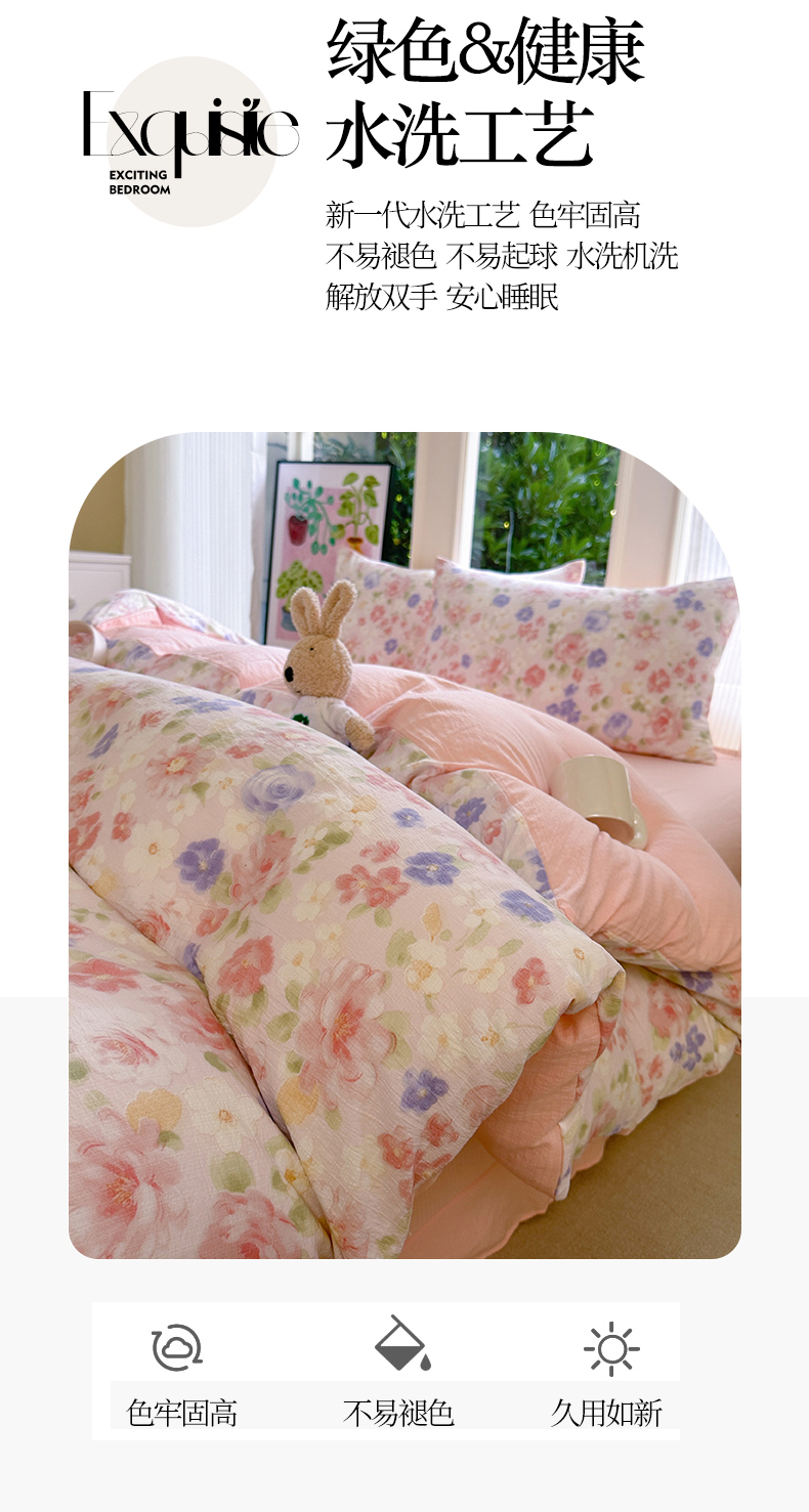 (总)桔禾家纺 2025新款小清新水洗棉有氧双层纱印花云感木棉皱皱纱四件套