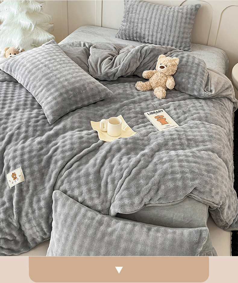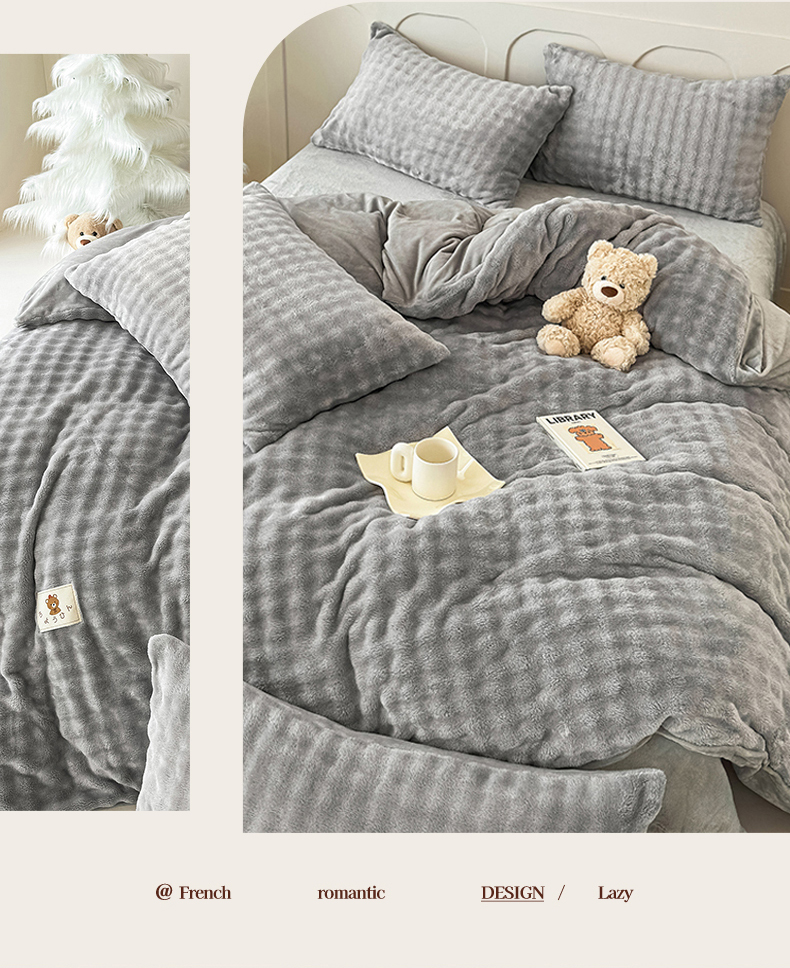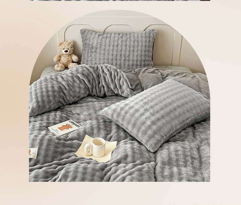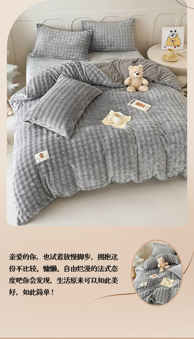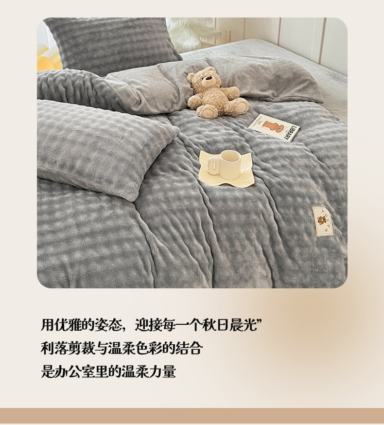 当前位置: 91家纺网 > 商品网购 > 床品套件 > 四件套 > 兔毛绒四件套 > 宜派家纺 2025新款A类简约高克重泡泡兔毛绒四件套 泡泡-浅灰
