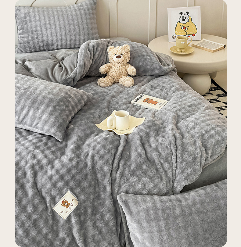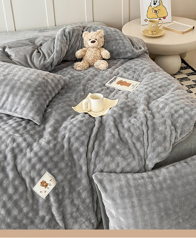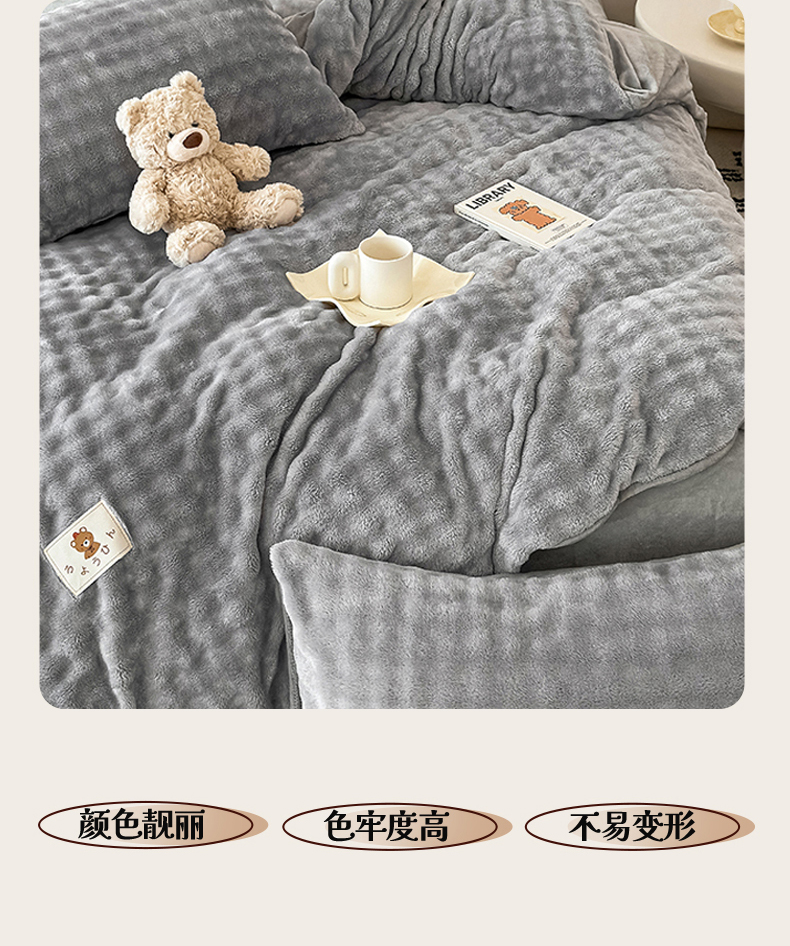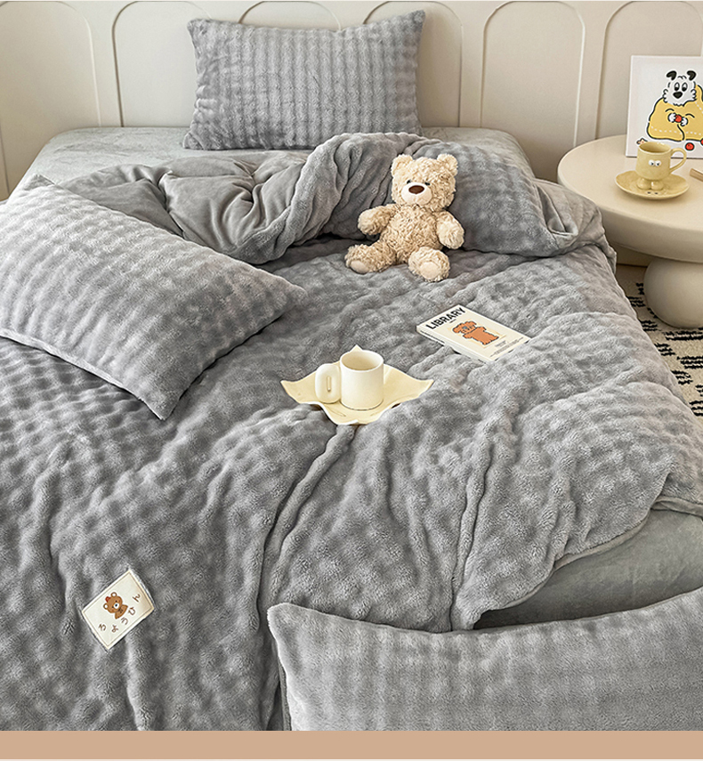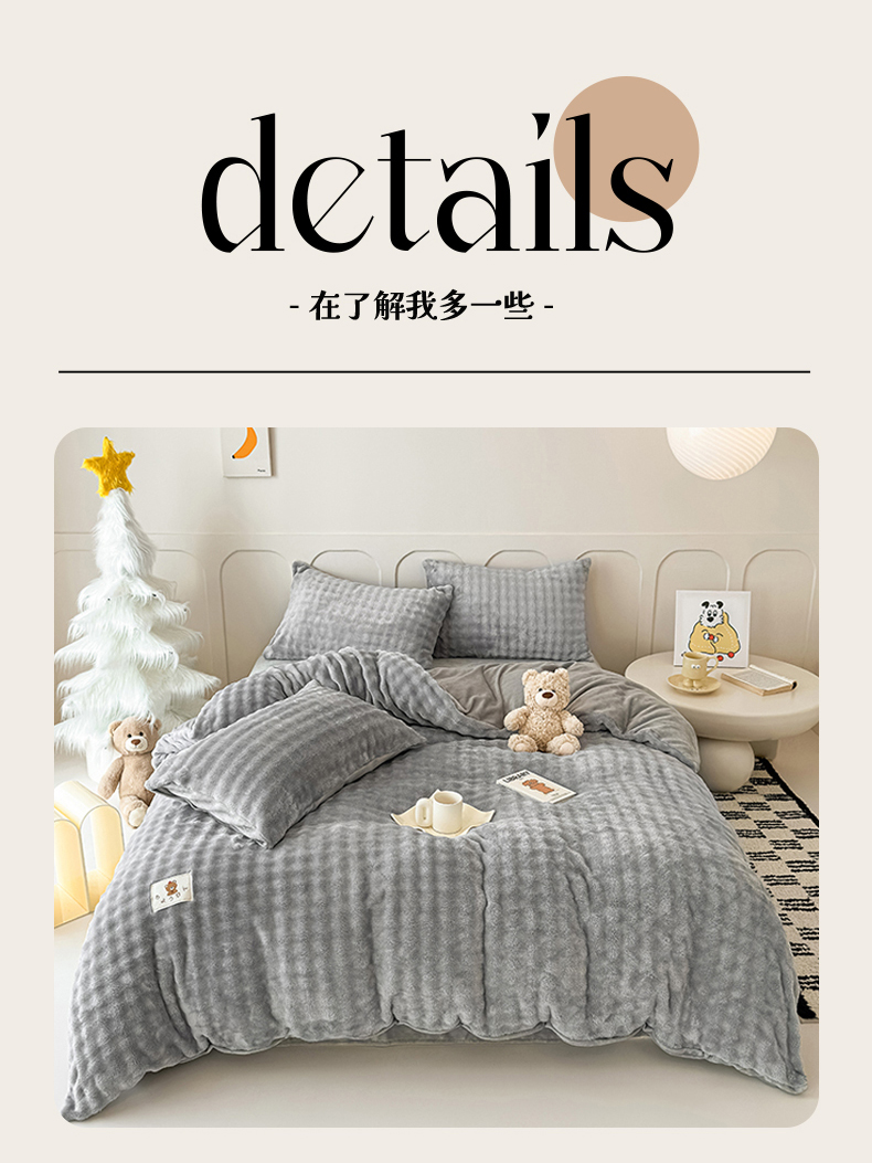 当前位置: 91家纺网 > 商品网购 > 床品套件 > 四件套 > 兔毛绒四件套 > 宜派家纺 2025新款A类简约高克重泡泡兔毛绒四件套 泡泡-浅灰