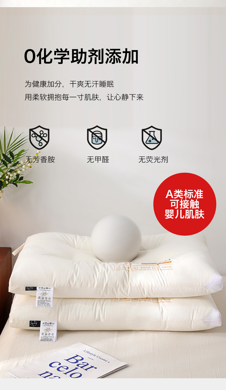 商品名称:仁宇枕业 2025新款新品A类全棉大豆蛋白舒适定型护颈羽丝绒枕头枕芯 大豆蛋白舒适枕