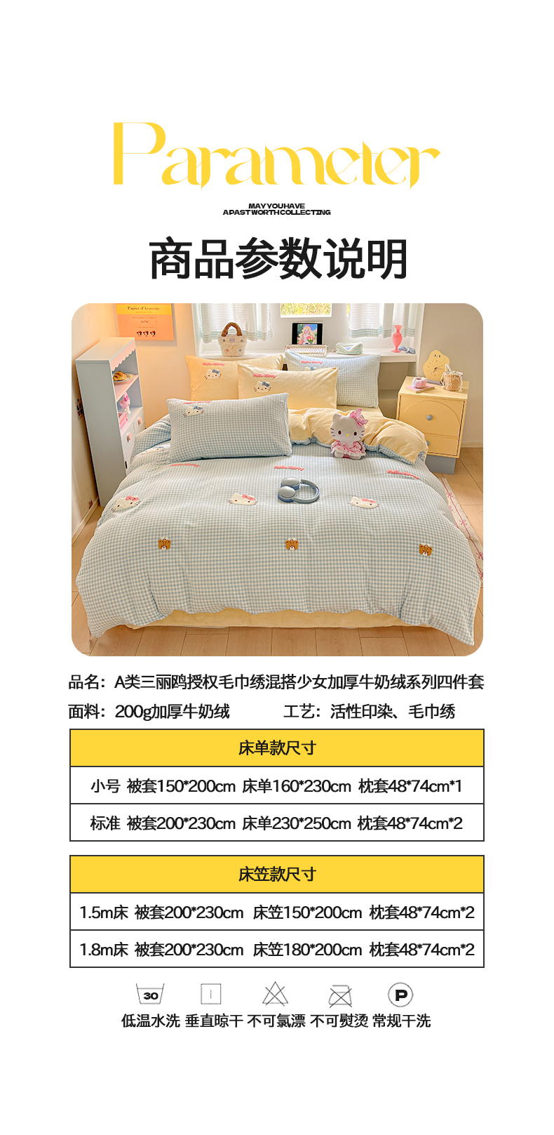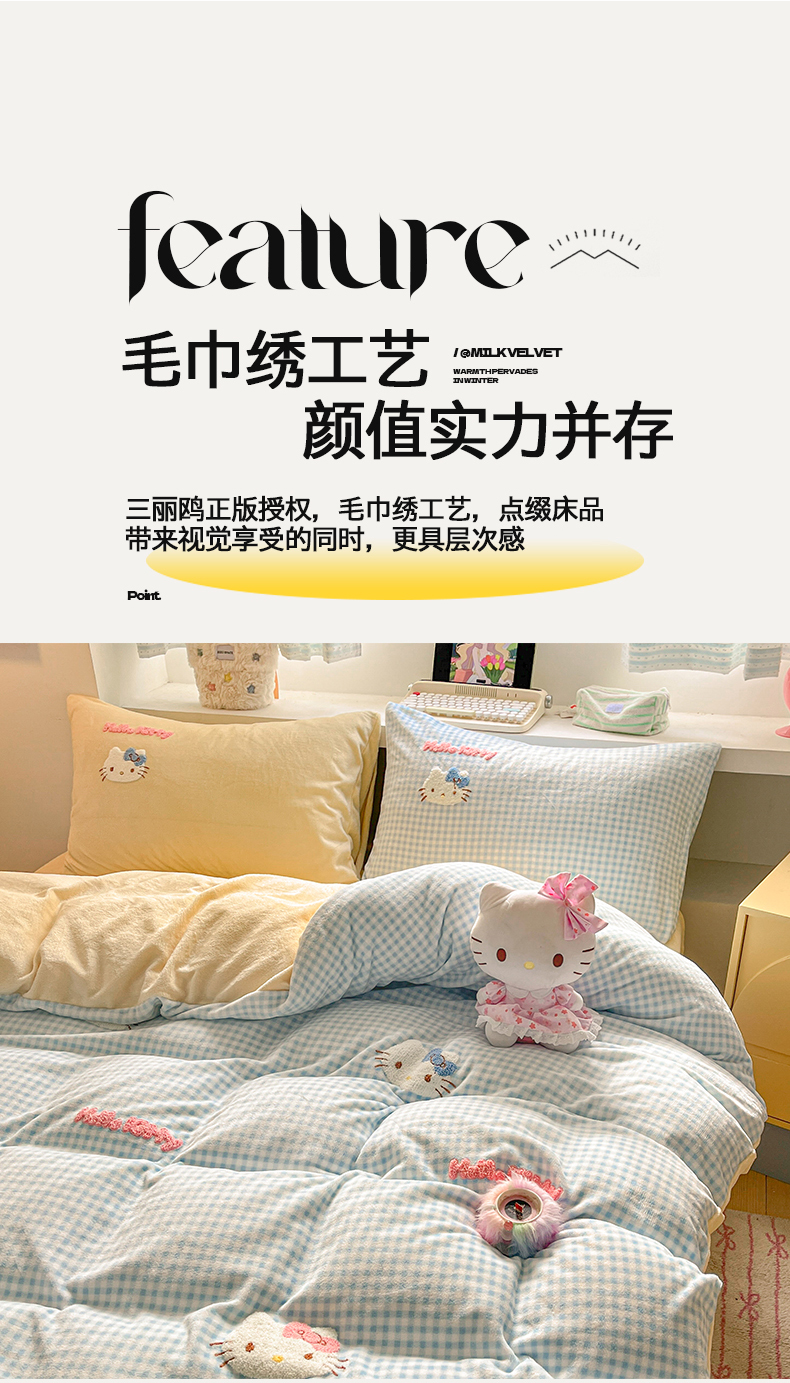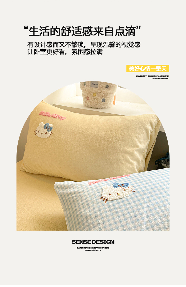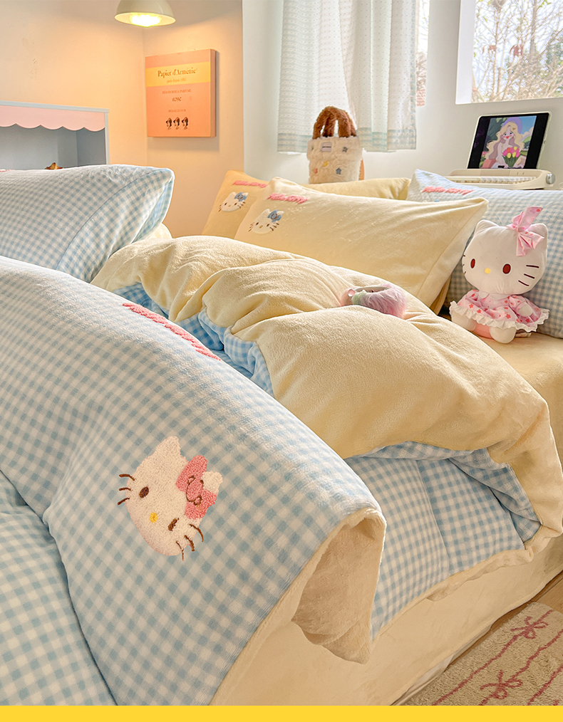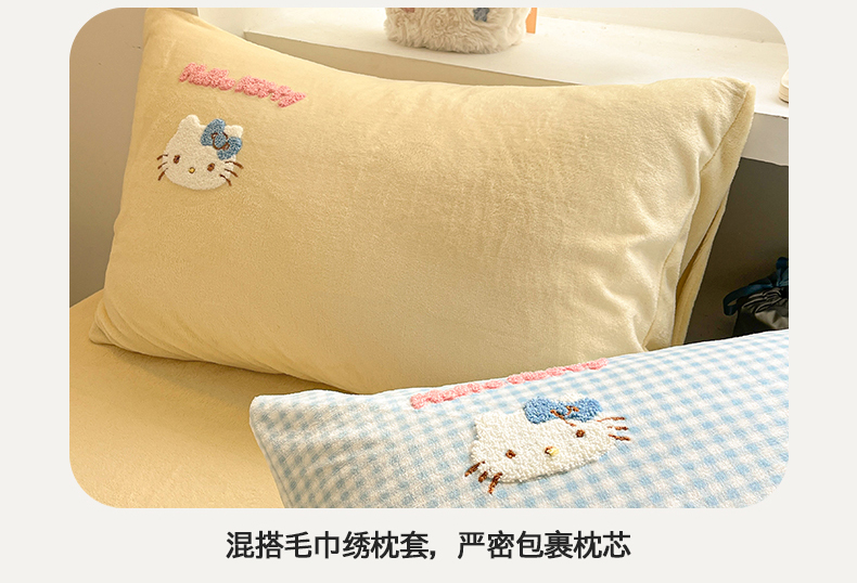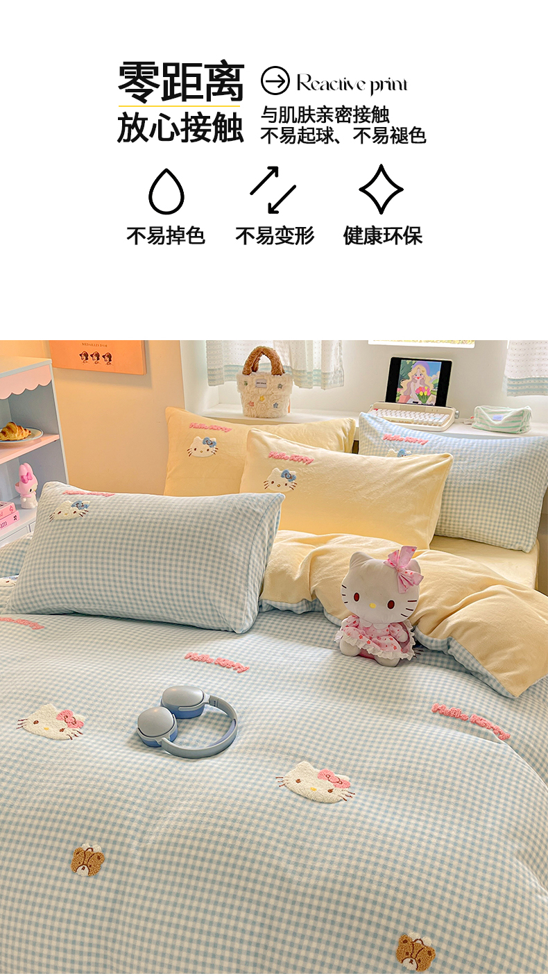 当前位置: 91家纺网 > 商品网购 > 床品套件 > 四件套 > 牛奶绒四件套 > 金爱家 2025新款A类三丽鸥授权毛巾绣混搭少女加厚牛奶绒系列四件套 绒毛巾绣-小熊KT蓝黄