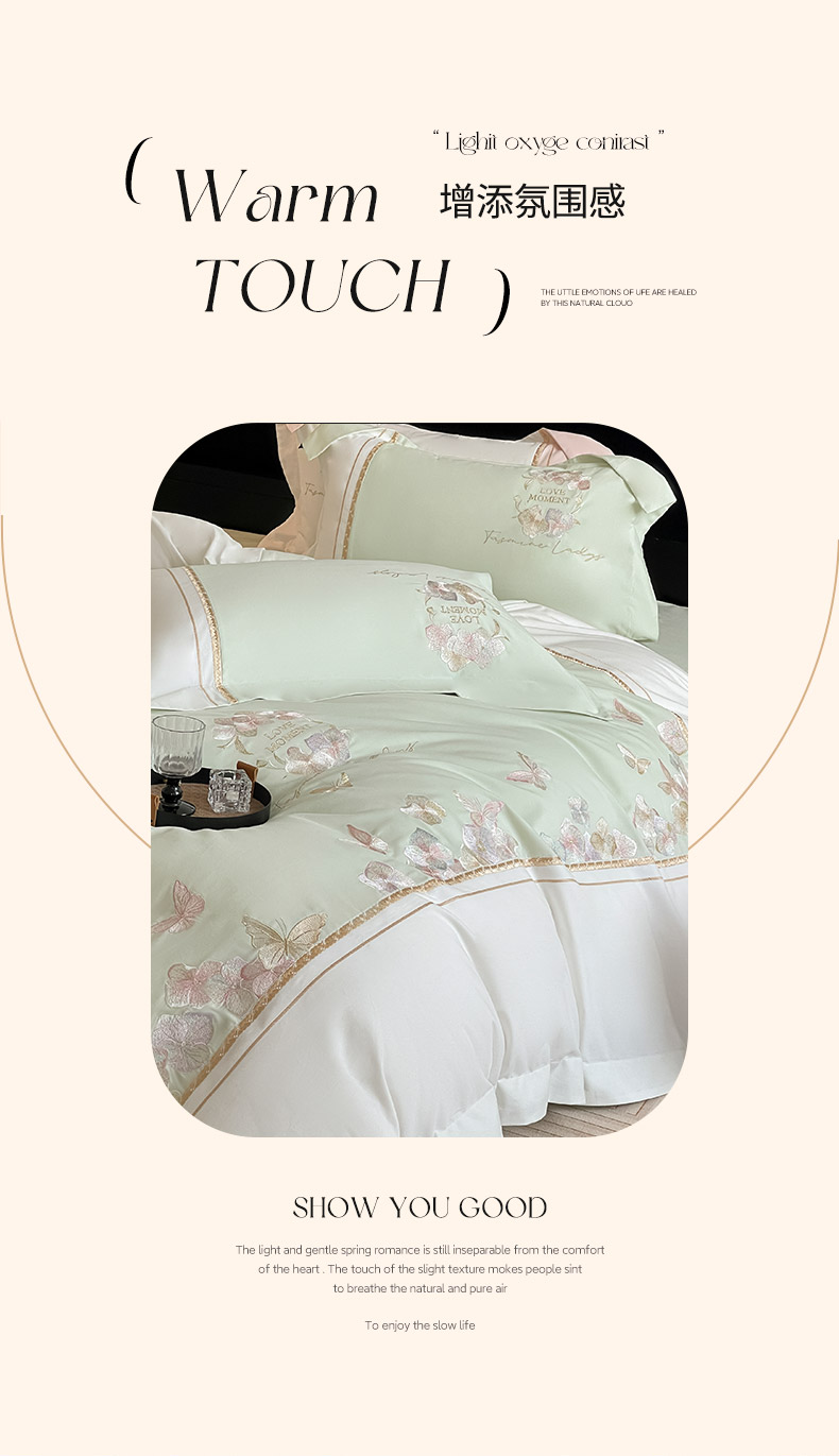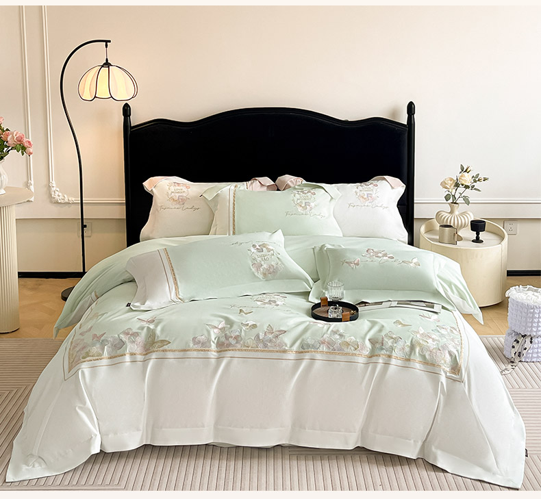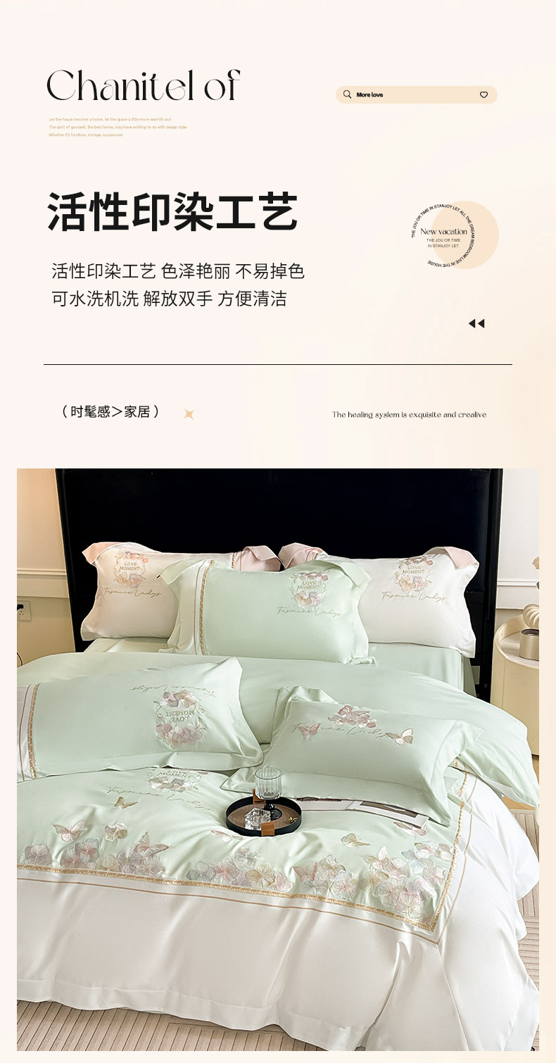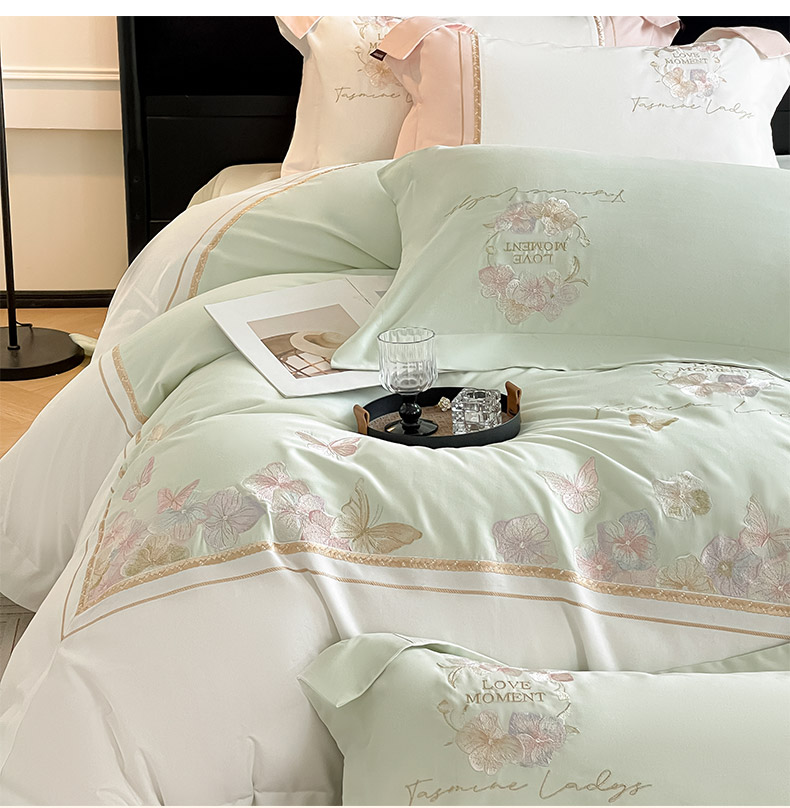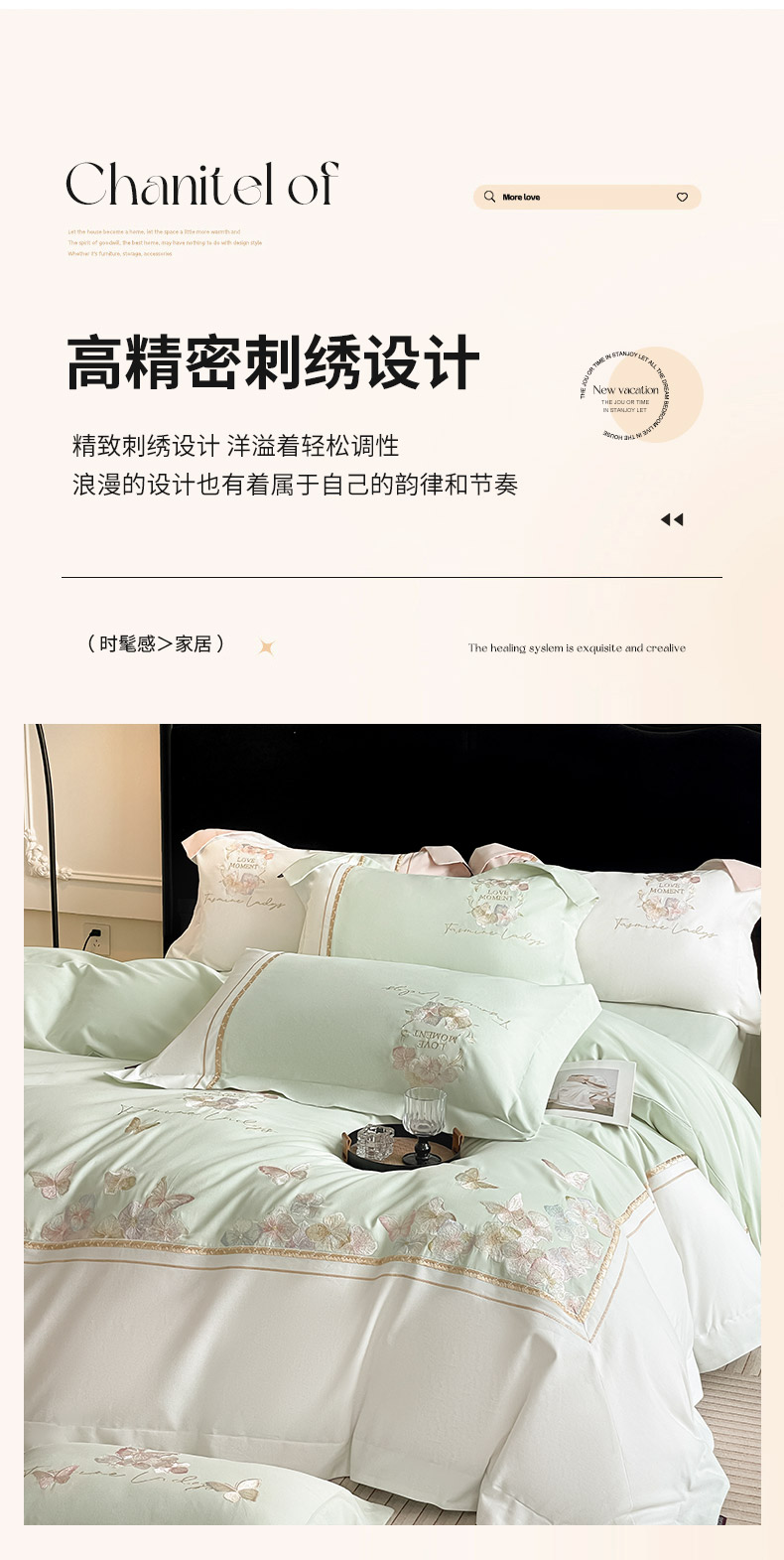 • 91家纺网 家纺一手货源 找家纺  2025秋冬新款轻奢高级感加厚保暖全棉纯棉磨毛重工刺绣四件套床上用品花间集 花间集-清绿