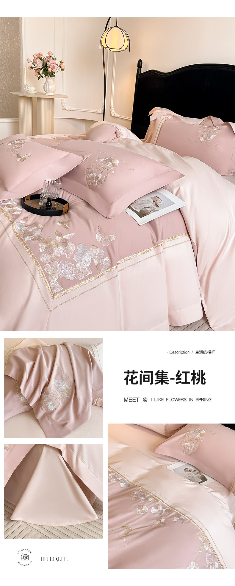 • 91家纺网 家纺一手货源 找家纺 (总) 2026新品高端轻奢风A类贡缎长绒棉四件套纯棉重工刺绣被套床单高级感床笠床上用品-格拉芙,格拉芙-芸粉,格拉芙-柔杏