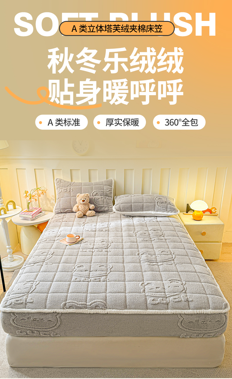 商品名称:予梦家纺 2025新款塔芙绒夹棉床笠单床笠 萌萌熊 星灰