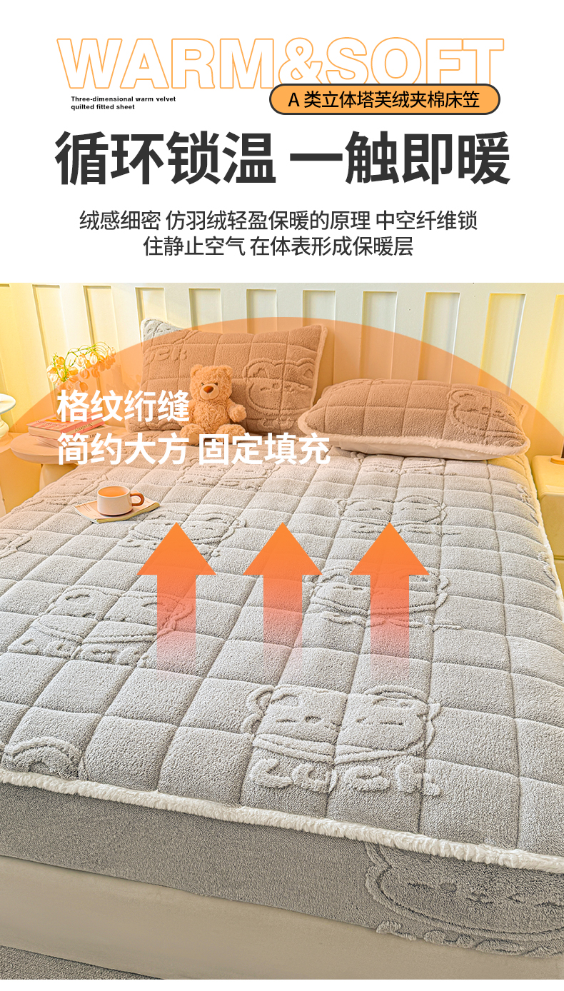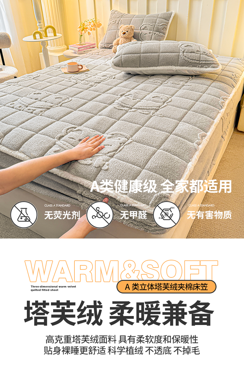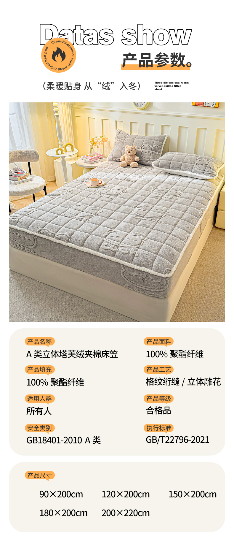 (总)予梦家纺 2025新款塔芙绒夹棉床笠单床笠,萌萌熊 苍蓝,萌萌熊 果绿,萌萌熊 卡其,萌萌熊 星灰,星梦格 苍蓝,星梦格 果绿,星梦格 卡其,星梦格 星灰