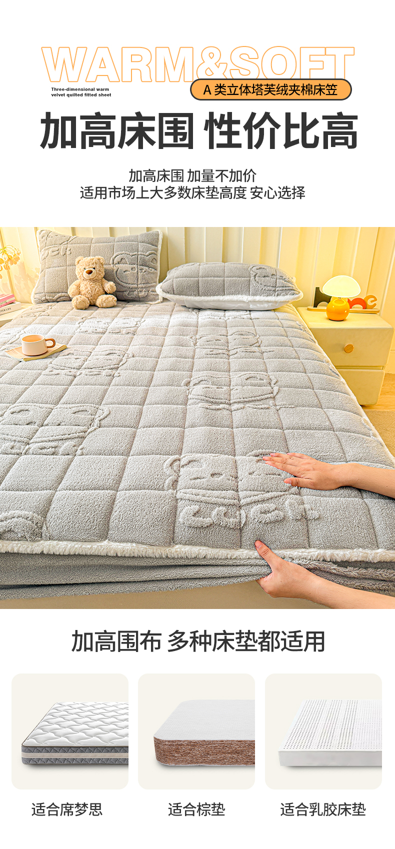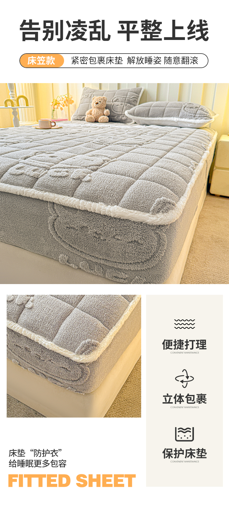 (总)予梦家纺 2025秋冬新款牛奶绒加厚刺绣夹棉单床笠床垫子保护套秋冬保暖床罩子三件套,丽桑卓-黑煤球粉,丽桑卓-黑煤球灰,丽桑卓-黑煤球蓝,丽桑卓-黑煤球绿,丽桑卓-小白熊粉,丽桑卓-小白熊灰,丽桑卓-小白熊蓝,丽桑卓-小白熊绿