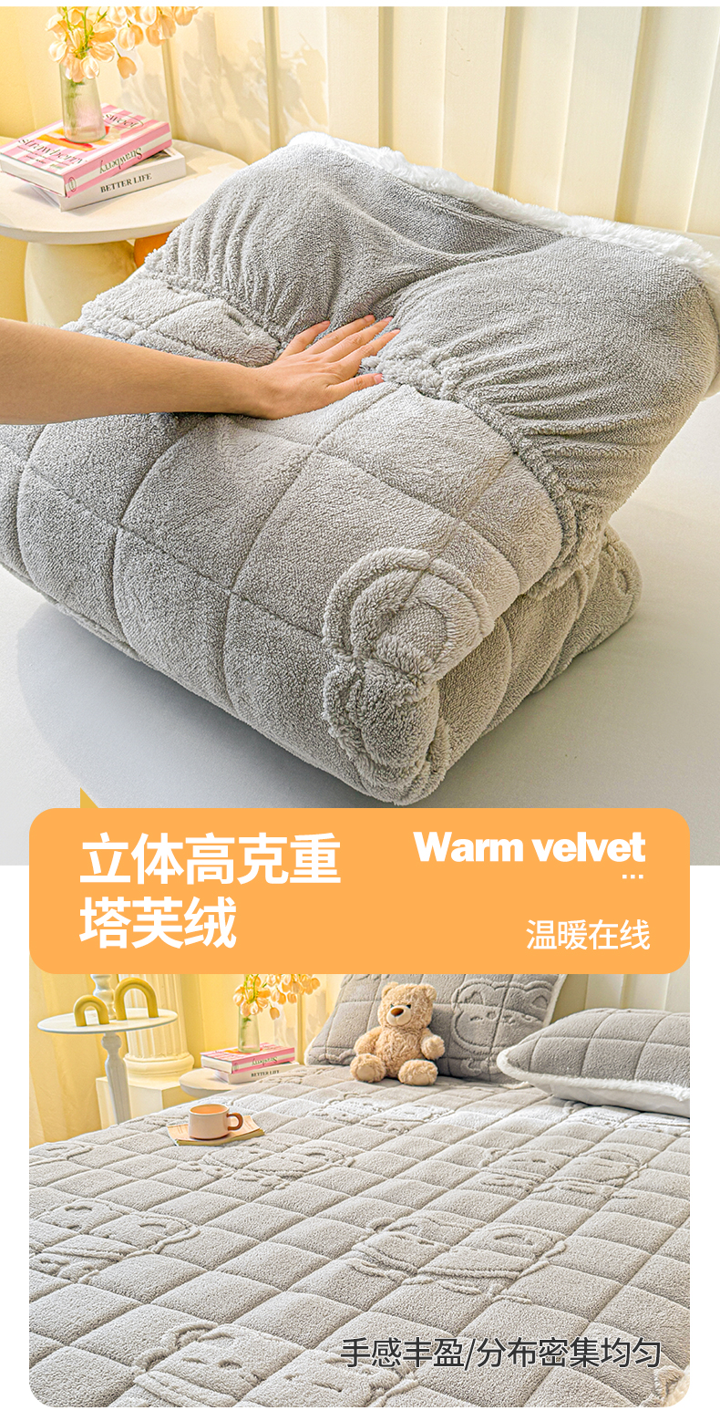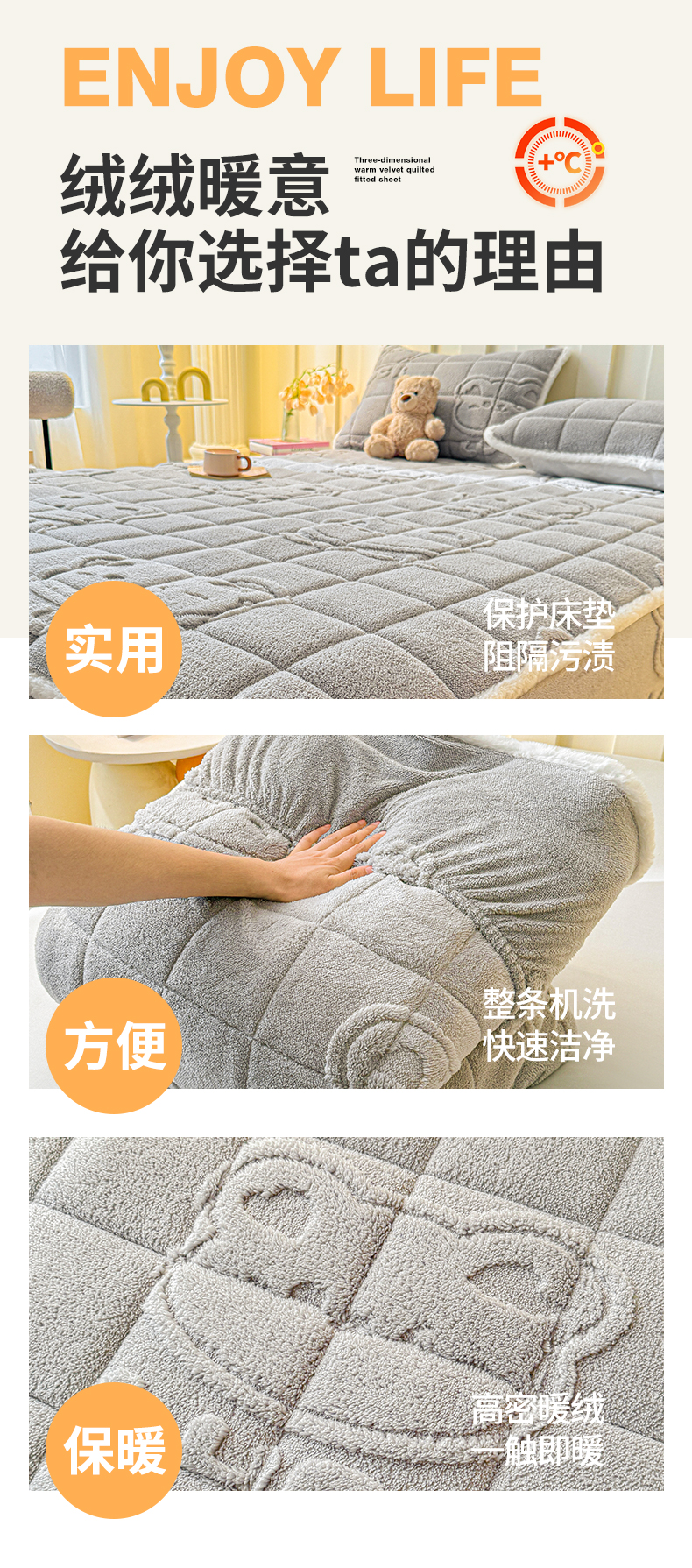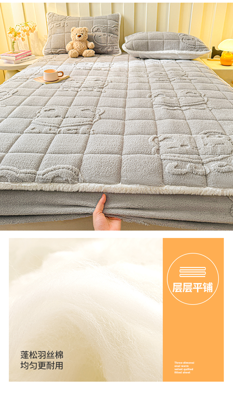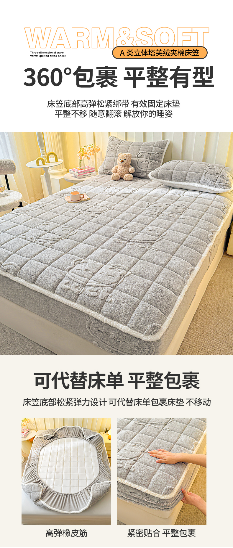 予梦家纺 2025新款塔芙绒夹棉床笠单床笠 萌萌熊 星灰