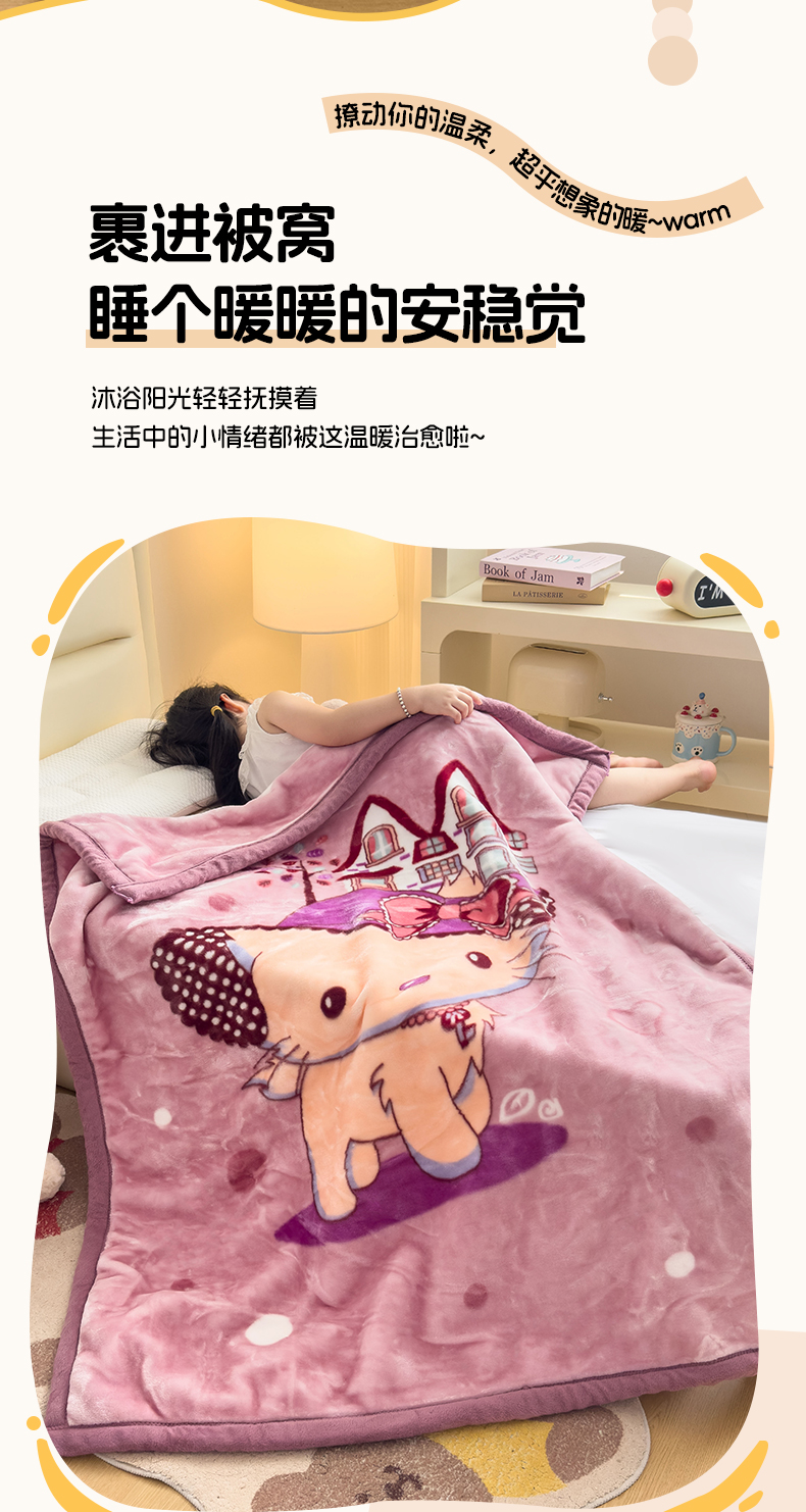 爱彼家纺 2025冬季新款拉舍尔童毯毛毯毯子-系列二 拉舍尔童毯-暖阳西子04卡琪