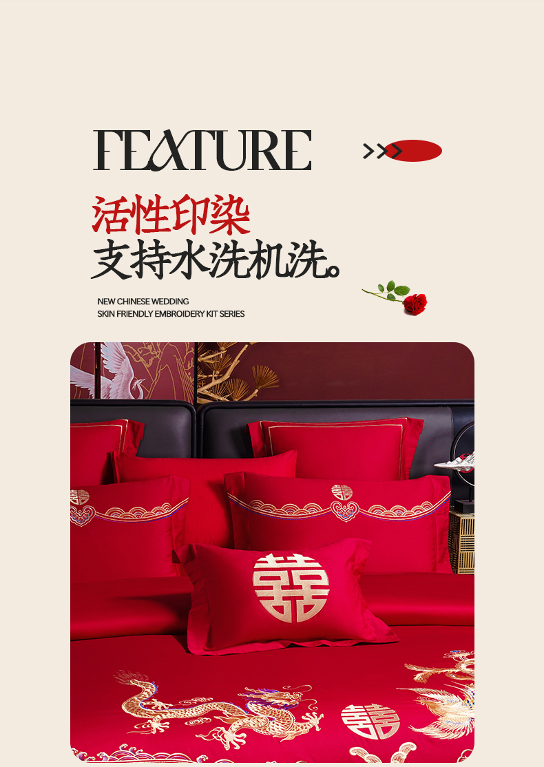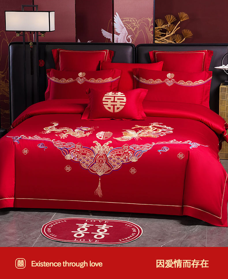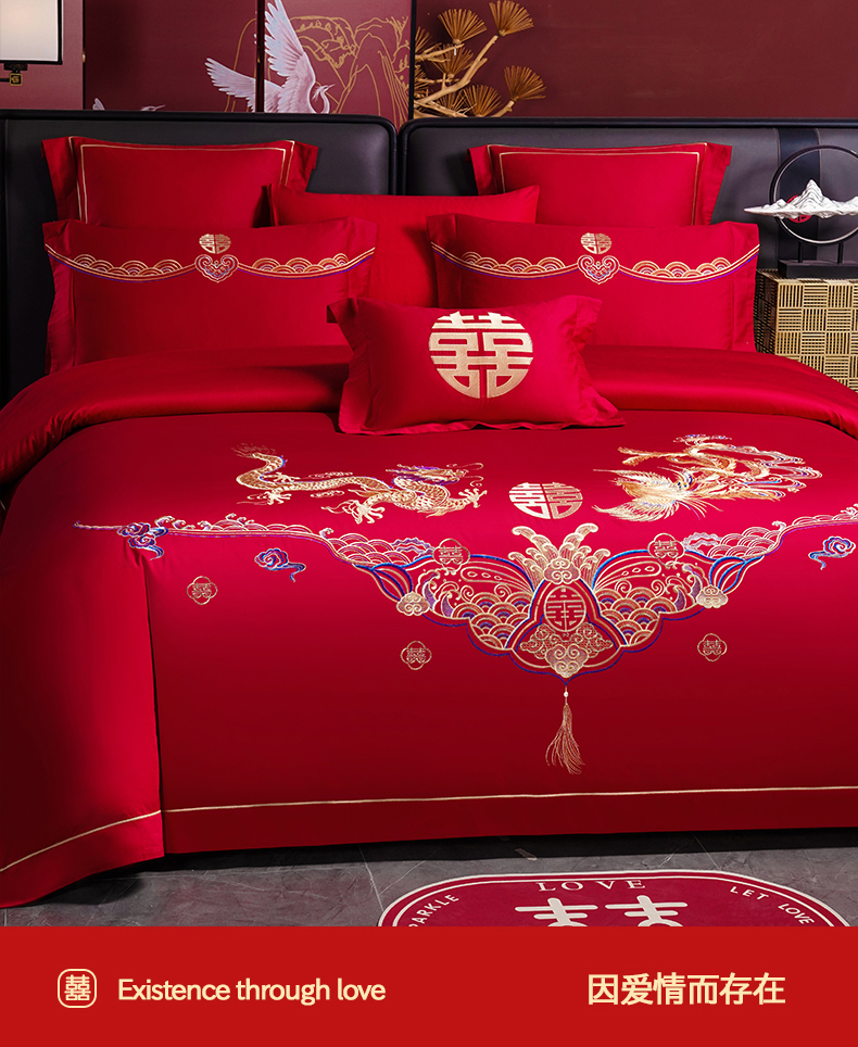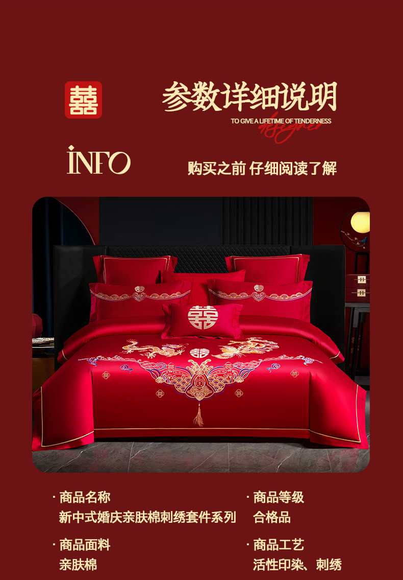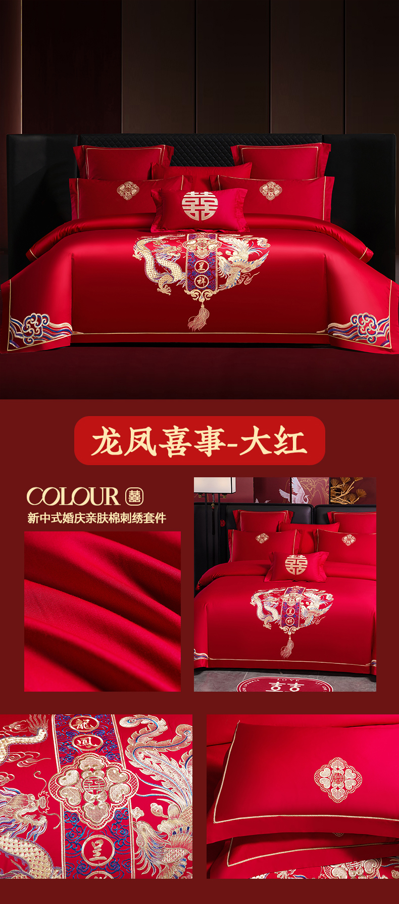 当前位置: 91家纺网 > 商品网购 > 床品套件 > 四件套 > 婚庆四件套 > 置顶家纺 2025新款新中式婚庆亲肤棉绣花四件套 金龙瑞凤-金大红