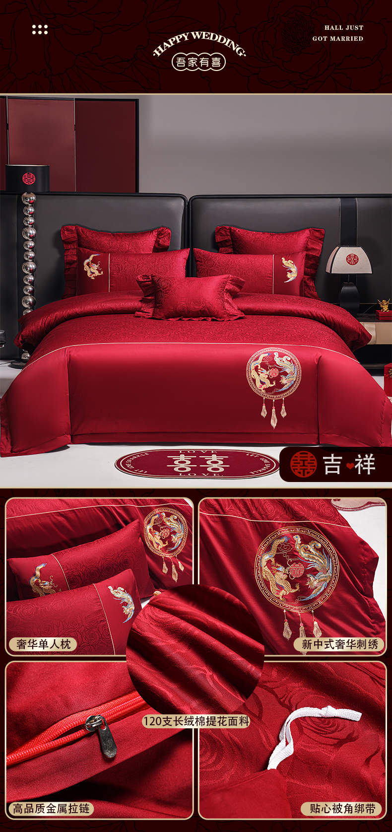 (总)芊囍纺 2025新款全棉刺绣婚庆四件套,囍多多,一生一世,九五之尊,龙凤百子,百子千禧,比翼双飞,乘龙跨凤,金龙金凤,龙姿凤采-红,龙姿凤采-金,红妆佳人,佳偶良缘,比翼双飞,皇家喜事,龙凤双喜,喜事连绵,至尊龙凤,千禧婚嫁,十里红妆,世纪之恋,喜上添花,喜事到家,新婚快乐,幸福约定红,幸福约定金,幸福喜嫁红,幸福喜嫁金,江山龙凤,金玉满堂,龙凤传情,龙凤佳人,龙凤同喜,美人龙凤,花开浪漫金