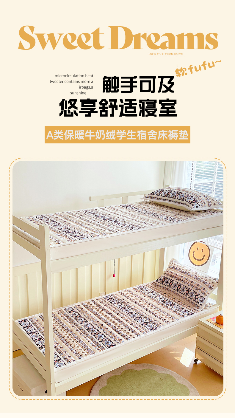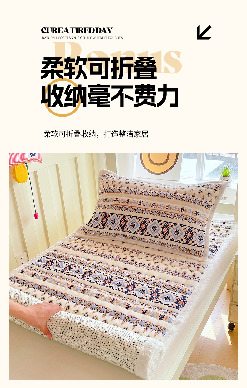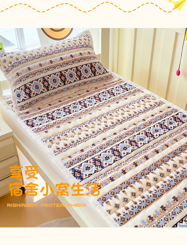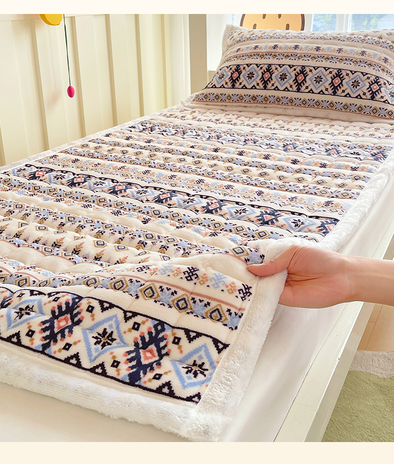 当前位置: 91家纺网 > 商品网购 > 床垫/床褥 > 金鑫汇家纺 2025新款加厚牛奶豆豆绒暖绒包边床褥垫 学生床:波西米亚