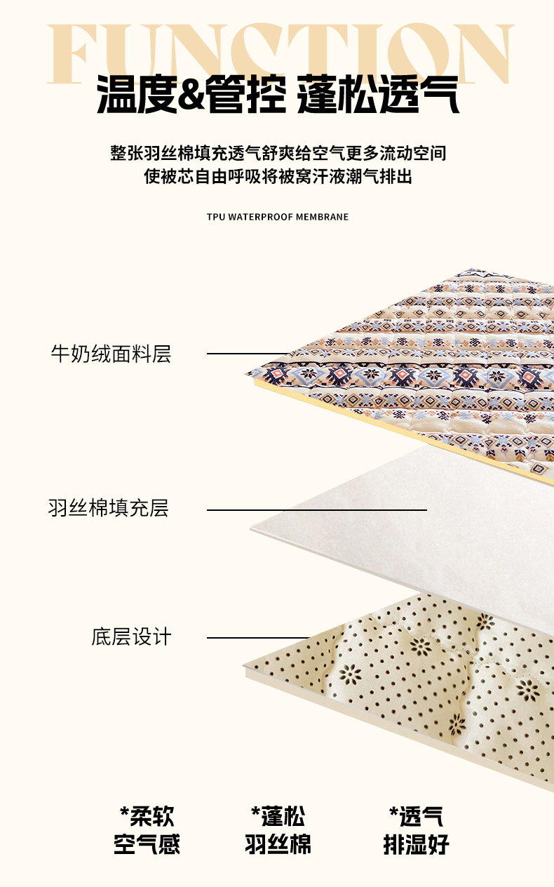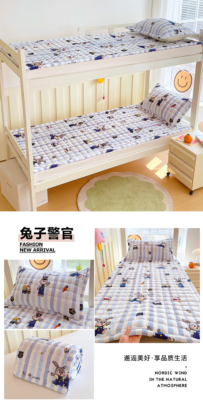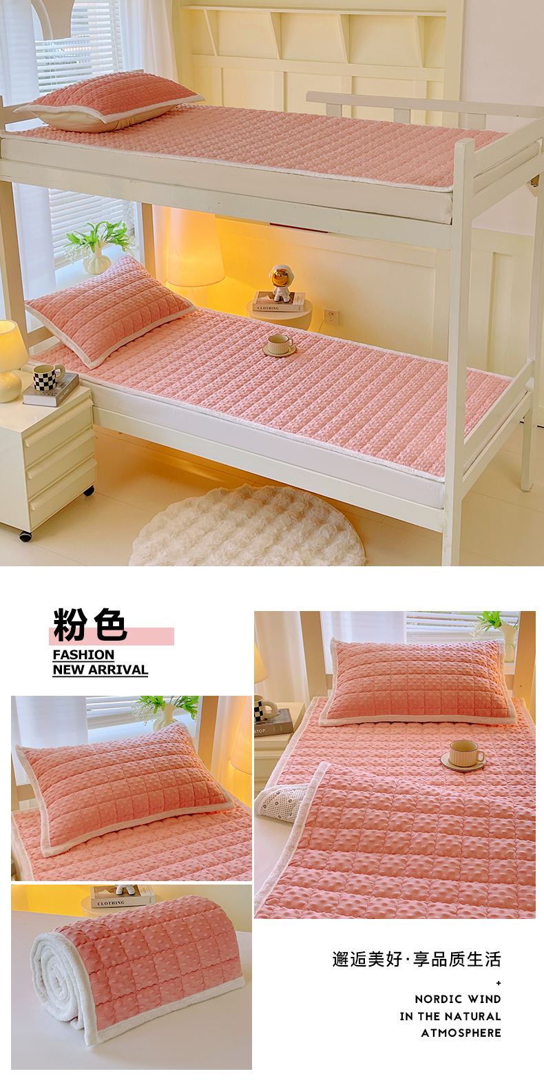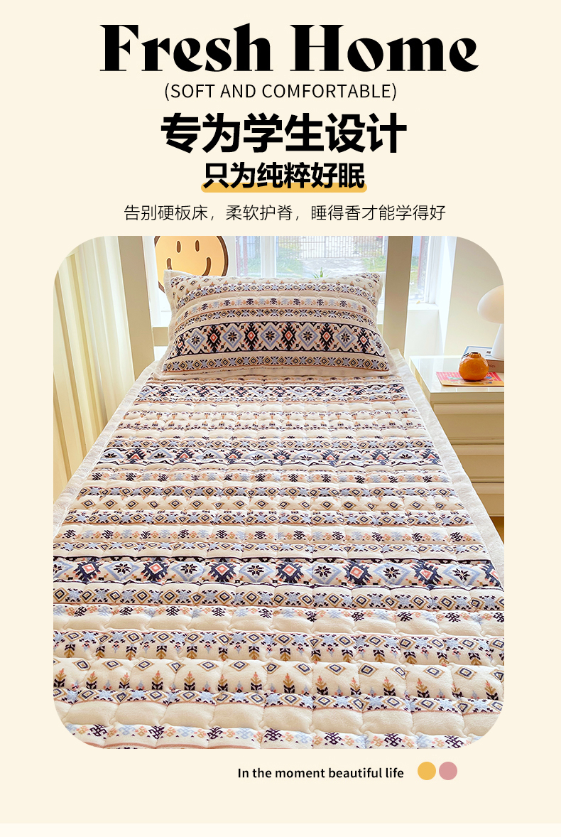 • 91家纺网 家纺一手货源 找家纺 金鑫汇家纺 2025新款加厚牛奶豆豆绒暖绒包边床褥垫 学生床:波西米亚