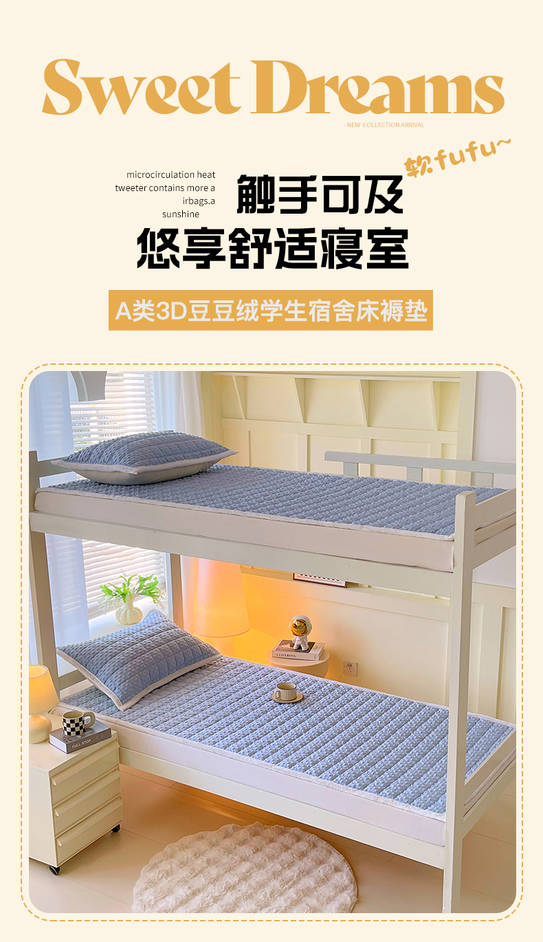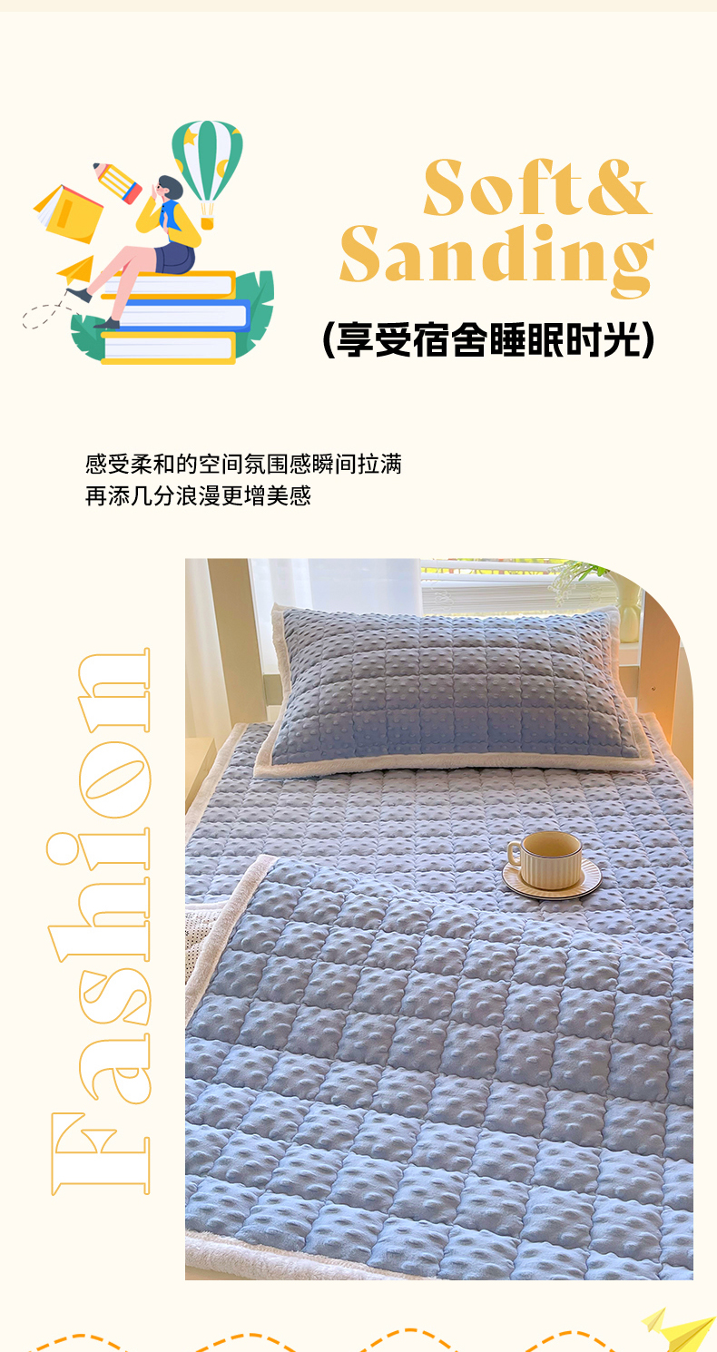 当前位置: 91家纺网 > 商品网购 > 床垫/床褥 > 金鑫汇家纺 2025新款加厚牛奶豆豆绒暖绒包边床褥垫 学生床:豆豆绒床褥垫:蓝色