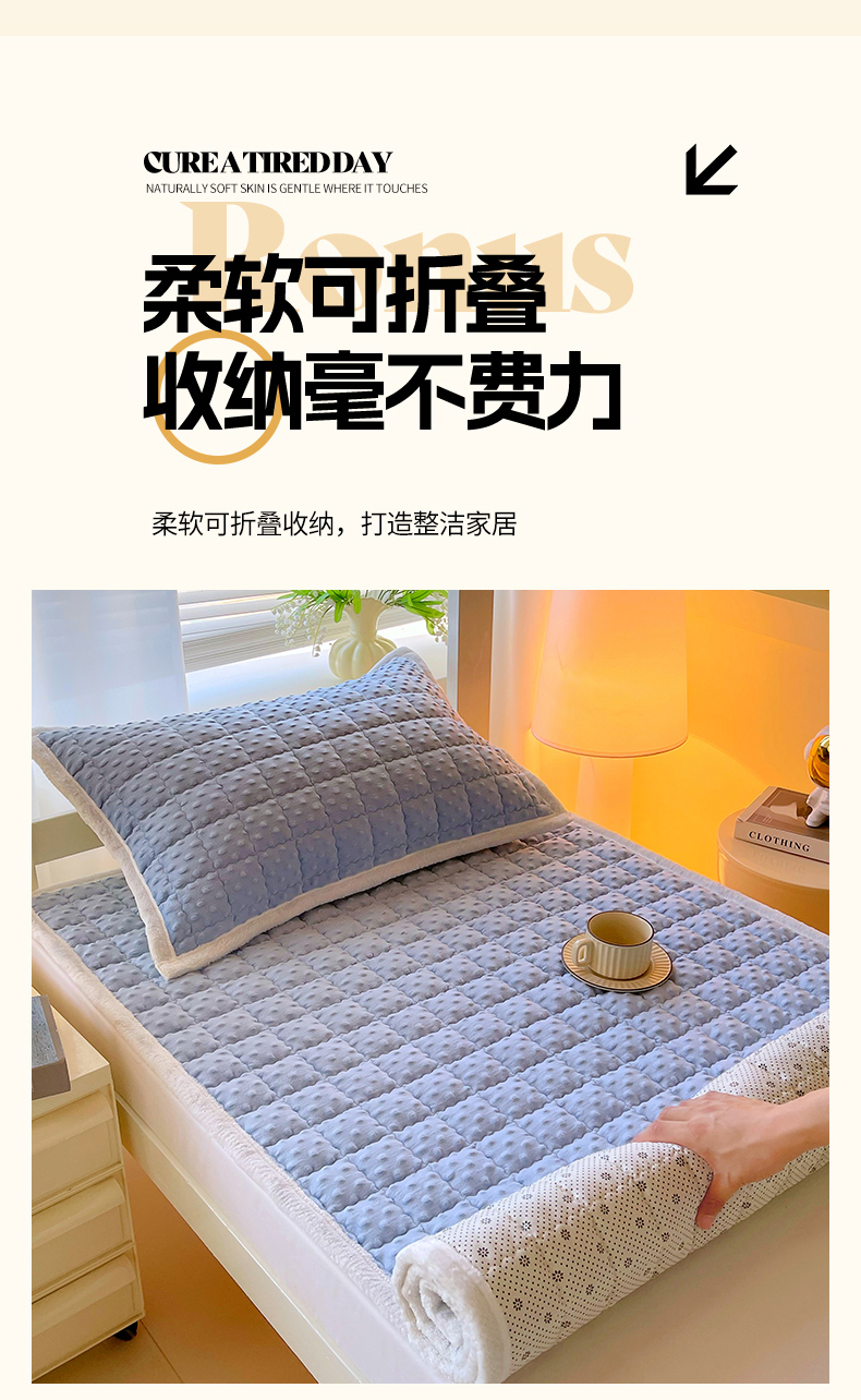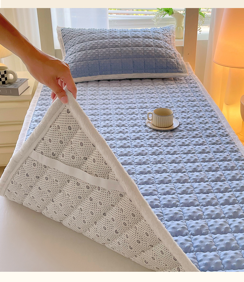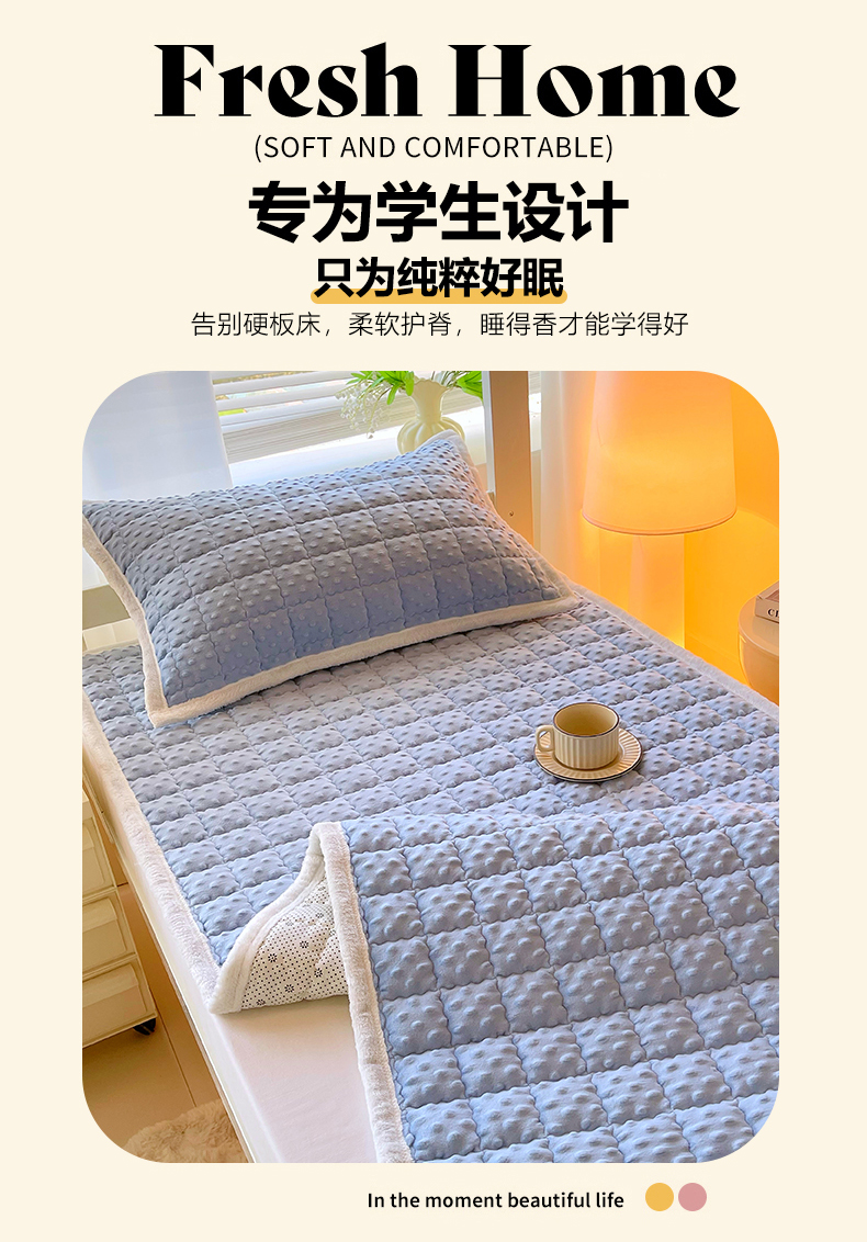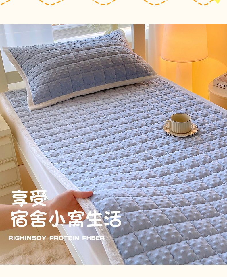 • 91家纺网 家纺一手货源 找家纺 金鑫汇家纺 2025新款加厚牛奶豆豆绒暖绒包边床褥垫 学生床:豆豆绒床褥垫:蓝色