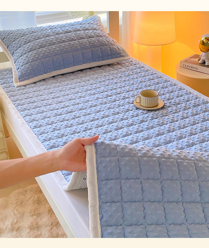 金鑫汇家纺 2025新款加厚牛奶豆豆绒暖绒包边床褥垫 学生床:豆豆绒床褥垫:蓝色