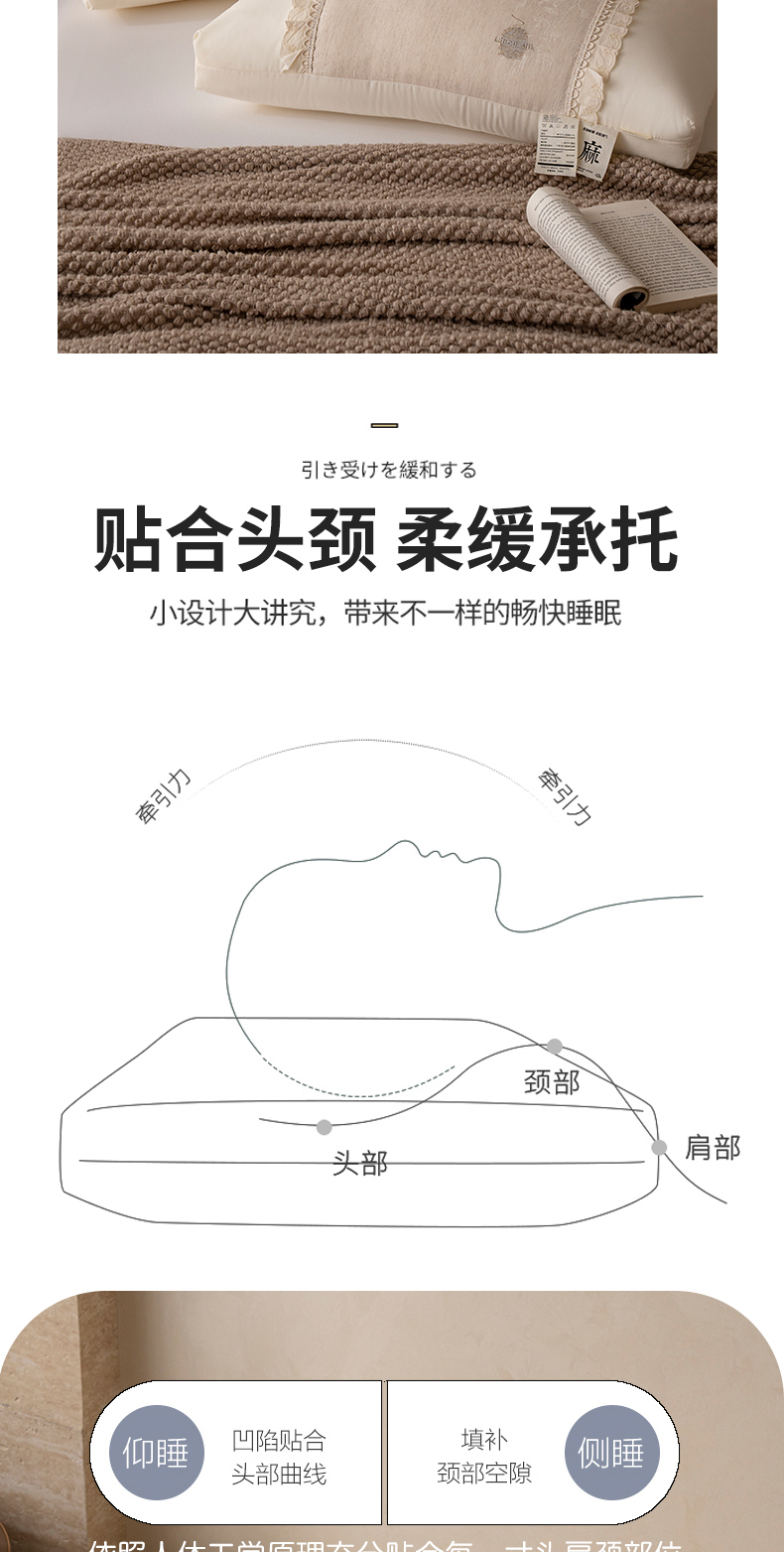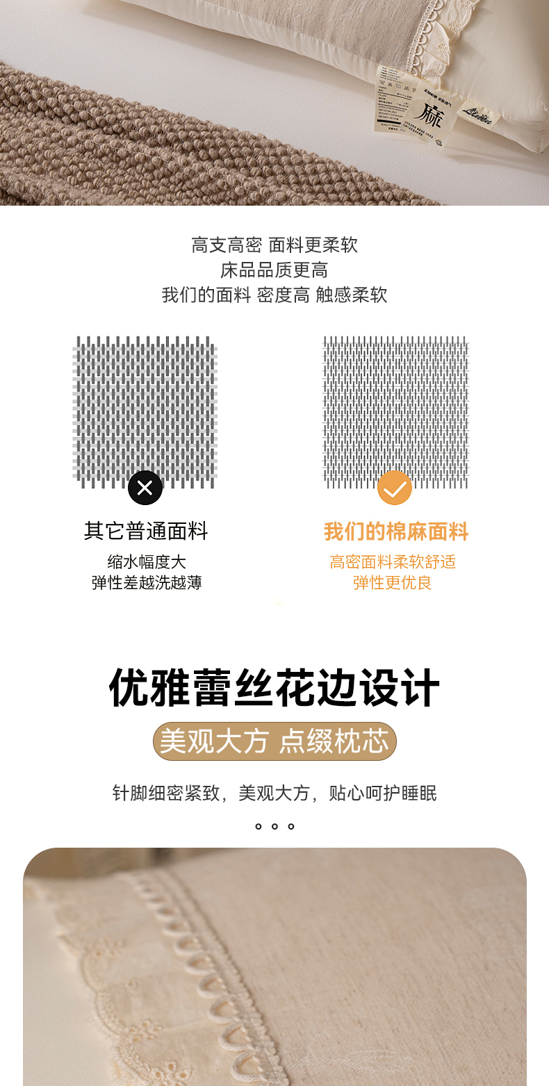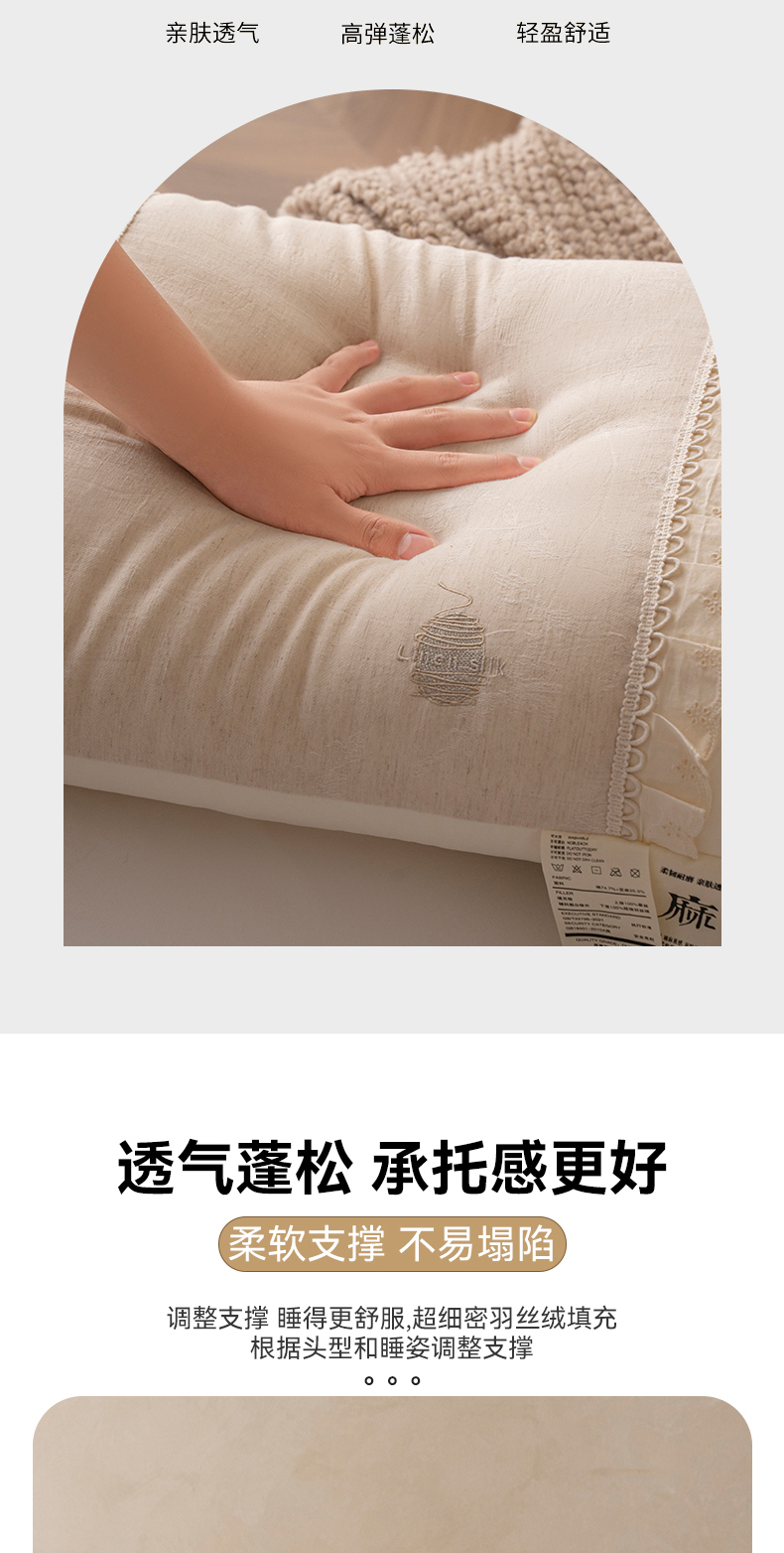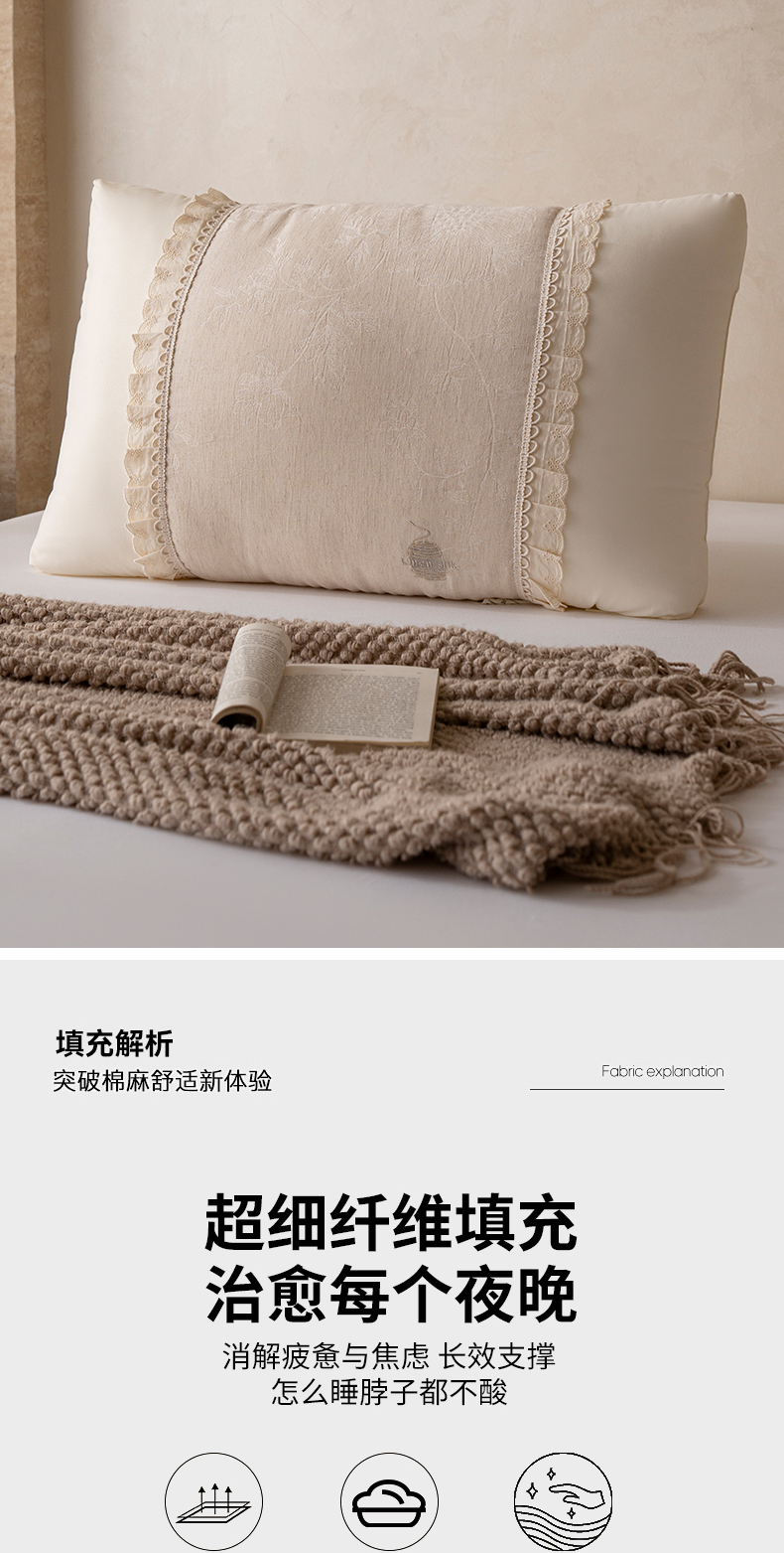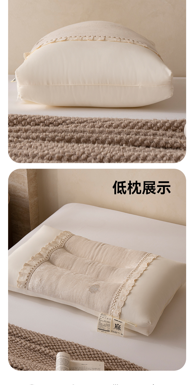 (总)昕科 2025新款蕾丝花边棉麻定型低枕枕头枕芯,蕾丝花边棉麻定型低枕