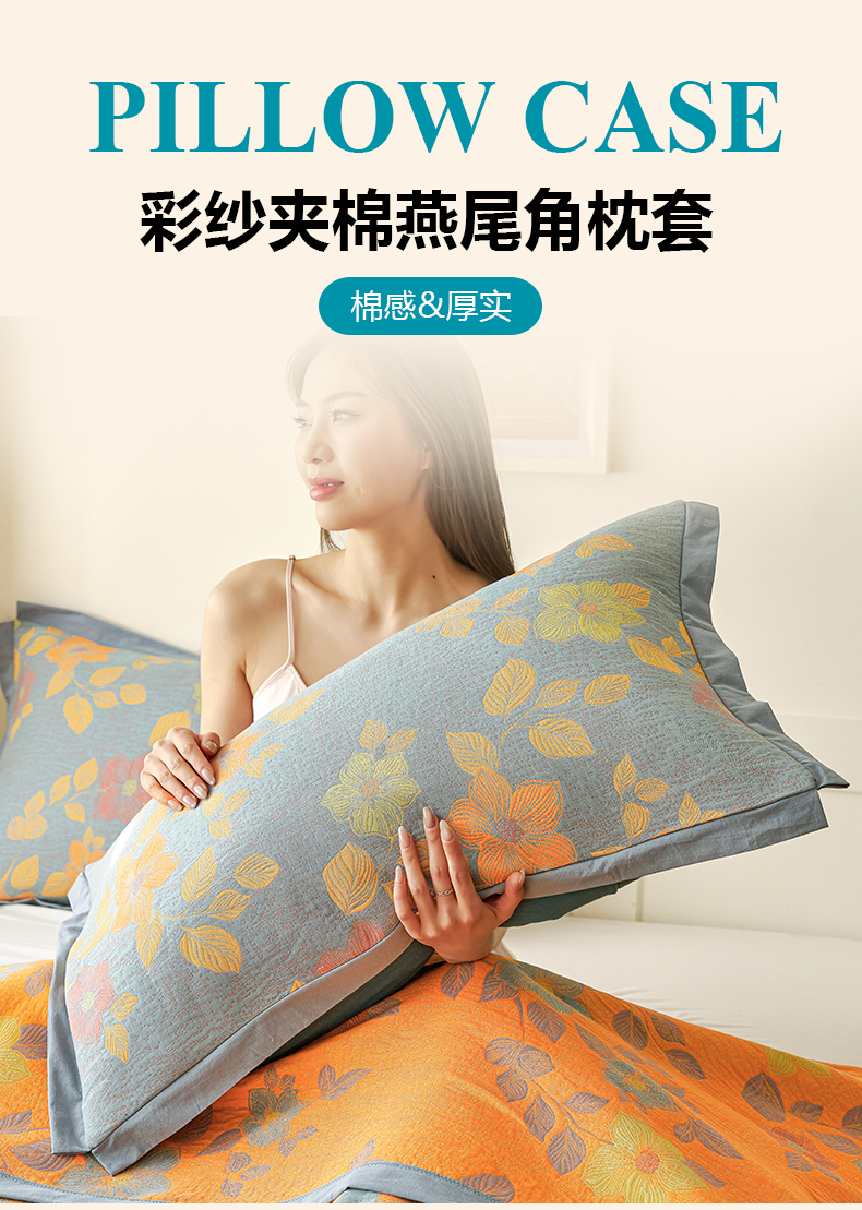 商品名称:棠薇家纺 2025新款全棉彩纱枕套燕尾角枕套夹棉双层纱48*74cm枕头套单只装一对装 铃兰花语