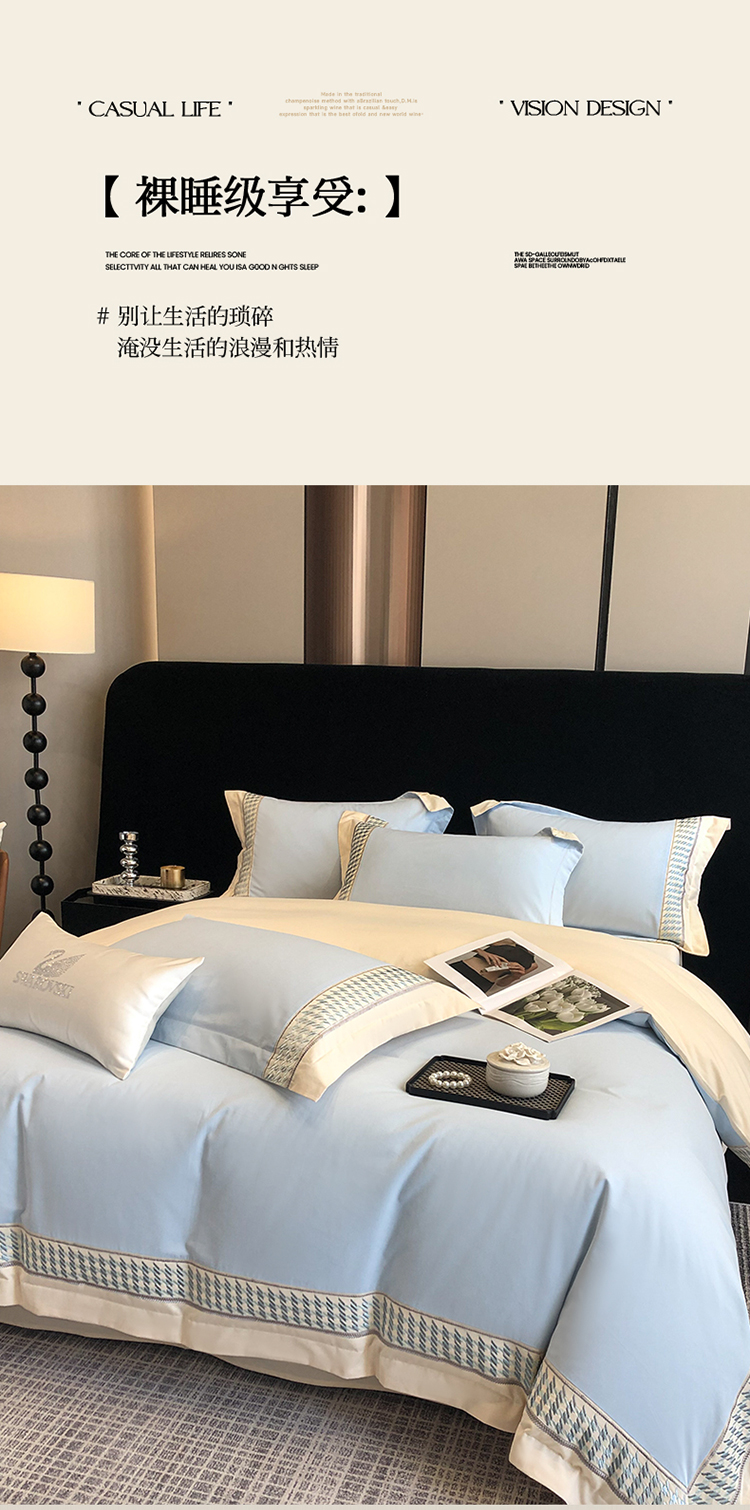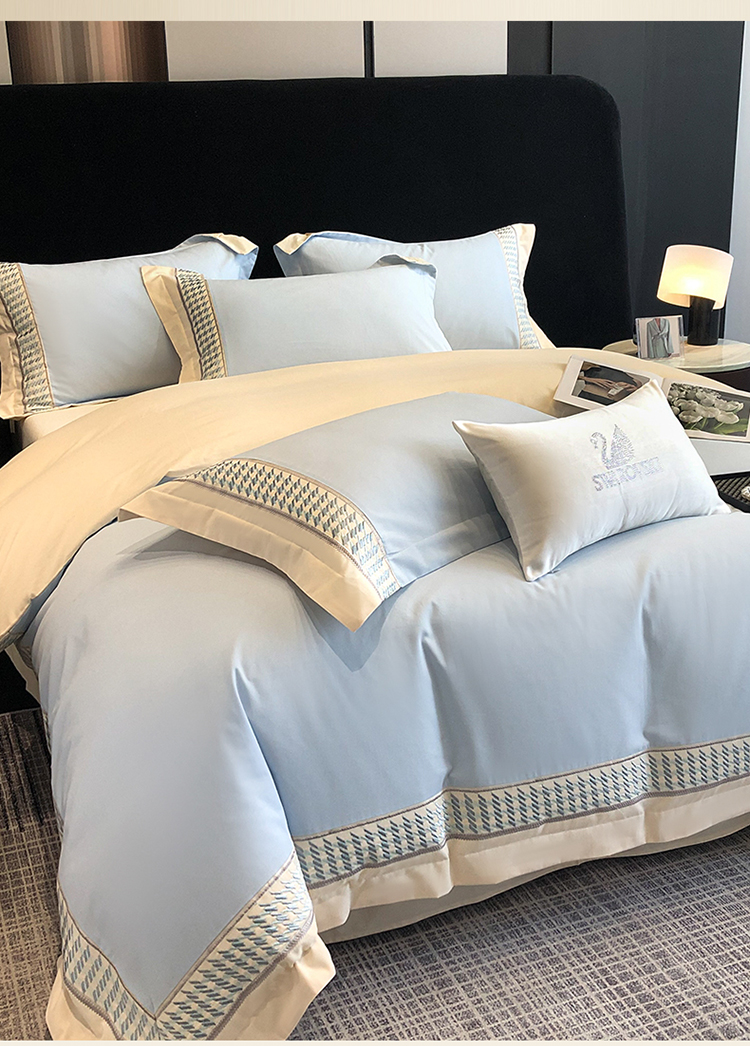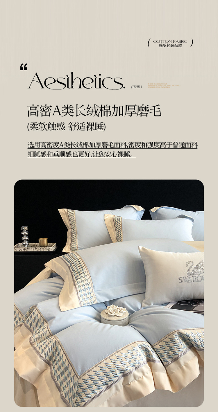 当前位置: 91家纺网 > 商品网购 > 床品套件 > 四件套 > 贡缎全棉四件套 > (可开发票)高档礼盒装超柔超细旦50S长绒棉磨毛刺绣四件套全棉100%纯棉秋冬加厚床品 祖玛蓝-千鸟格-A类超细旦超柔长绒棉