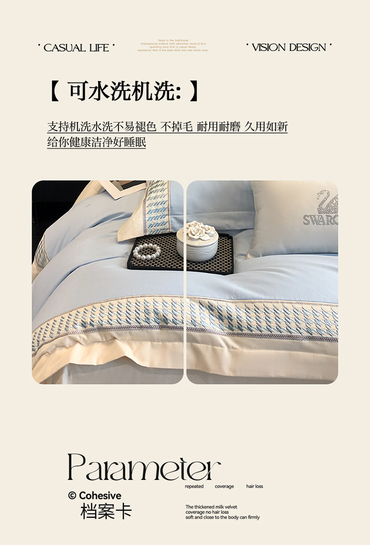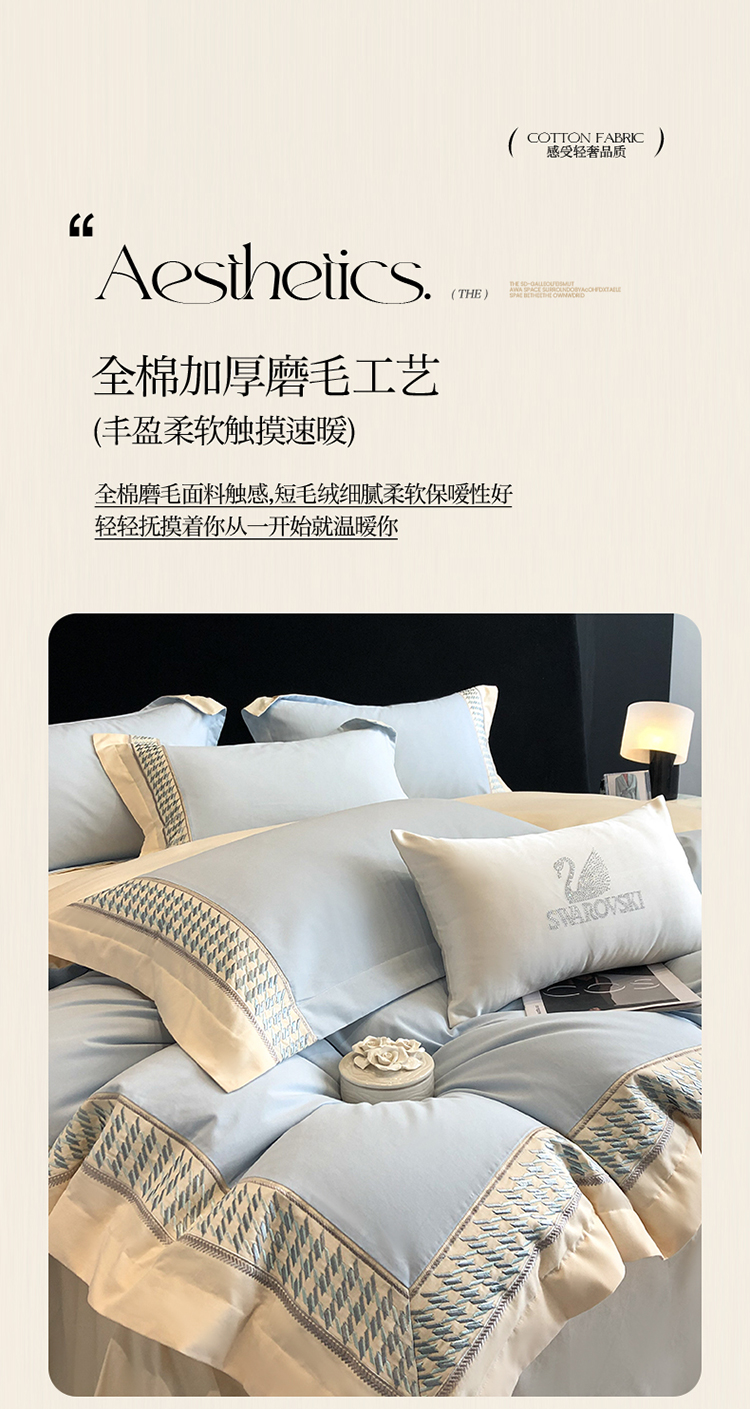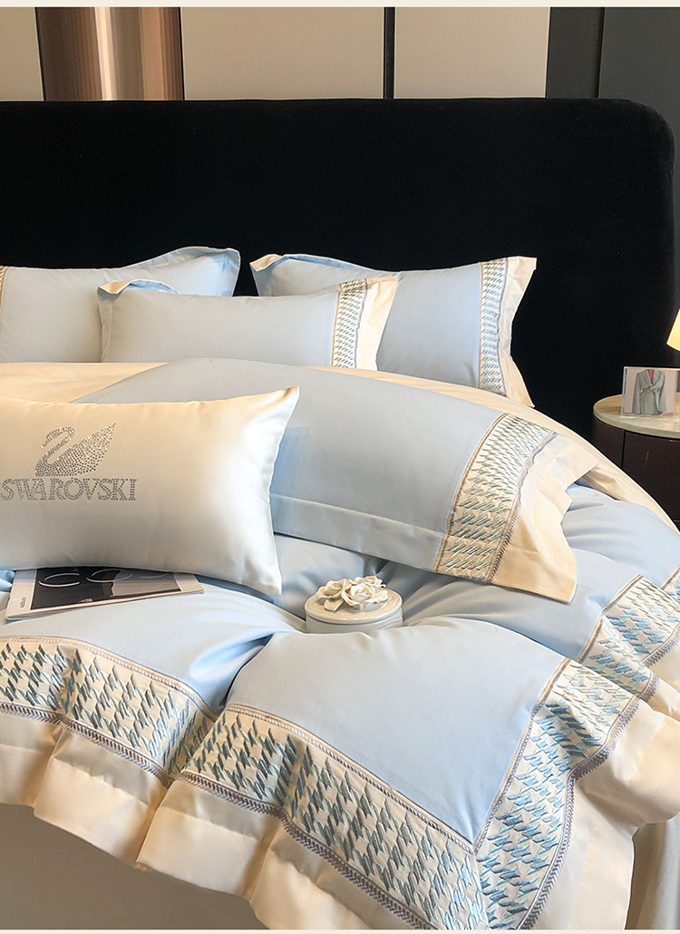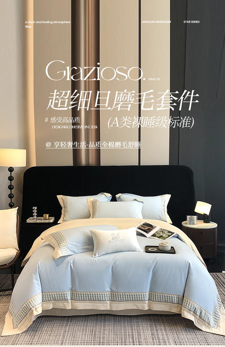 当前位置: 91家纺网 > 商品网购 > 床品套件 > 四件套 > 贡缎全棉四件套 > (可开发票)高档礼盒装超柔超细旦50S长绒棉磨毛刺绣四件套全棉100%纯棉秋冬加厚床品 祖玛蓝-千鸟格-A类超细旦超柔长绒棉