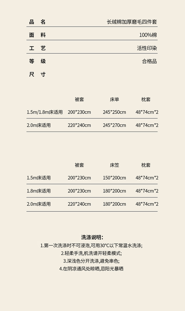 1.8m床笠款四件套200*230 | ¥260.00 |