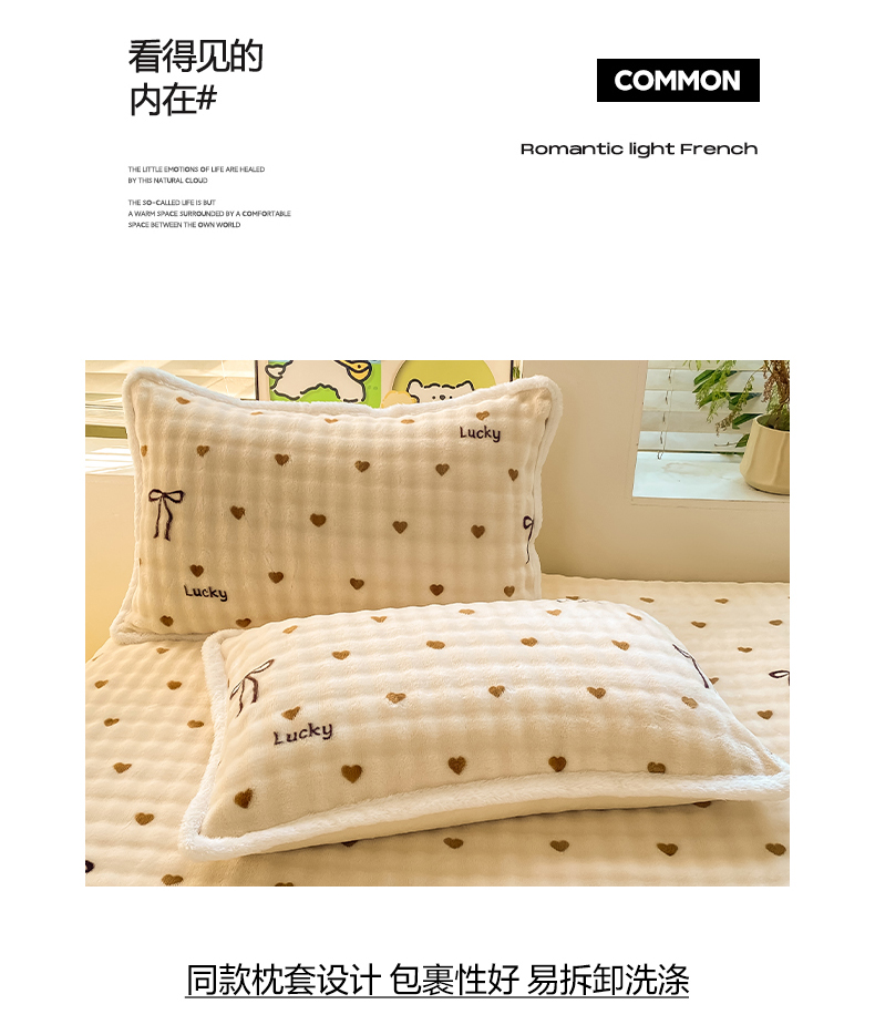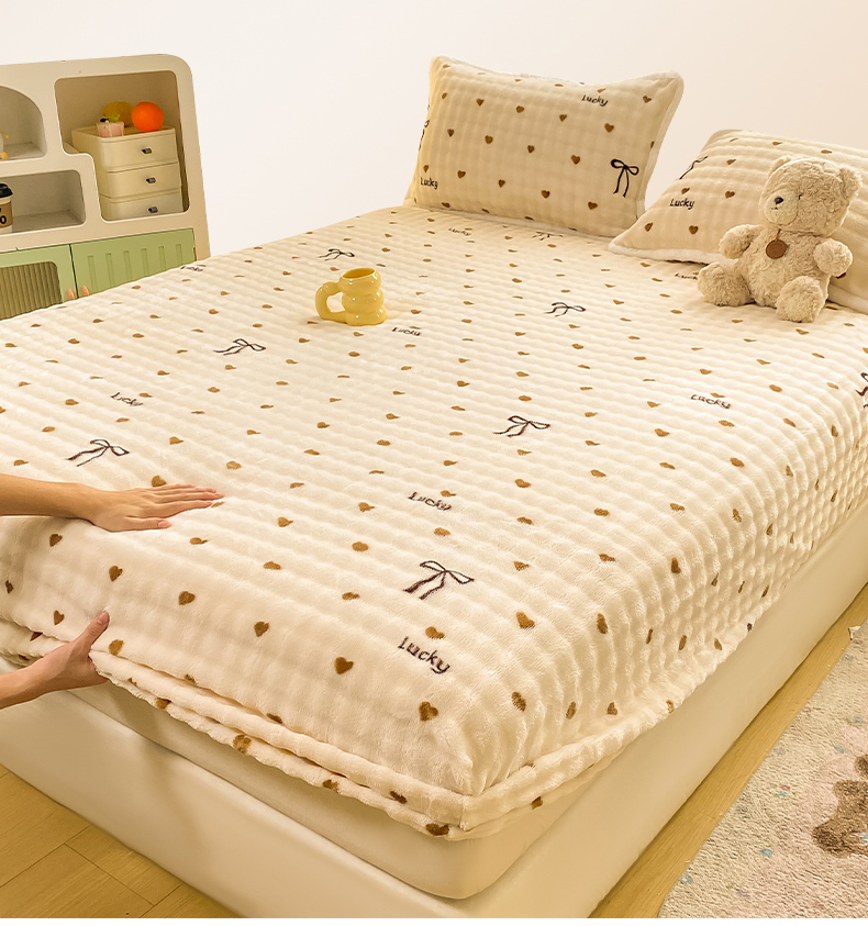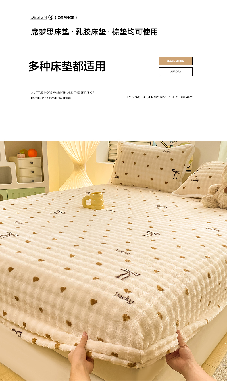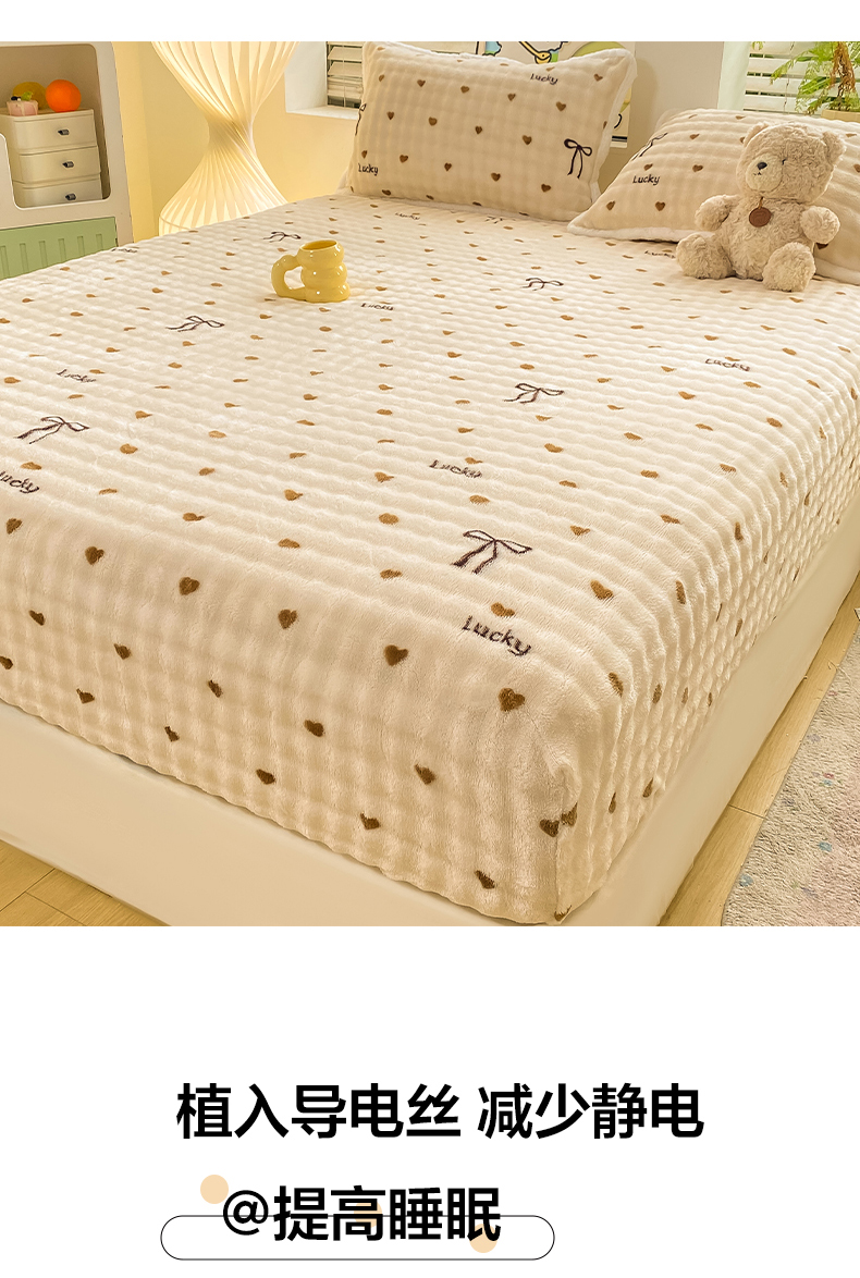• 91家纺网 家纺一手货源 找家纺 眠势力 2025新款暖绒泡泡床笠单件冬季保暖床罩牛奶绒床垫保护套 爱心咖【暖绒泡泡床笠】