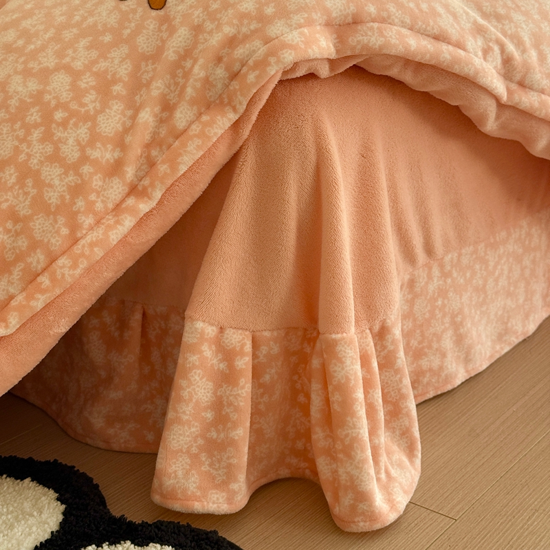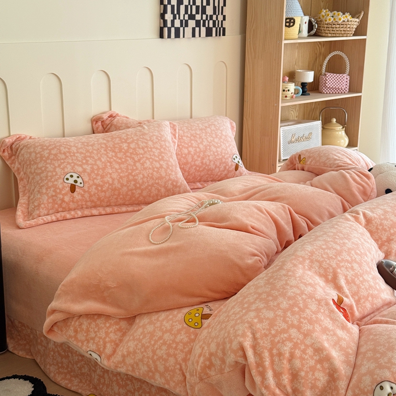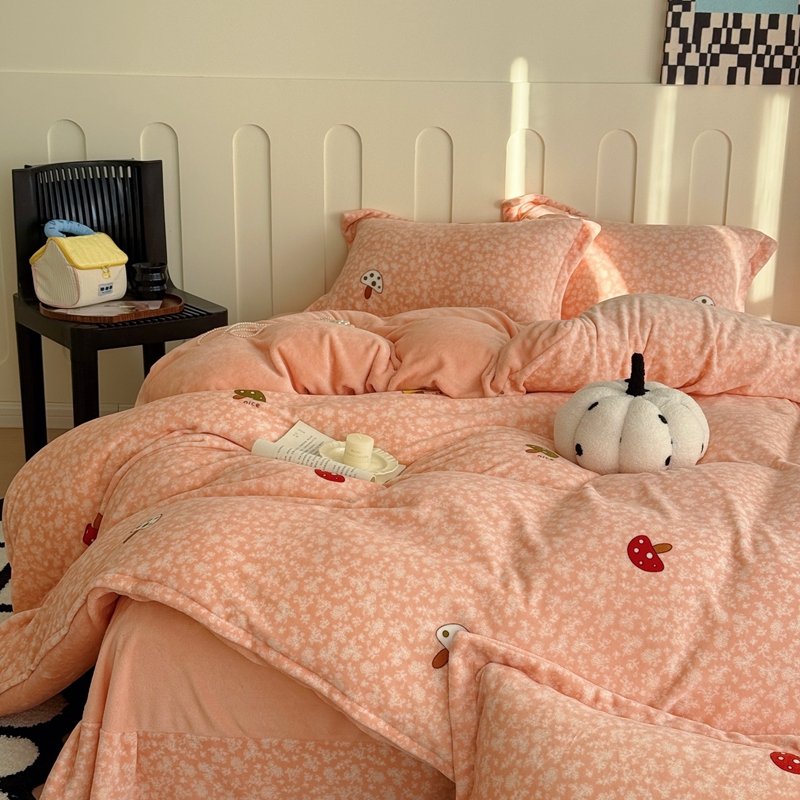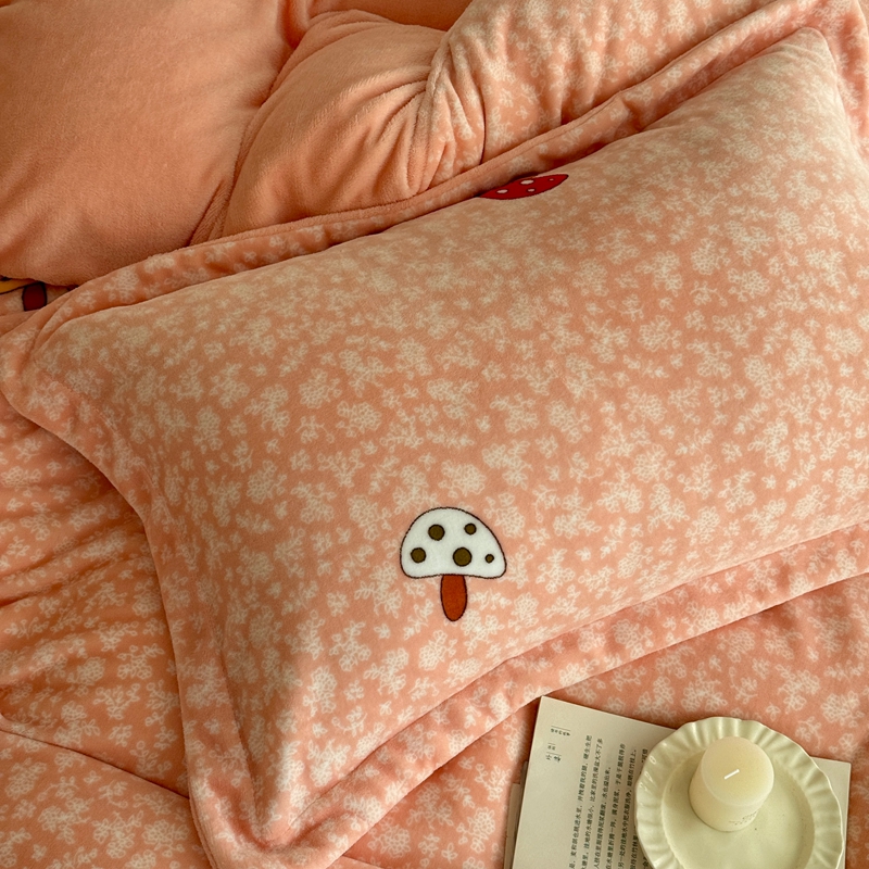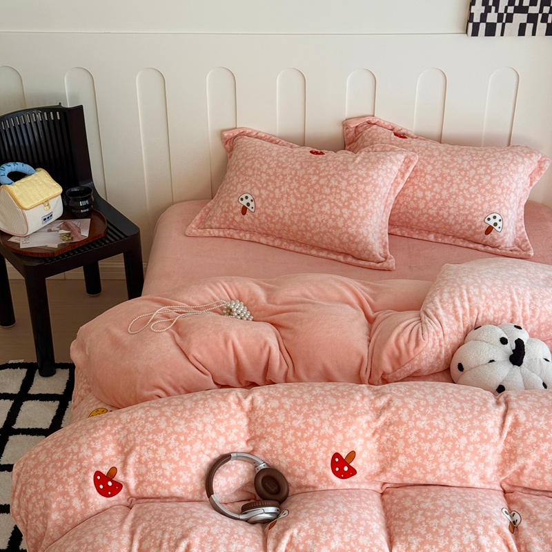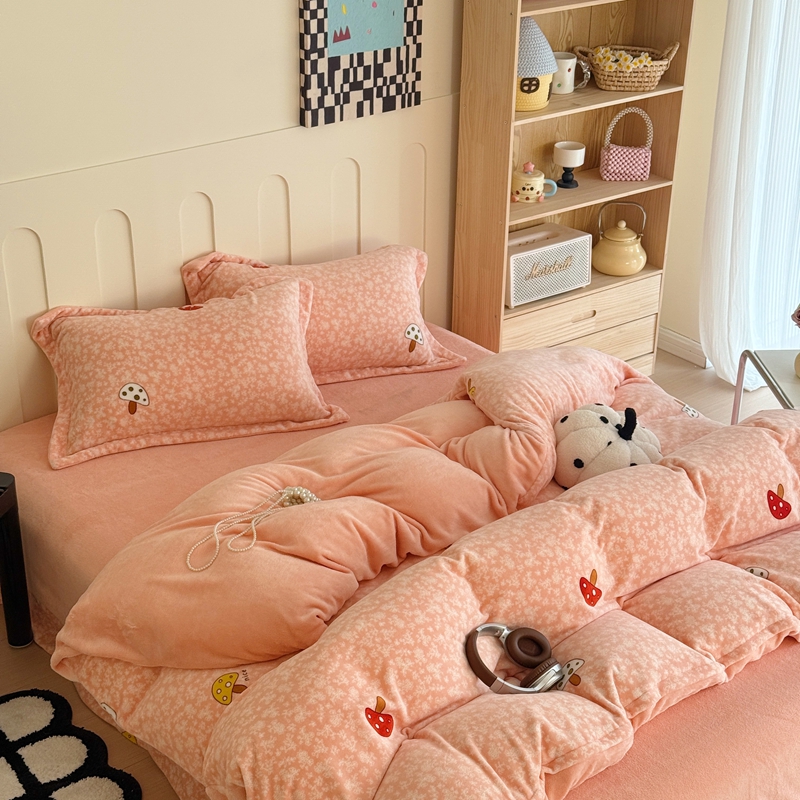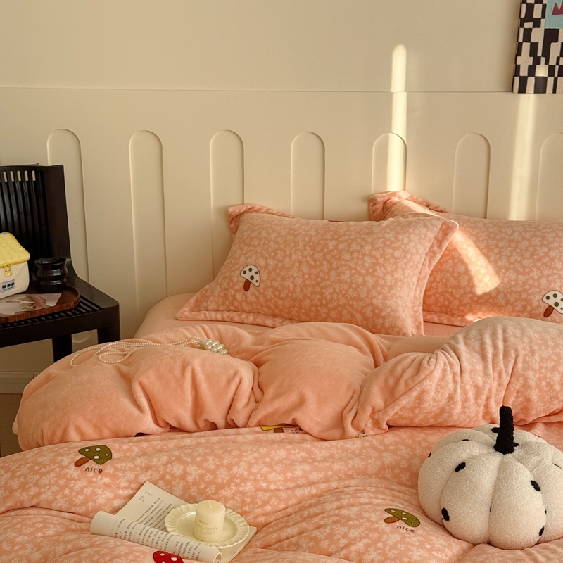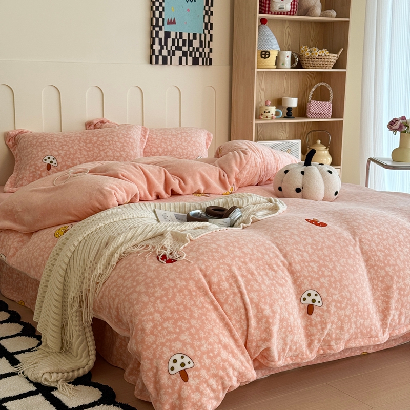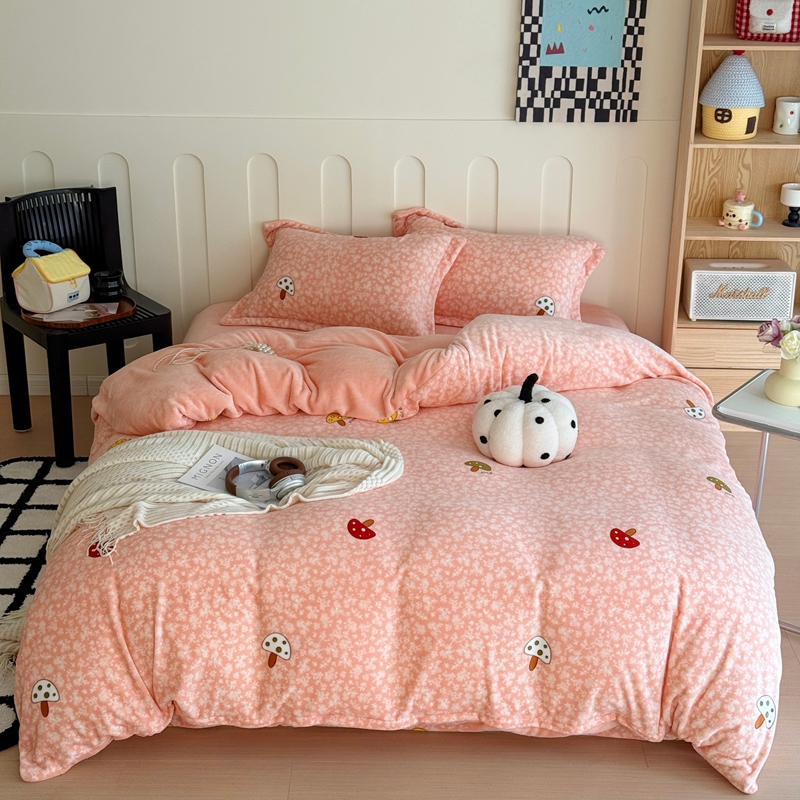 于果 2025新款牛奶绒印花四件套 蘑菇粉