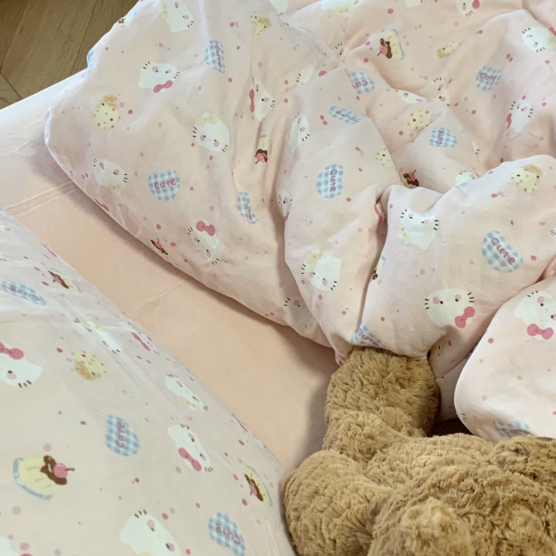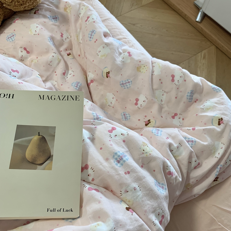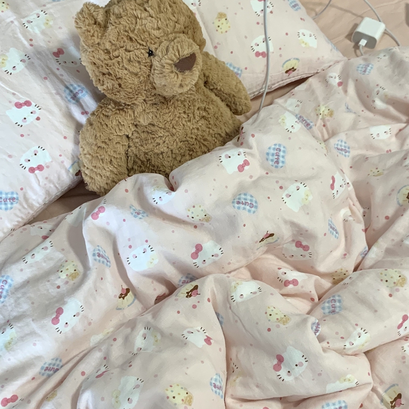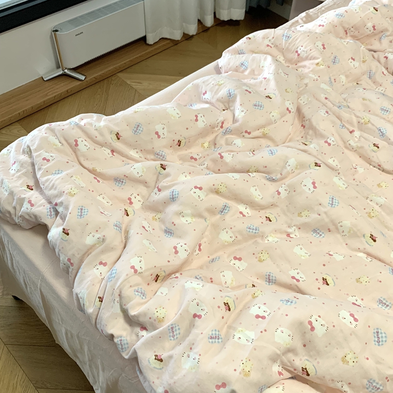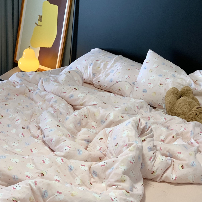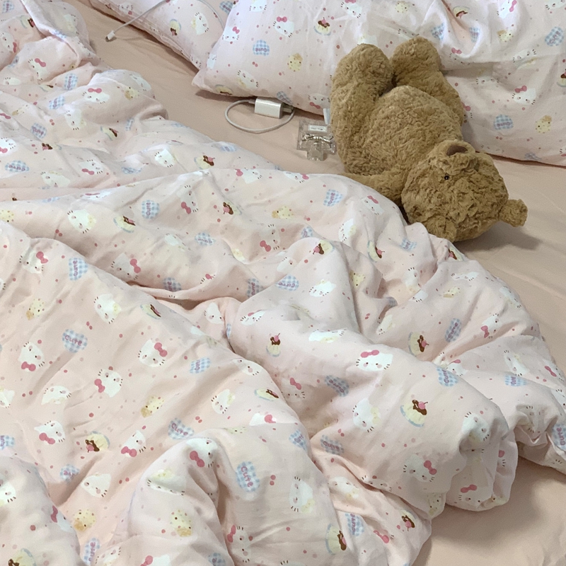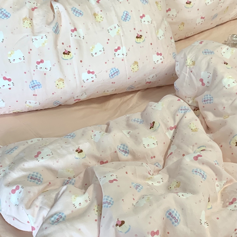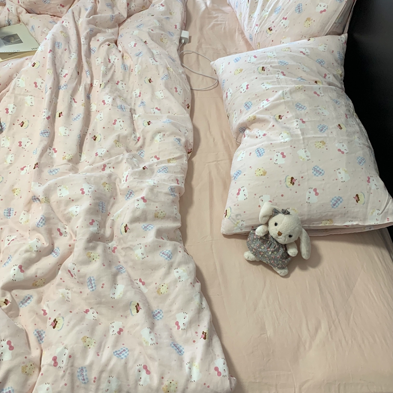 商品名称:源启生活 2025新款A类全棉双层纱四件套 粉粉猫