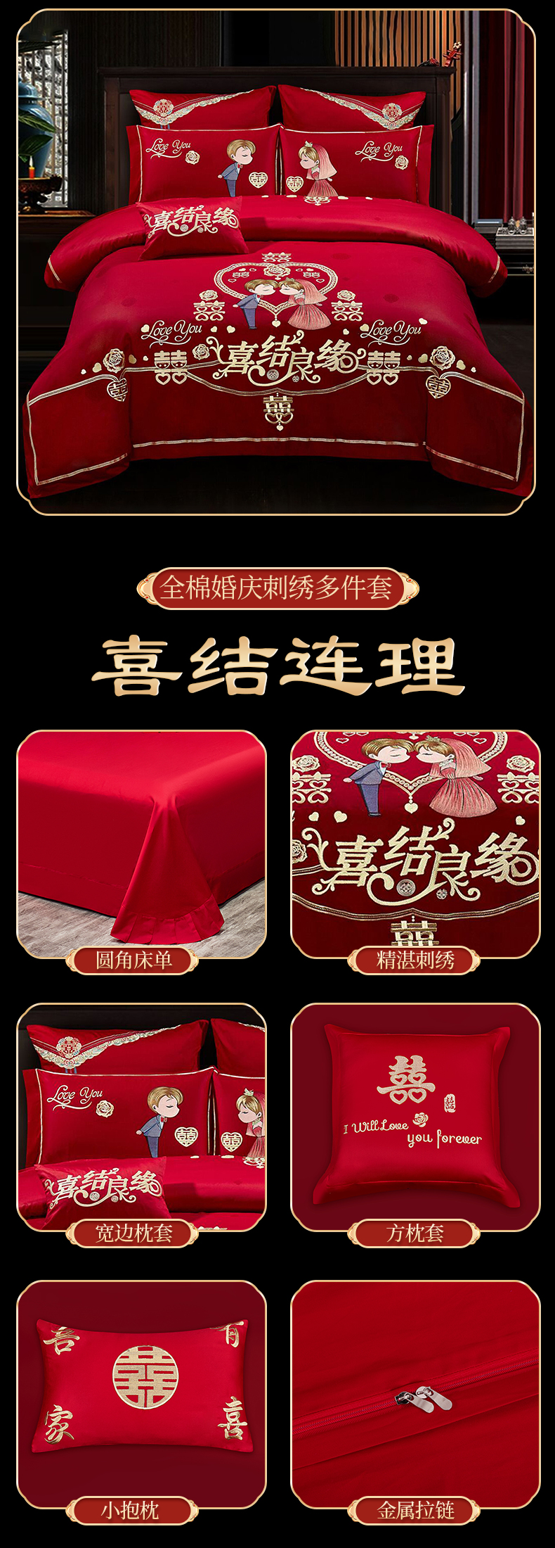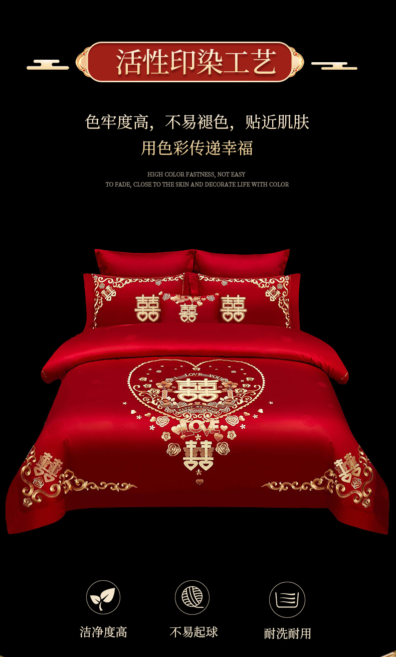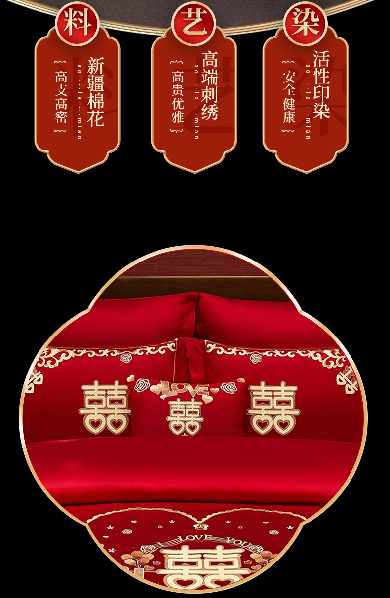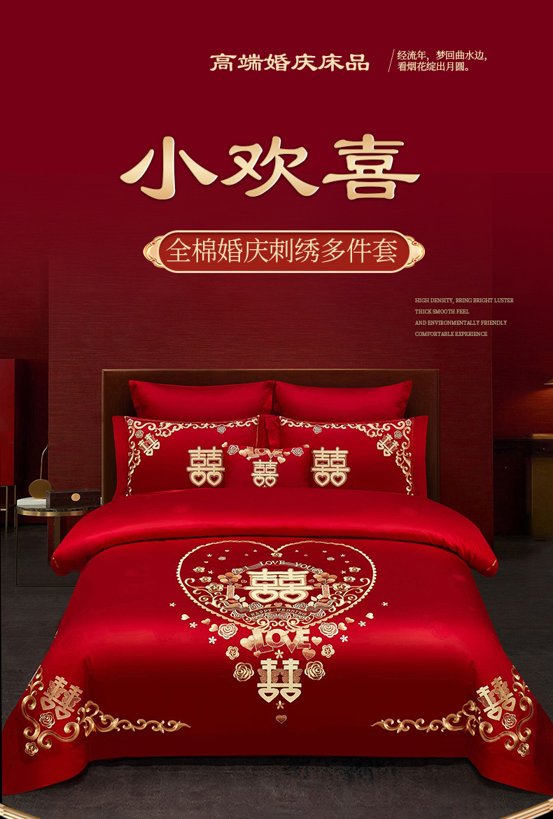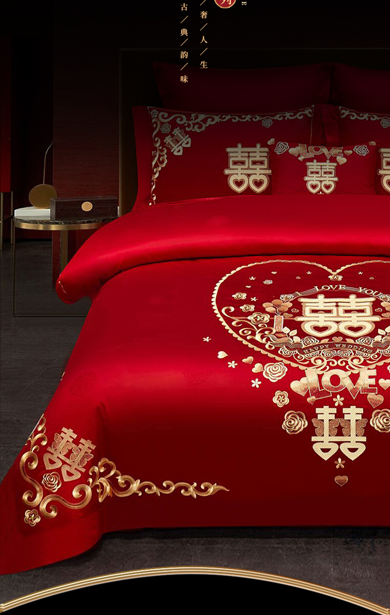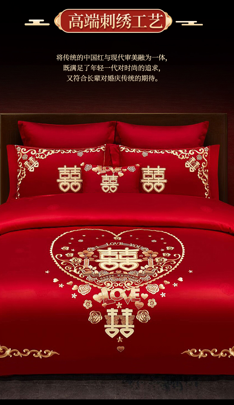 当前位置: 91家纺网 > 商品网购 > 床品套件 > 四件套 > 婚庆四件套 > 浩情国际婚庆供货中心 2026新款100%全棉长绒棉纯棉婚庆四件套结婚刺绣六件套多件套长期供货 小欢喜