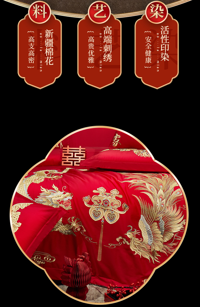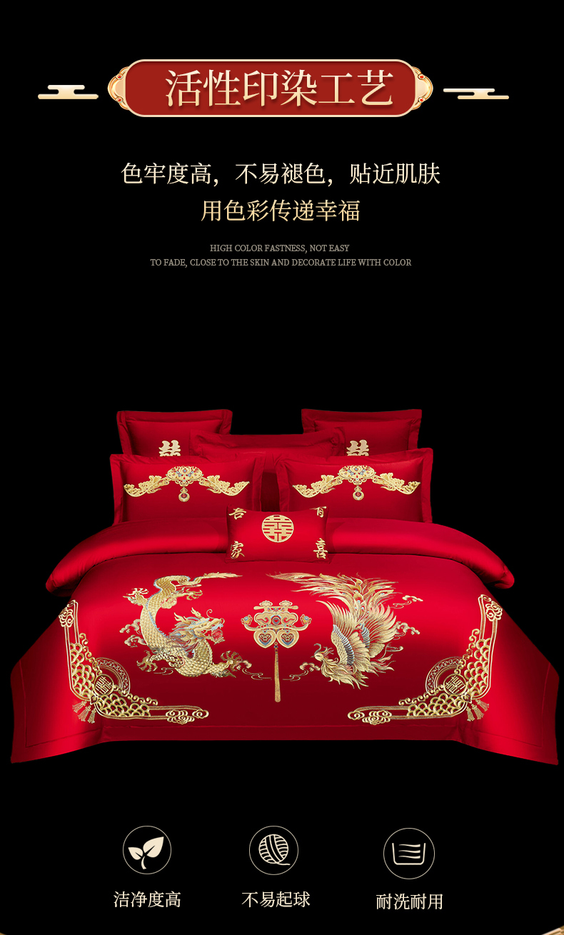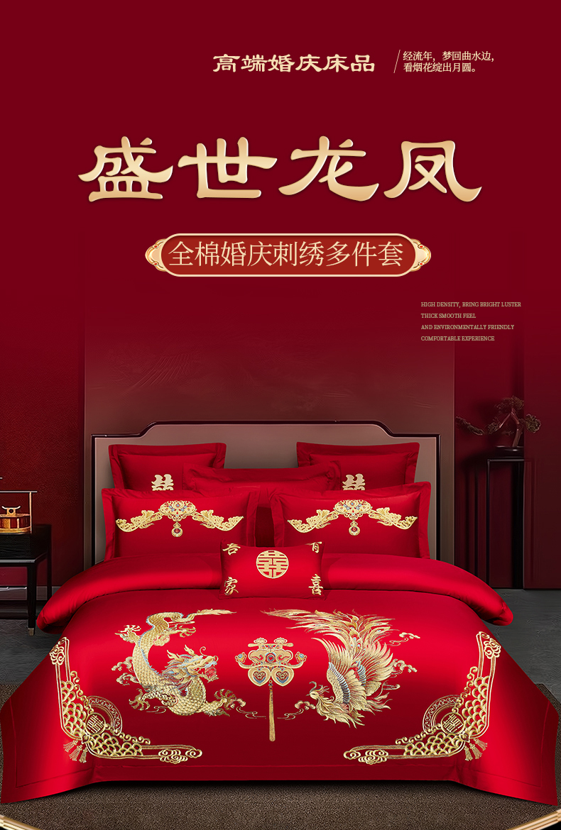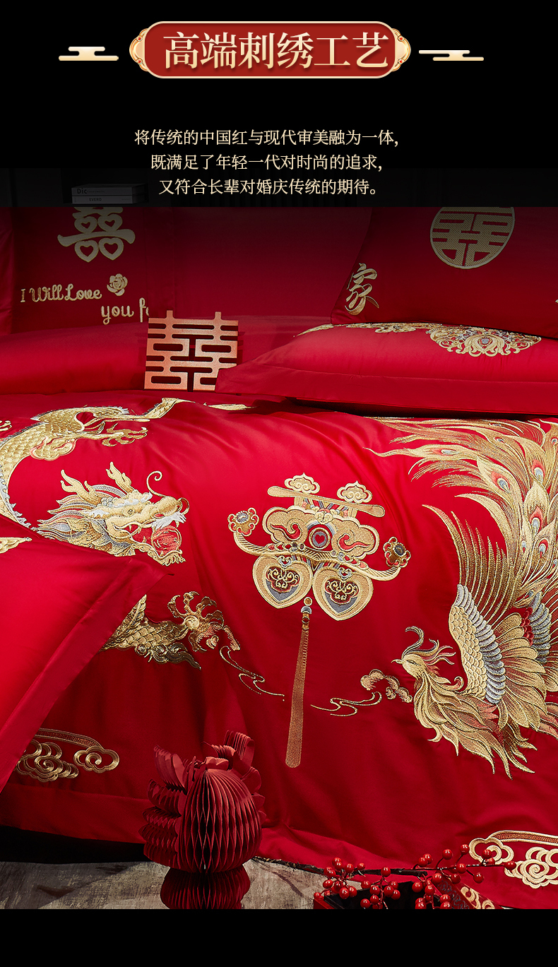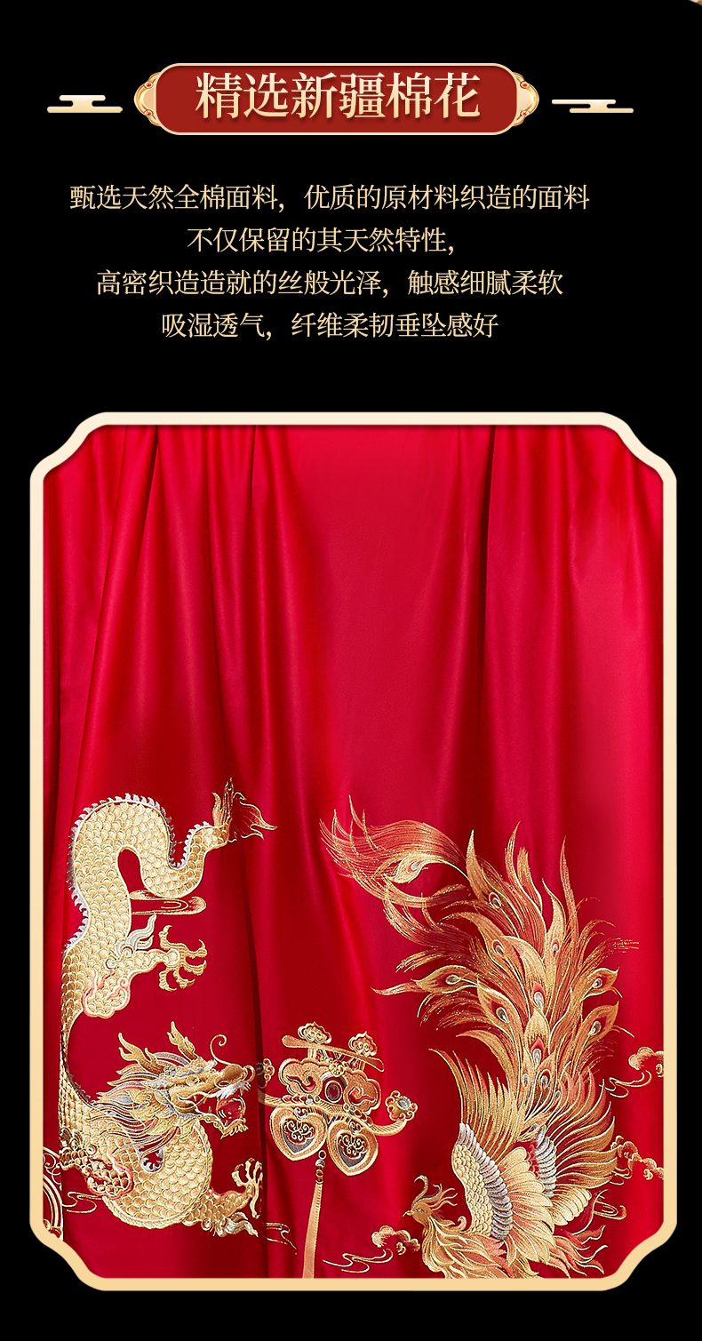 当前位置: 91家纺网 > 商品网购 > 床品套件 > 四件套 > 婚庆四件套 > 浩情国际婚庆供货中心 2026新款100%全棉长绒棉纯棉婚庆四件套结婚刺绣六件套多件套长期供货 盛世龙凤